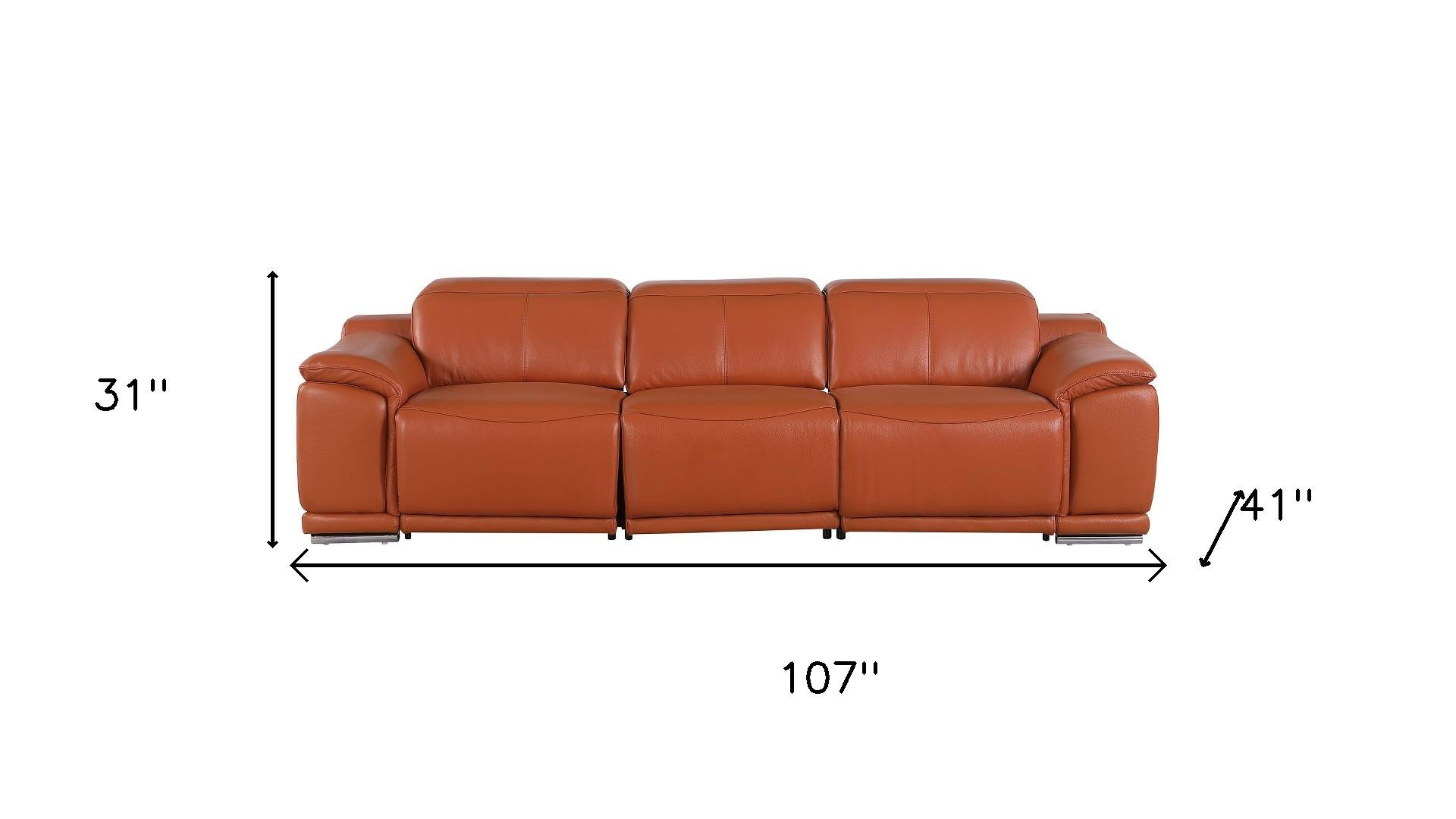Step into a world of unparalleled seating comfort with our remarkable three piece camel genuine leather six person seating set. Prepare to enter the realm of ultimate relaxation with this reclining sofa that offers unparalleled comfort and luxurious lounging. Upholstered in supple and luxurious genuine leather, this set has a rich and warm appeal. Solid or two-tone colorations allow you to blend easily with most any decor. Sinuous springs seat construction provides excellent comfort by offering a responsive and supportive seating experience. The inclusion of a loveseat into your mix allows a fashionable seating option in a compact design. 31.00-inch h x 107.00-inch w x 41.00-inch d.