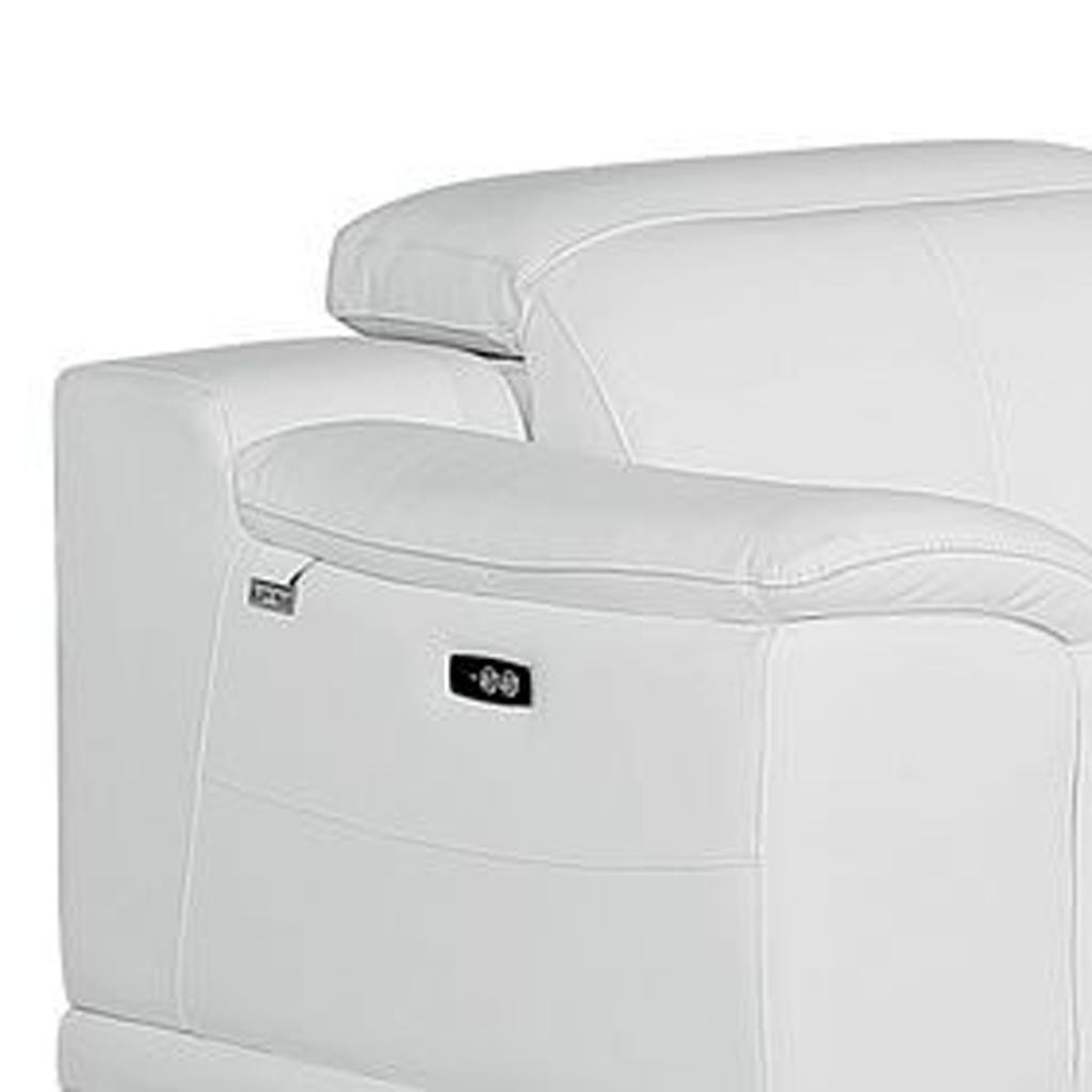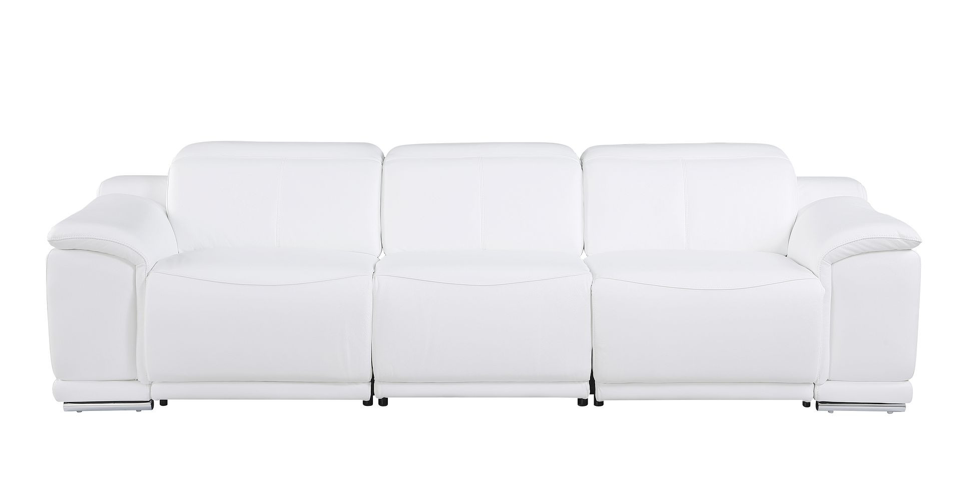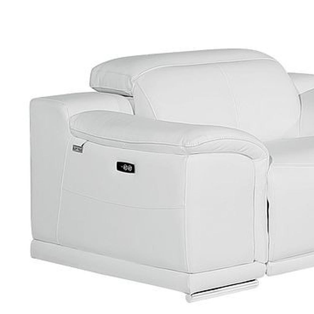 Prepare to amaze even the most discerning critics with our three piece white genuine leather six person seating set. The reclining sofa will transform your space into a cozy haven for leisurely activities, movie nights, or even quick power naps. Upholstered in supple and luxurious genuine leather, this set has a rich and warm appeal. Solid or two-tone colorations allow you to blend easily with most any decor. The presence of sinuous springs seat construction helps distribute weight evenly, reducing pressure points. The inclusion of a loveseat into your mix allows a fashionable seating option in a compact design. 31.00-inch h x 107.00-inch w x 41.00-inch d.