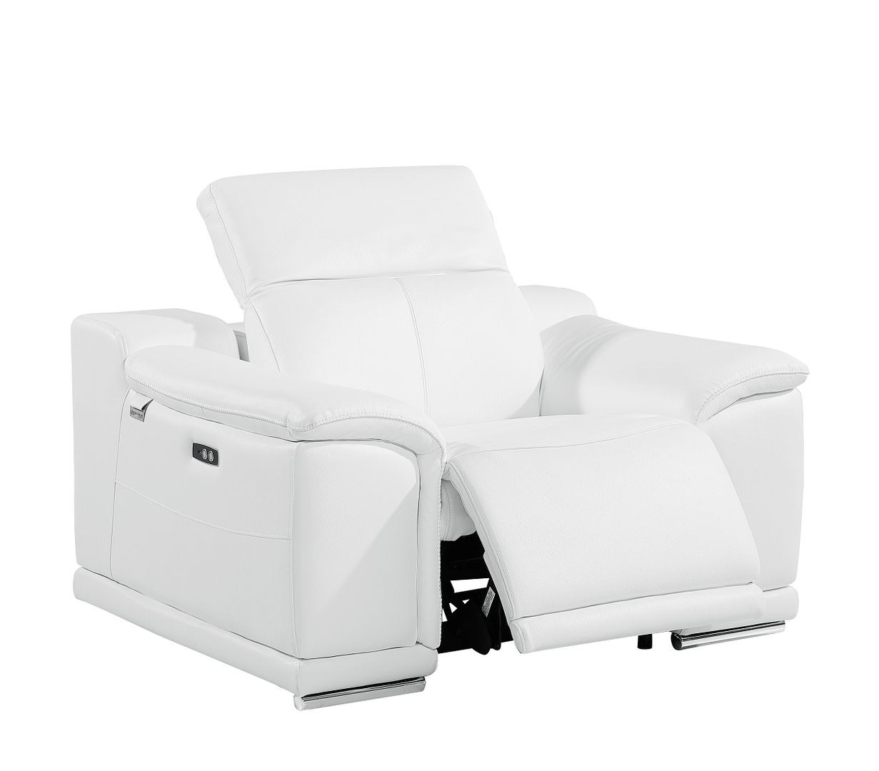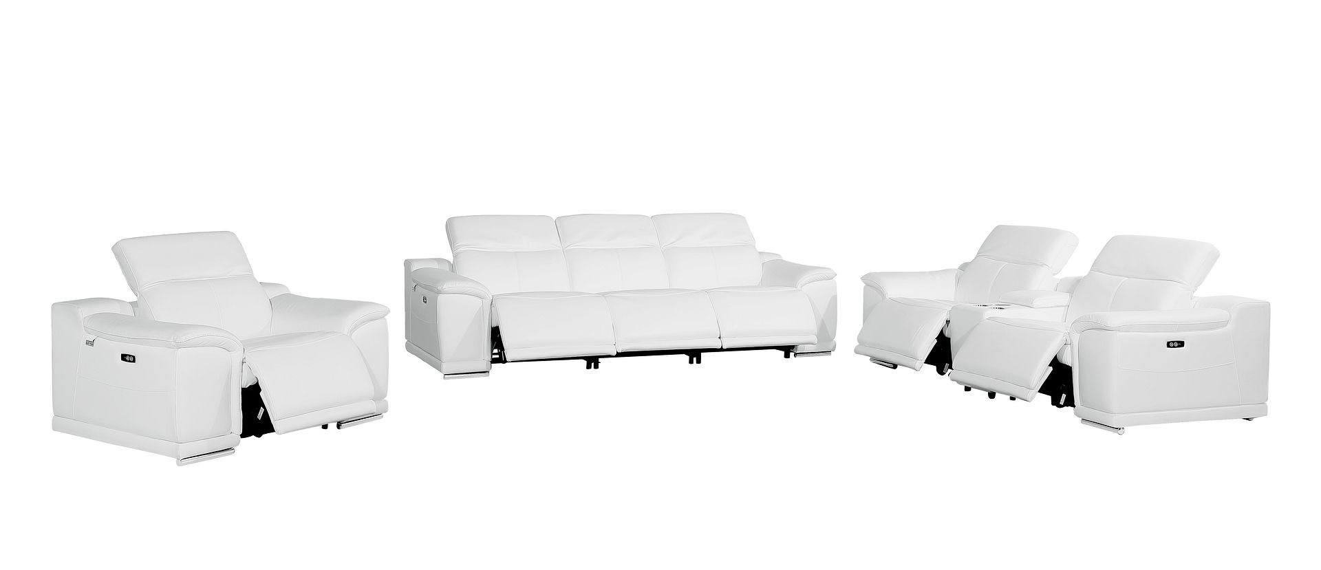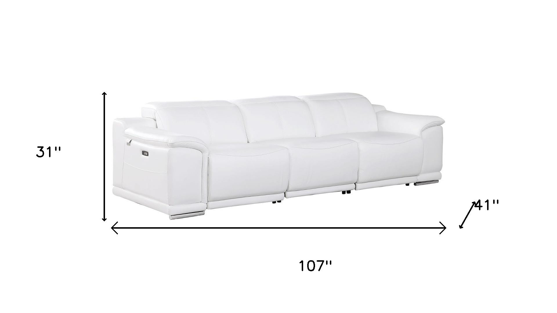 Prepare to amaze even the most discerning critics with our three piece white genuine leather six person seating set. Prepare to enter the realm of ultimate relaxation with this reclining sofa that offers unparalleled comfort and luxurious lounging. Upholstered in supple and luxurious genuine leather, this set has a rich and warm appeal. Solid or two-tone colorations allow you to blend easily with most any decor. The presence of sinuous springs seat construction helps distribute weight evenly, reducing pressure points. The inclusion of a loveseat into your mix allows a fashionable seating option in a compact design. 31.00-inch h x 107.00-inch w x 41.00-inch d.