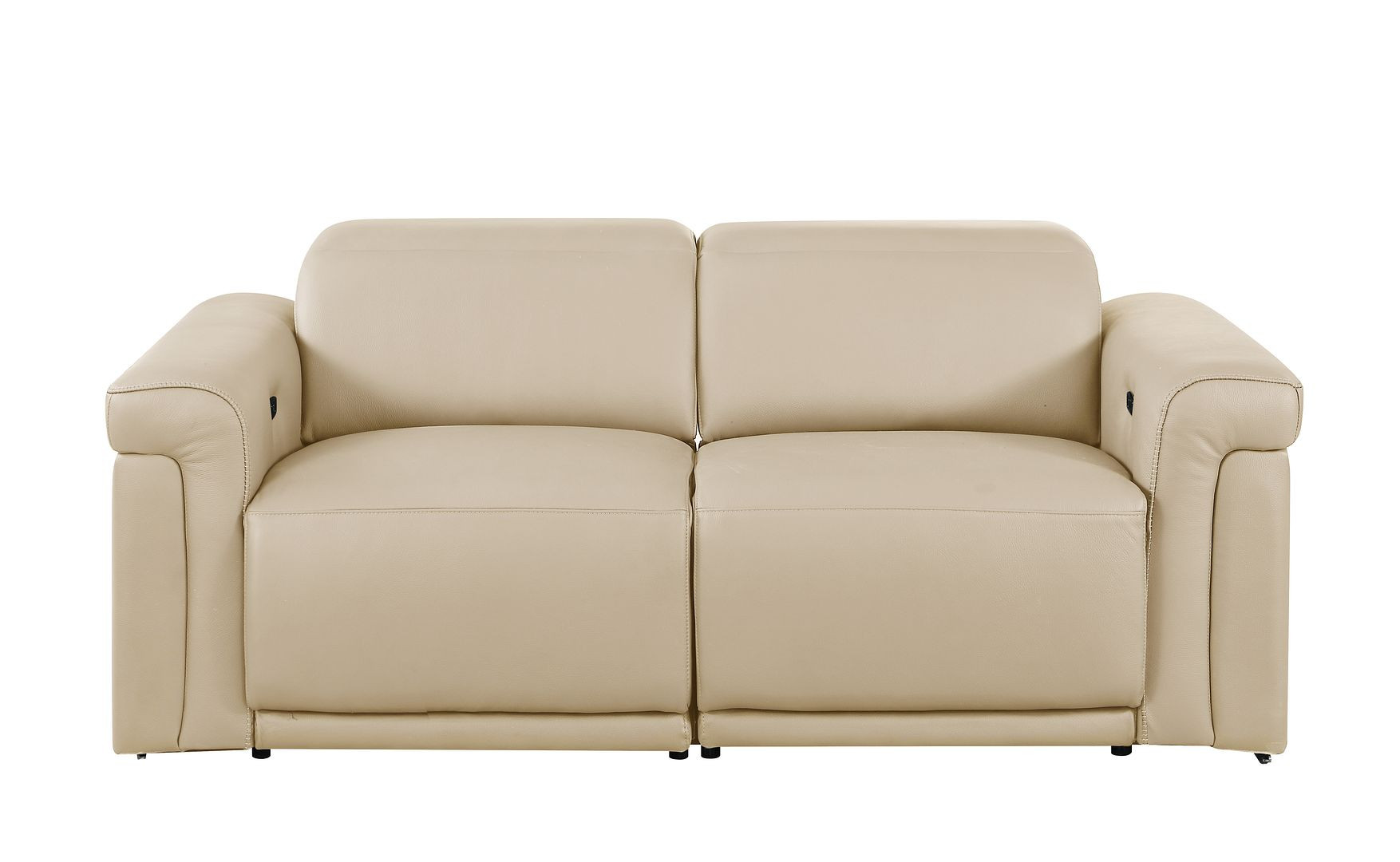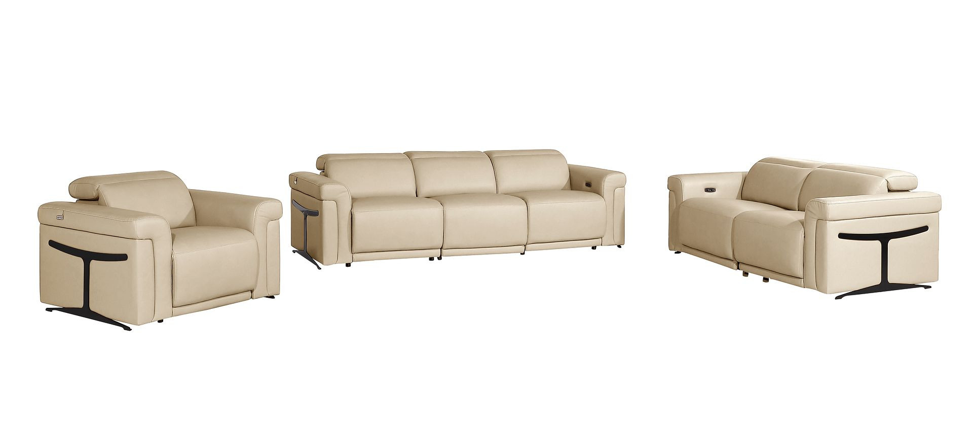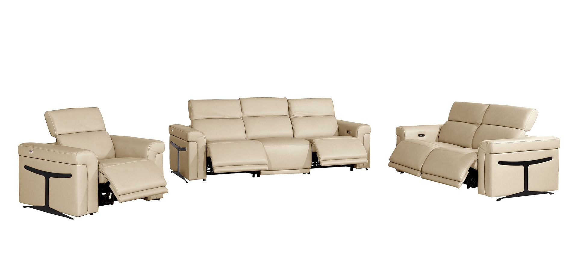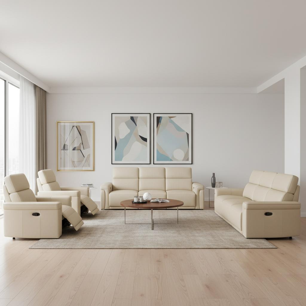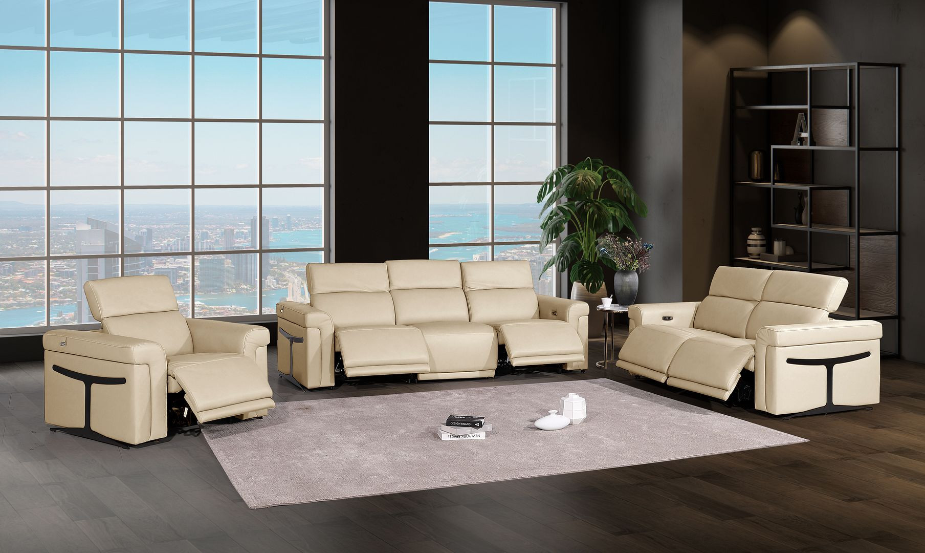 Step into a world of unparalleled seating comfort with our remarkable three piece beige italian leather six person seating set. The reclining sofa will transform your space into a cozy haven for leisurely activities, movie nights, or even quick power naps. Upholstered in supple and luxurious italian leather, this set has a rich and warm appeal. Solid or two-tone colorations allow you to blend easily with most any decor. Sinuous springs seat construction provides excellent comfort by offering a responsive and supportive seating experience. The inclusion of a loveseat into your mix allows a fashionable seating option in a compact design. 39.00-inch h x 100.00-inch w x 41.00-inch d.