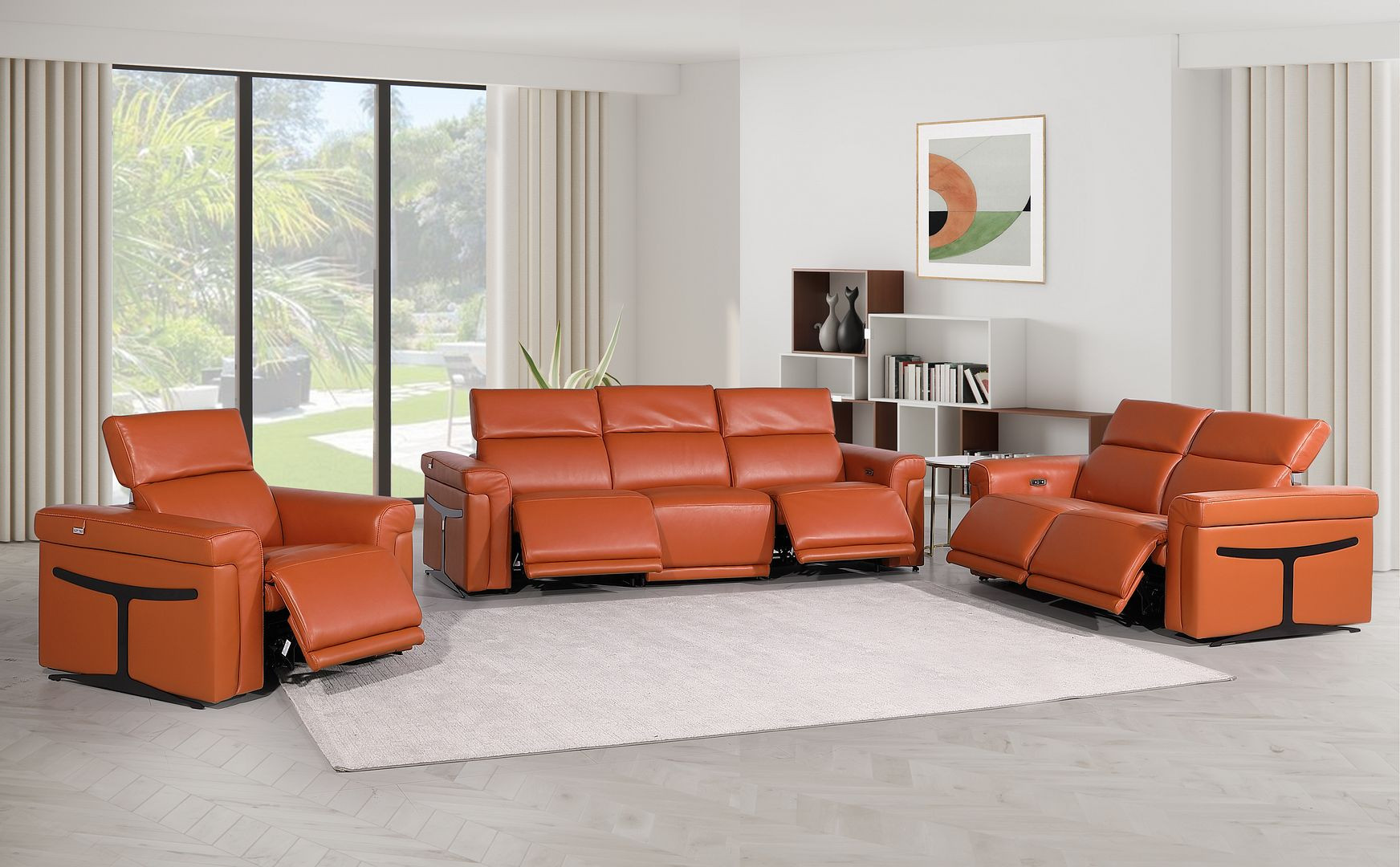 Prepare to amaze even the most discerning critics with our three piece camel italian leather six person seating set. The reclining sofa will transform your space into a cozy haven for leisurely activities, movie nights, or even quick power naps. Upholstered in supple and luxurious italian leather, this set has a rich and warm appeal. Solid or two-tone colorations allow you to blend easily with most any decor. The presence of sinuous springs seat construction helps distribute weight evenly, reducing pressure points. The inclusion of a loveseat into your mix allows a fashionable seating option in a compact design. 39.00-inch h x 100.00-inch w x 41.00-inch d.