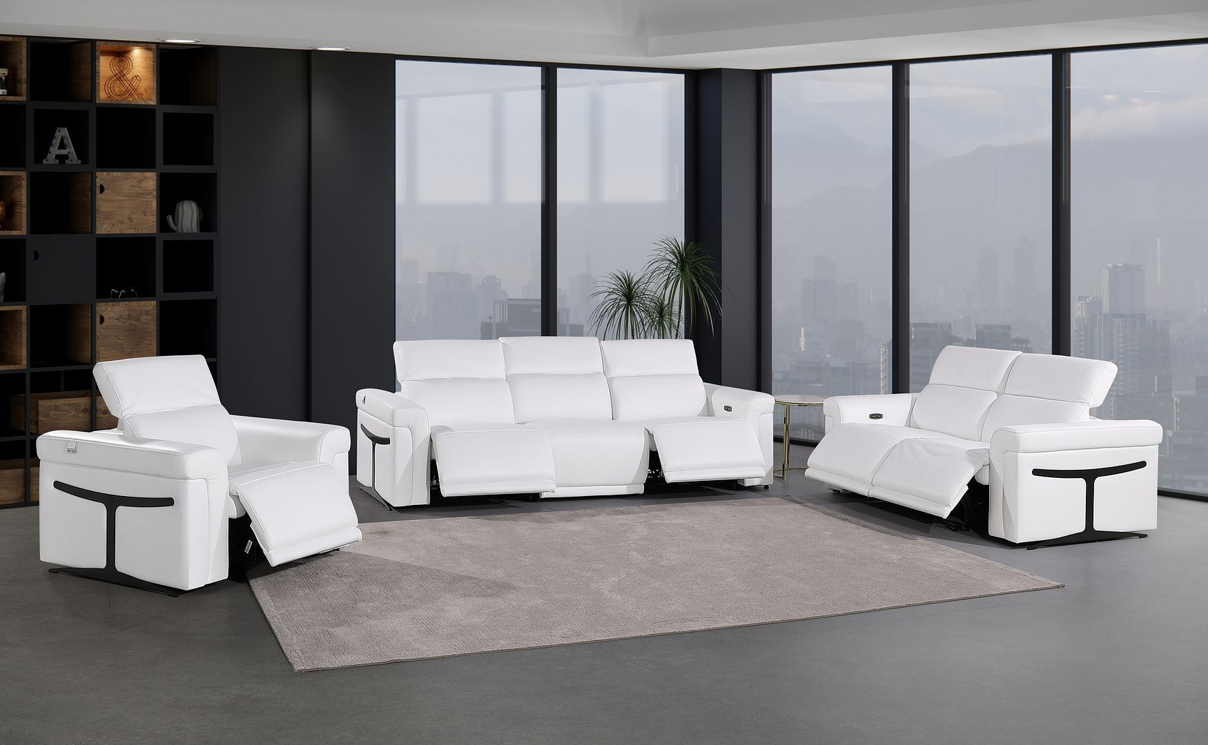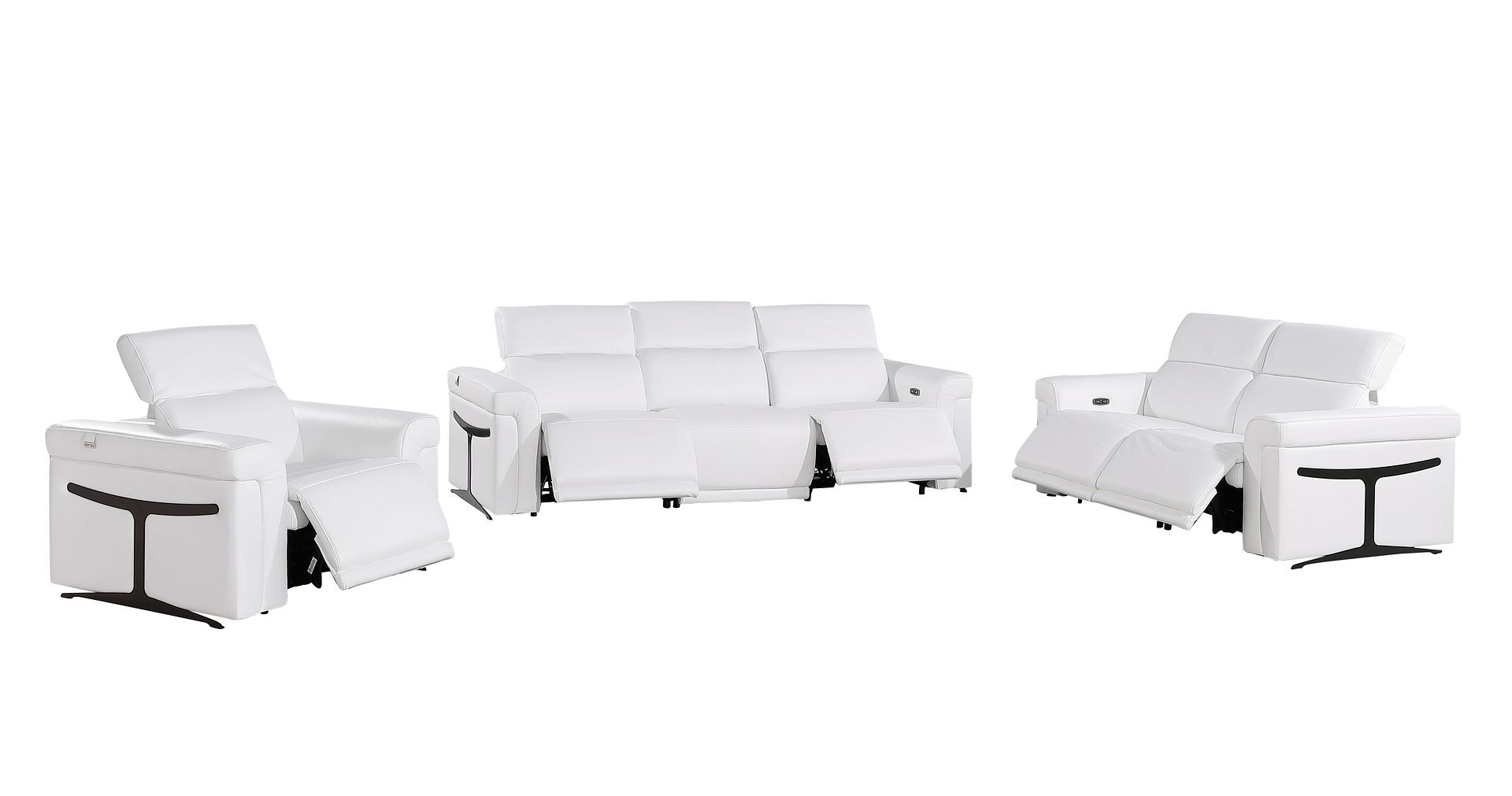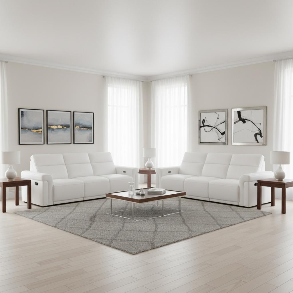 Step into a world of unparalleled seating comfort with our remarkable three piece white italian leather six person seating set. Prepare to enter the realm of ultimate relaxation with this reclining sofa that offers unparalleled comfort and luxurious lounging. Upholstered in supple and luxurious italian leather, this set has a rich and warm appeal. Solid or two-tone colorations allow you to blend easily with most any decor. The presence of sinuous springs seat construction helps distribute weight evenly, reducing pressure points. The inclusion of a loveseat into your mix allows a fashionable seating option in a compact design. 39.00-inch h x 100.00-inch w x 41.00-inch d.