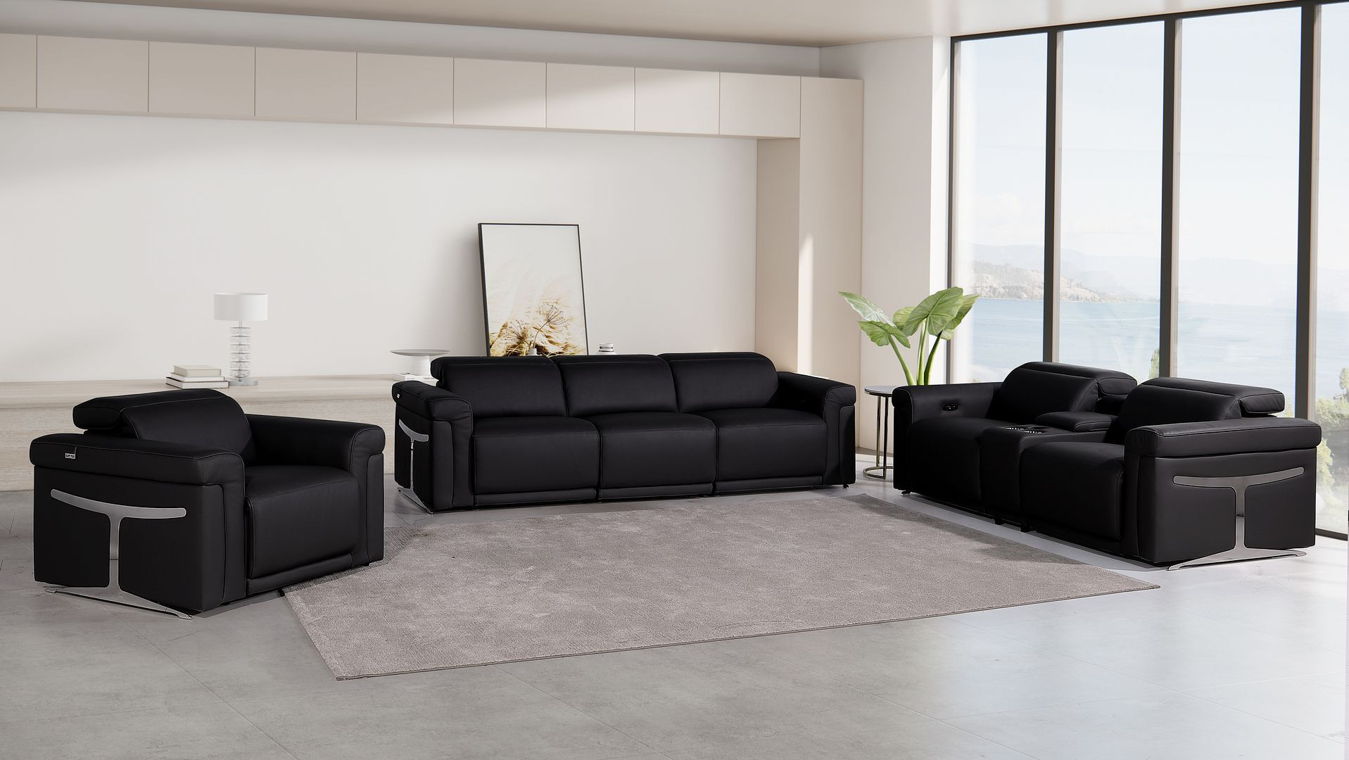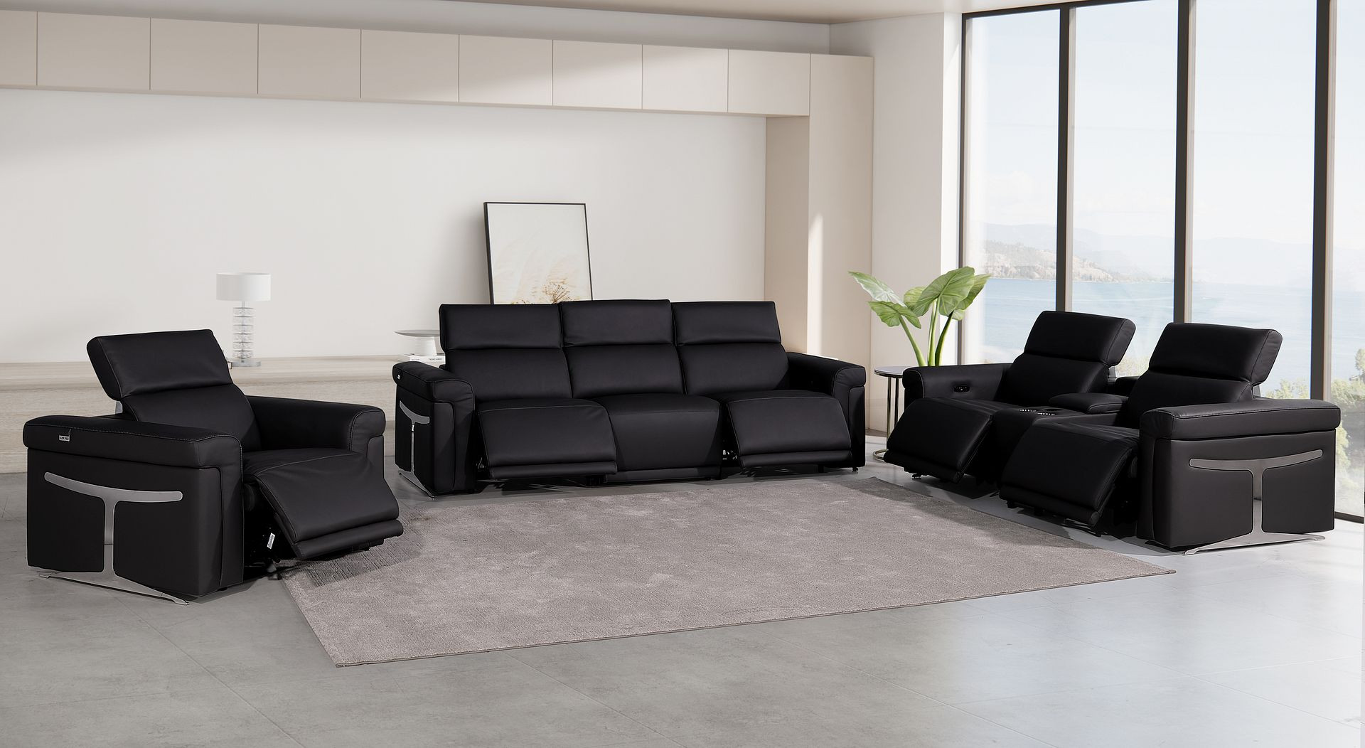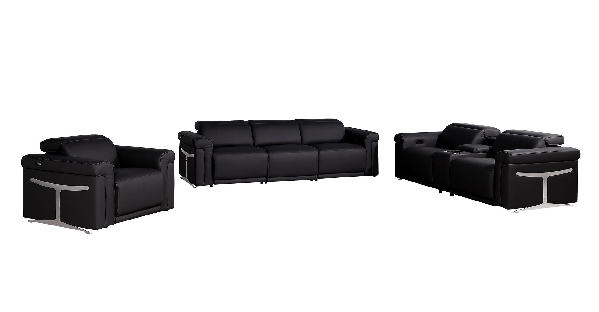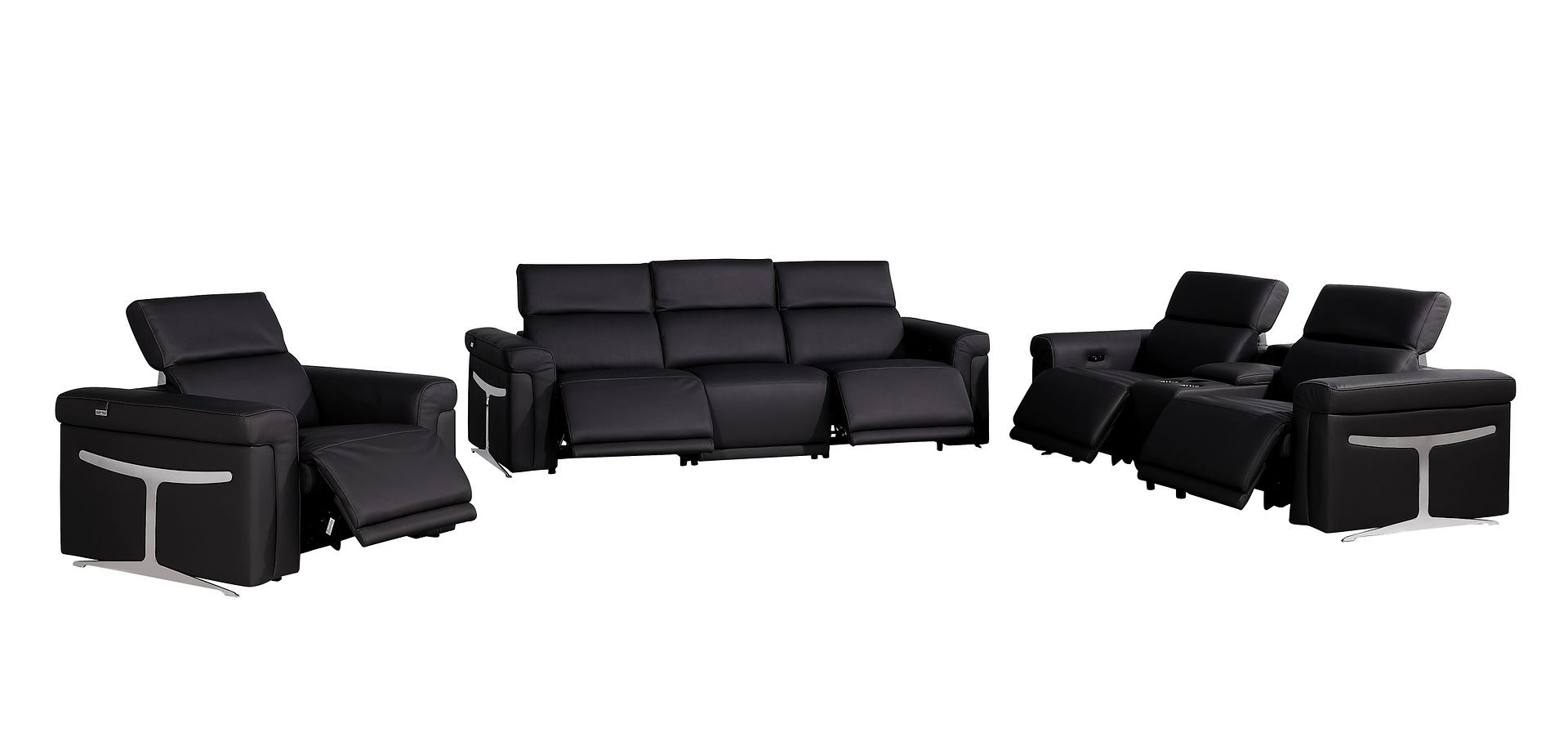 modular sofa set, Italian leather modular sofa, top grain leather reclining sectional, modular sofa with 5 recliners, sofa set with console storage, Italian leather power reclining set, sofa with wireless charging, sofa with USB ports and cupholders, modern Italian leather modular sofa, luxury leather sectional, Chrome leg sofa set, contemporary modular reclining sofa |