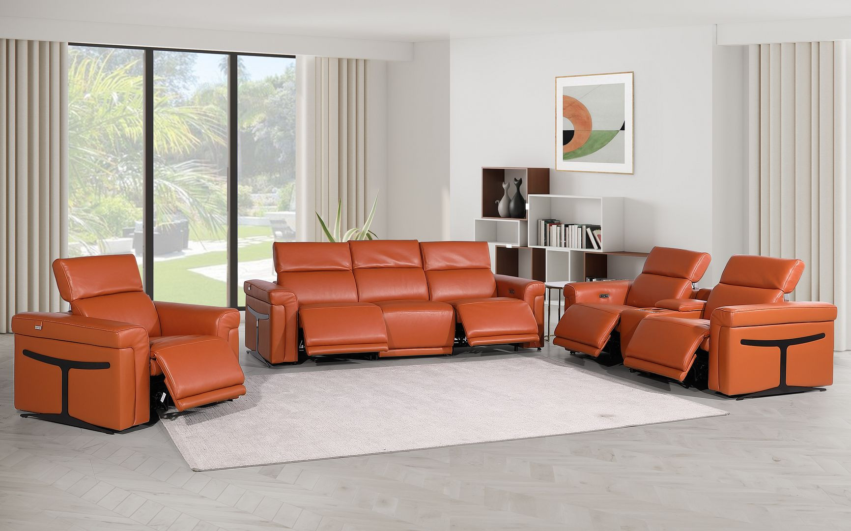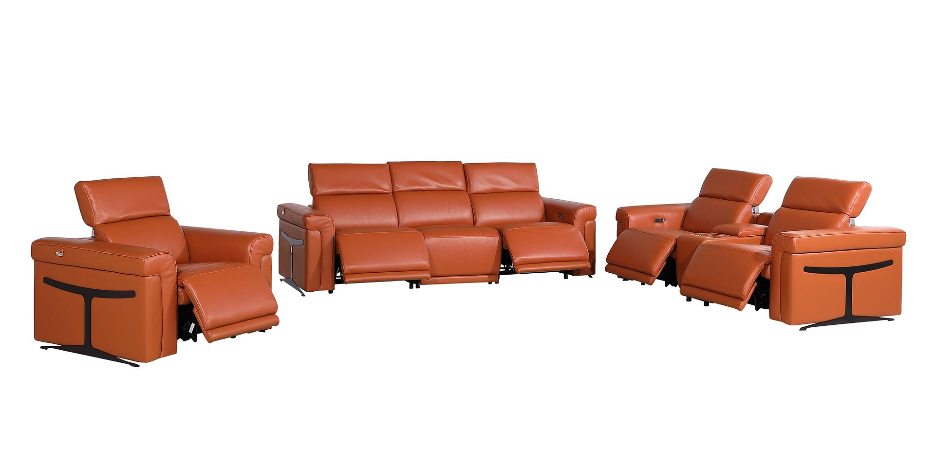 modular sofa set, Italian leather modular sofa, top grain leather reclining sectional, modular sofa with 5 recliners, sofa set with console storage, Italian leather power reclining set, sofa with wireless charging, sofa with USB ports and cupholders, modern Italian leather modular sofa, luxury leather sectional, jet black leg sofa set, contemporary modular reclining sofa |