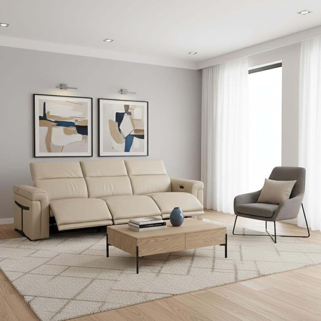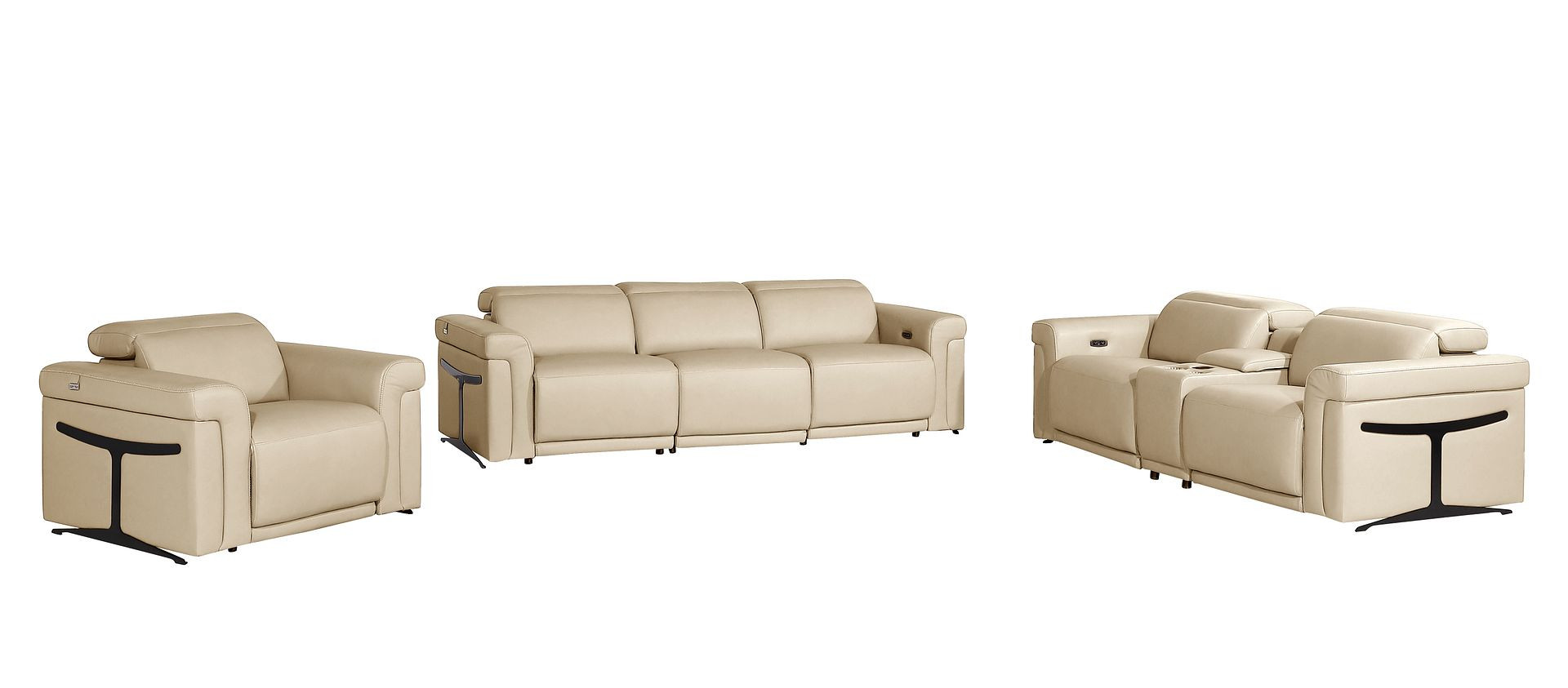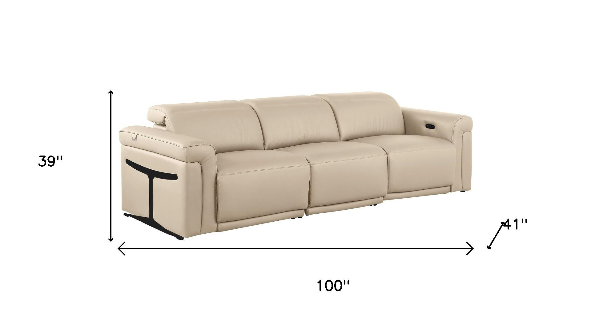 Step into a world of unparalleled seating comfort with our remarkable three piece beige italian leather six person seating set. The reclining sofa will transform your space into a cozy haven for leisurely activities, movie nights, or even quick power naps. Upholstered in supple and luxurious italian leather, this set has a rich and warm appeal. Solid or two-tone colorations allow you to blend easily with most any decor. The presence of sinuous springs seat construction helps distribute weight evenly, reducing pressure points. The inclusion of a loveseat into your mix allows a fashionable seating option in a compact design. 39.00-inch h x 100.00-inch w x 41.00-inch d.