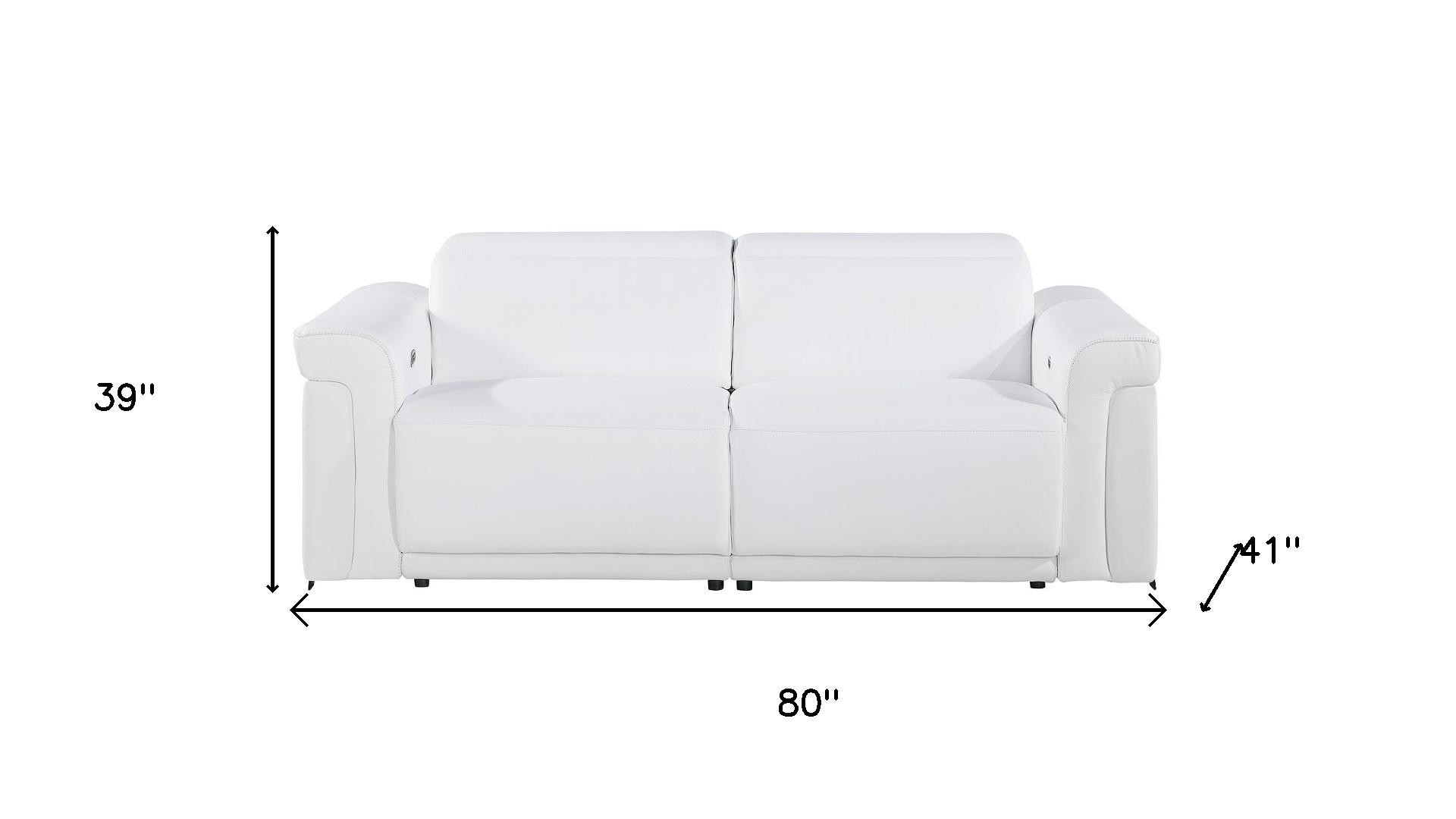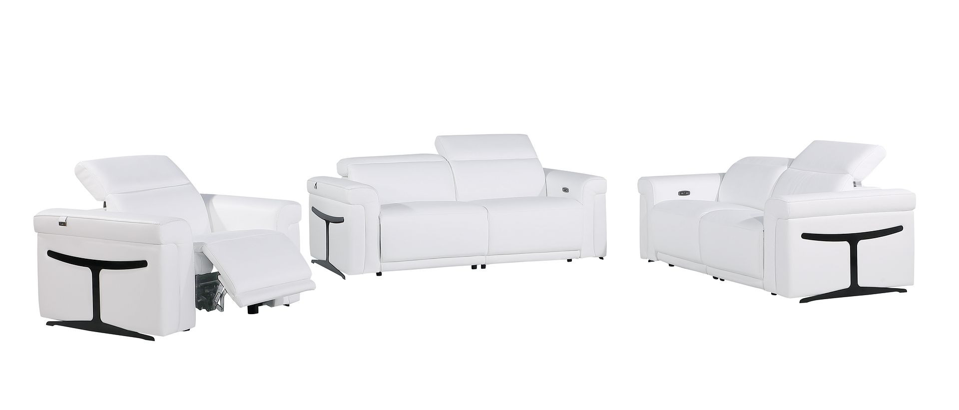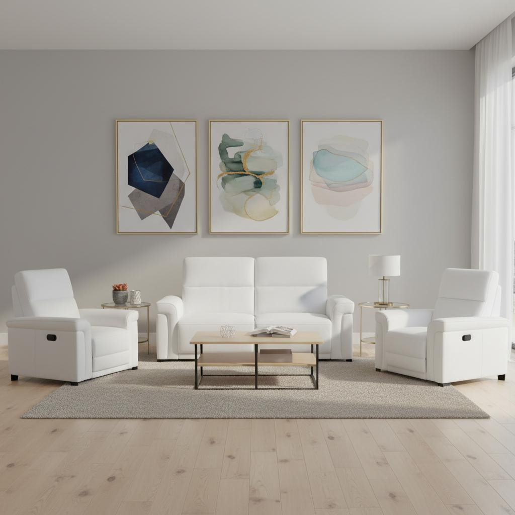 When it comes to indoor seating, this three piece white italian leather six person seating set has everything you need to get set and ready to relax. The reclining sofa will transform your space into a cozy haven for leisurely activities, movie nights, or even quick power naps. Upholstered in supple and luxurious italian leather, this set has a rich and warm appeal. Solid or two-tone colorations allow you to blend easily with most any decor. Sinuous springs seat construction provides excellent comfort by offering a responsive and supportive seating experience. The inclusion of a loveseat into your mix allows a fashionable seating option in a compact design. 39.00-inch h x 80.00-inch w x 41.00-inch d.