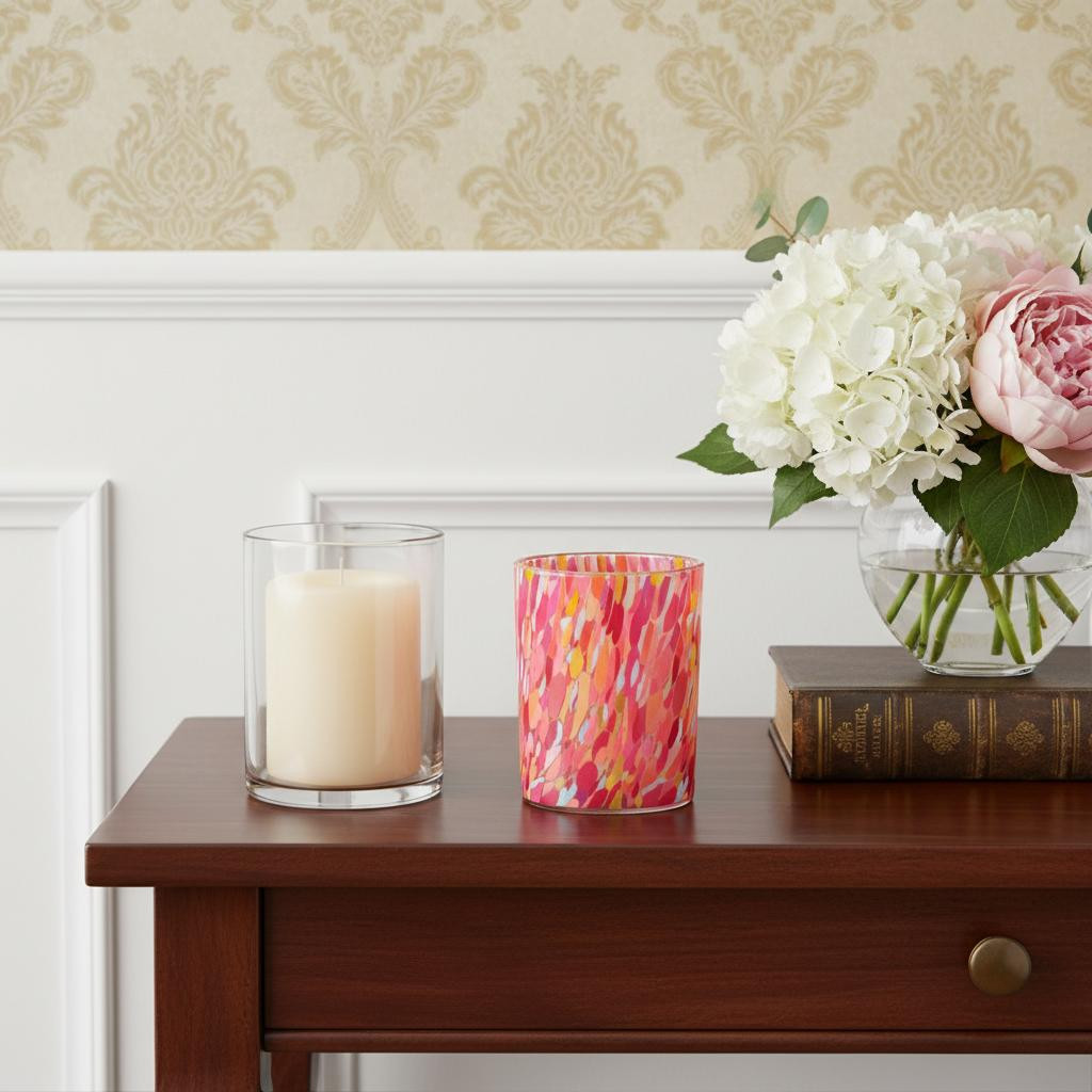 glass tabletop hurricane candle holders, tabletop hurricane candle holders, abstract glass tabletop hurricane candle, hurricane candle holders, pink distressed abstract glass tabletop |