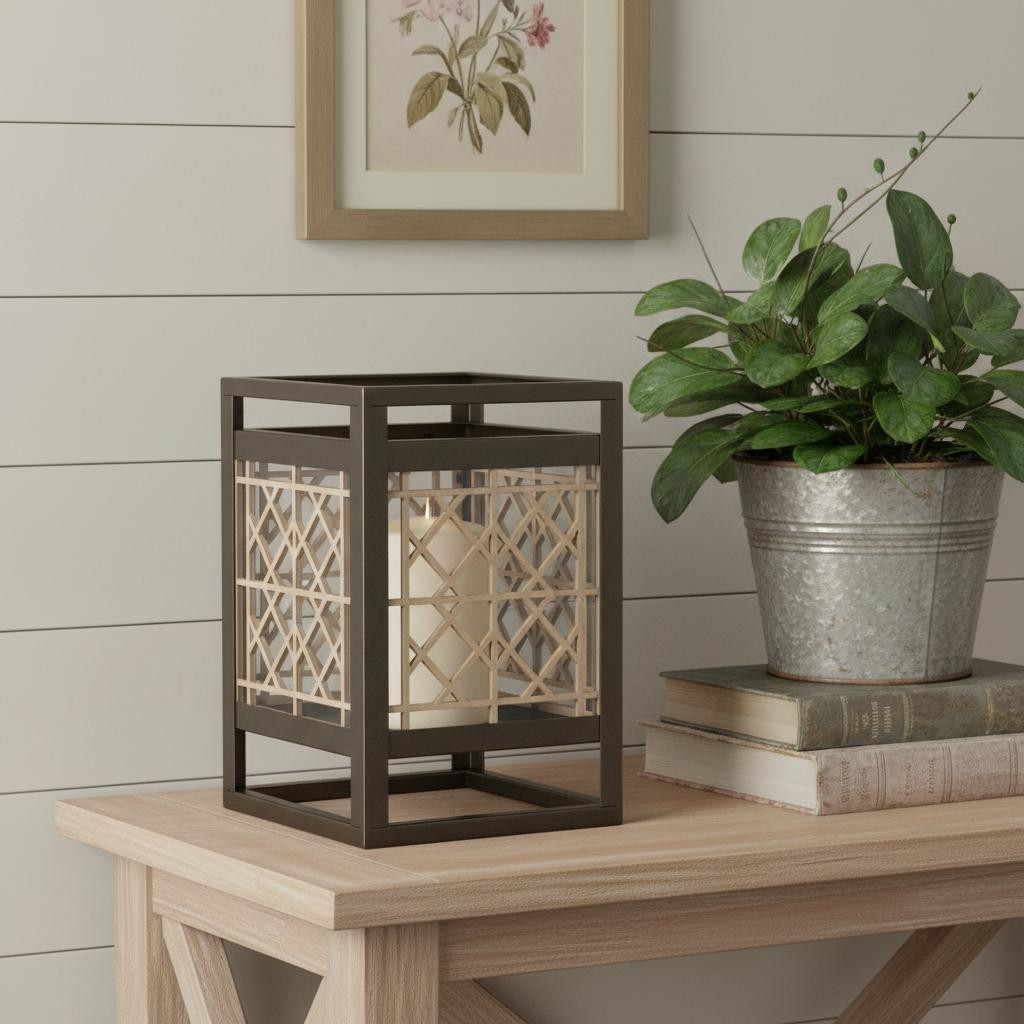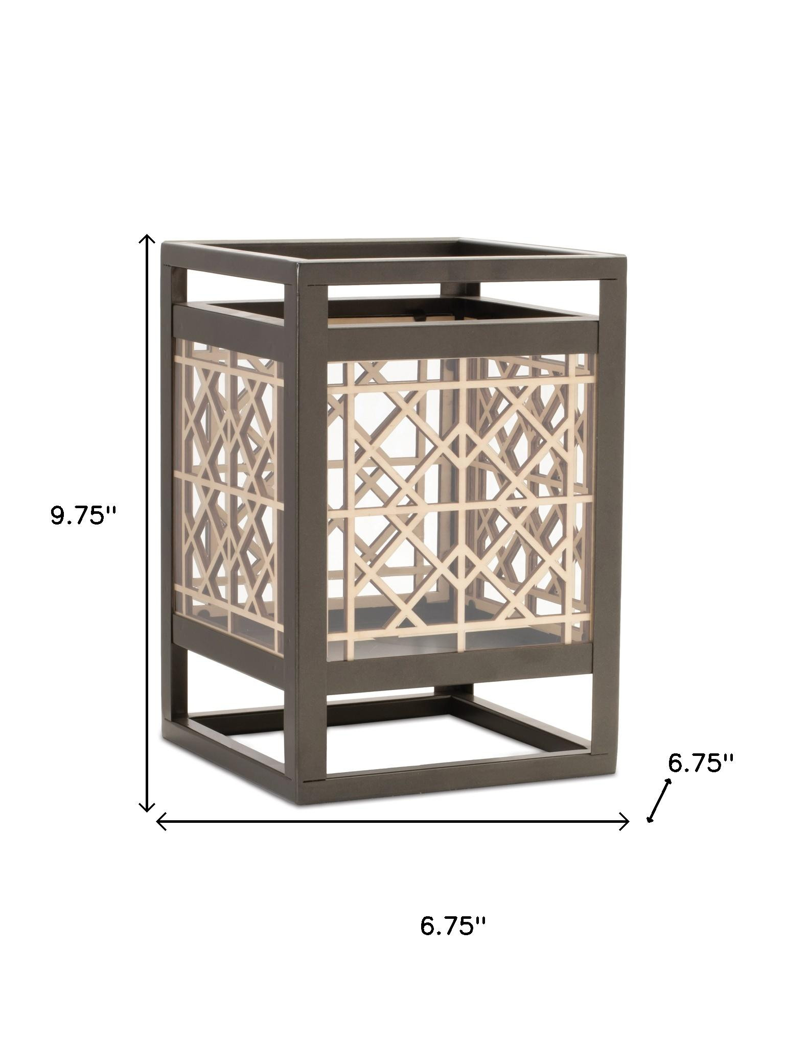 You can showcase this 10-inch brown abstract iron tabletop lantern candle holder on its own as alternative centerpieces or position it among flower arrangements on your tables. A perfect functional and decorative accent piece for weddings, dining tables and living rooms alike. This candleholder is the perfect illuminating design to accent your space in style. Candleholders are a decorative accent on their own, with or without candles. 9.75-inch h x 6.75-inch w x 6.75-inch d.