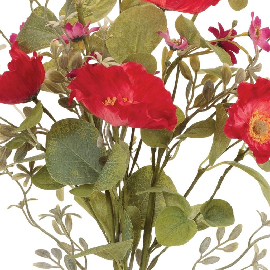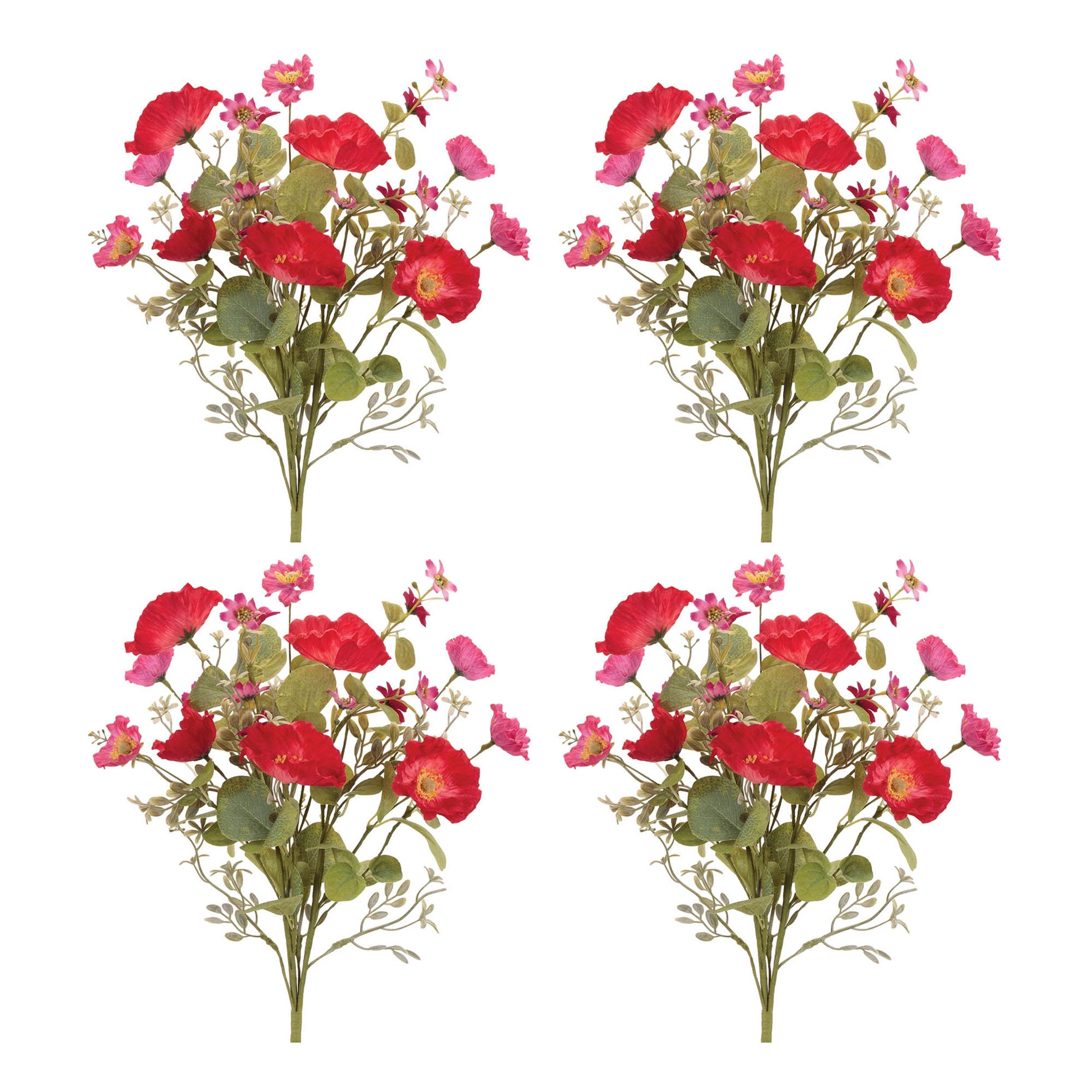 Set of four 5-inch red artificial brings vibrant color and life to any space. Ideal for tabletop decoration, these charming plants add a touch of elegance to your home or office settings. Crafted from durable polyester, they are designed to withstand the test of time while maintaining their striking appearance. With a rich red hue, they create a bold statement that complements various decor styles. This set includes four individual plants, allowing for versatile arrangement options to suit your personal taste. Elevate your interior design effortlessly with these low-maintenance artificial plants, which require no watering or sunlight. Perfect for those who love greenery but prefer hassle-free maintenance solutions in their decor choices. 5.40-inch h x 21.25-inch w x 10.40-inch d.