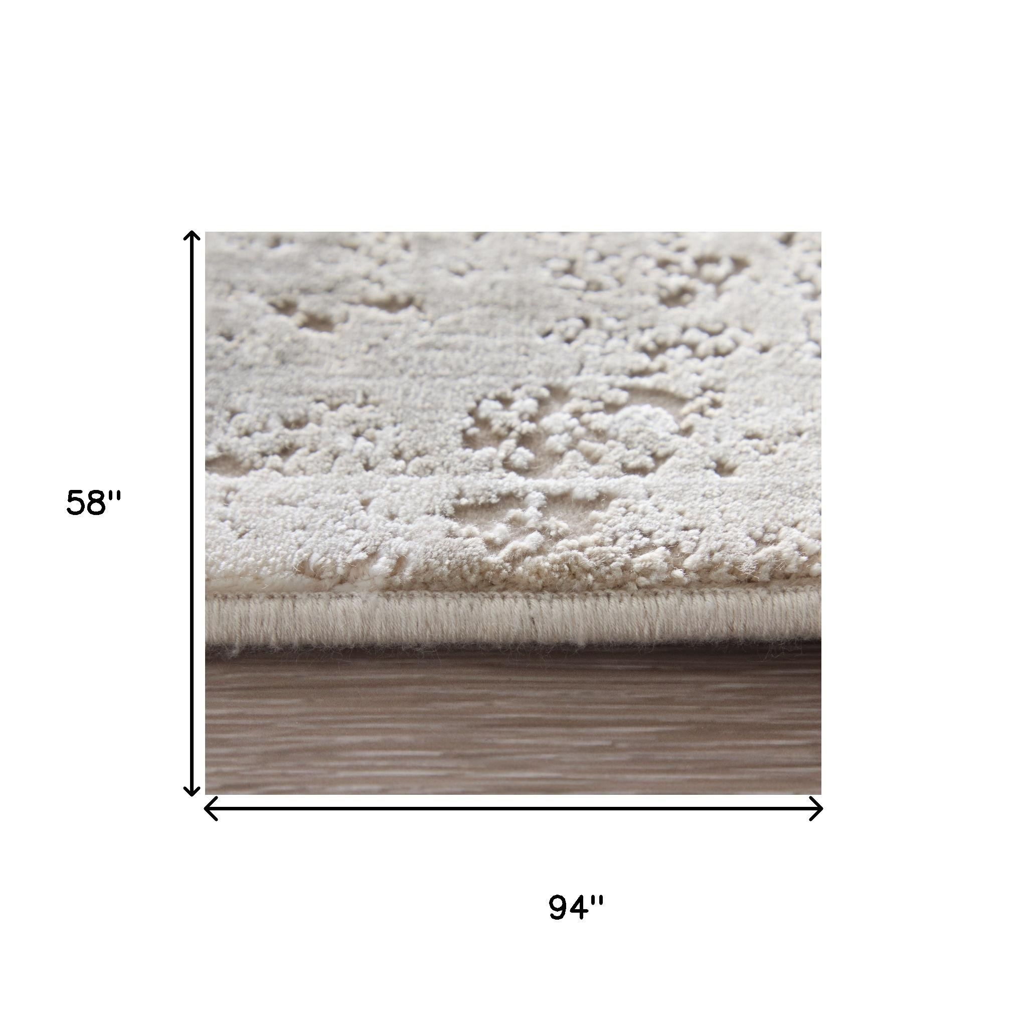 Add some artistry to your room with this 5-foot x 10-foot ivory gray and gold floral area rug with fringe. Tassel ends bring a timeless and fashionable look to your interior. This larger sized, traditional styled rug is ready to create a focal point or statement piece in your room. 58.00-inch h x 94.00-inch w x 0.32-inch d.