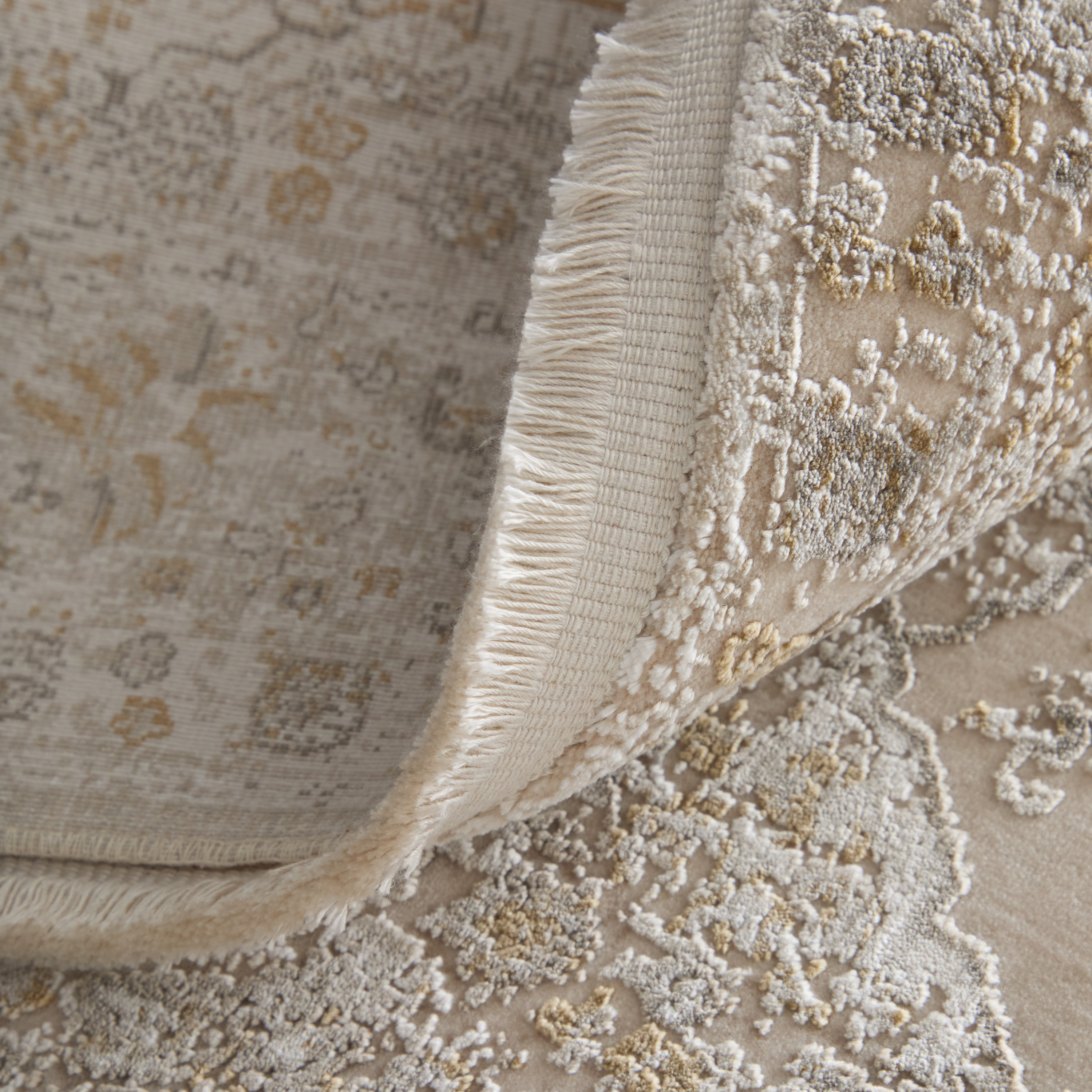 Set an inviting tone in your space with this 11-foot x 14-foot ivory gray and gold oriental area rug with fringe. Tassel ends bring a timeless and fashionable look to your interior. This larger sized, traditional styled rug is ready to create a focal point or statement piece in your room. 138.00-inch h x 174.00-inch w x 0.32-inch d.