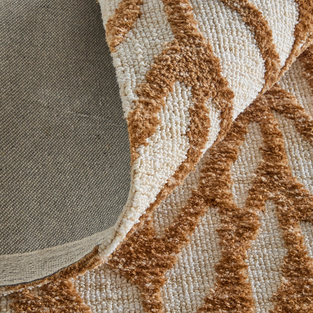 Set an inviting tone in your space with this 3-foot x 5-foot brown and tan chevron area rug. Ideal for spaces with kids and pets, this rug is stain resistant to help repel dirt and spilled liquids. Built to last, this rug crafted from polyester fibers is known for its durability and long lasting appeal. This smaller sized, bohemian styled rug is just what you need for your walkway, bedside, in front of door, cabinet, refrigerator, or chair. 42.00-inch h x 66.00-inch w x 0.40-inch d.