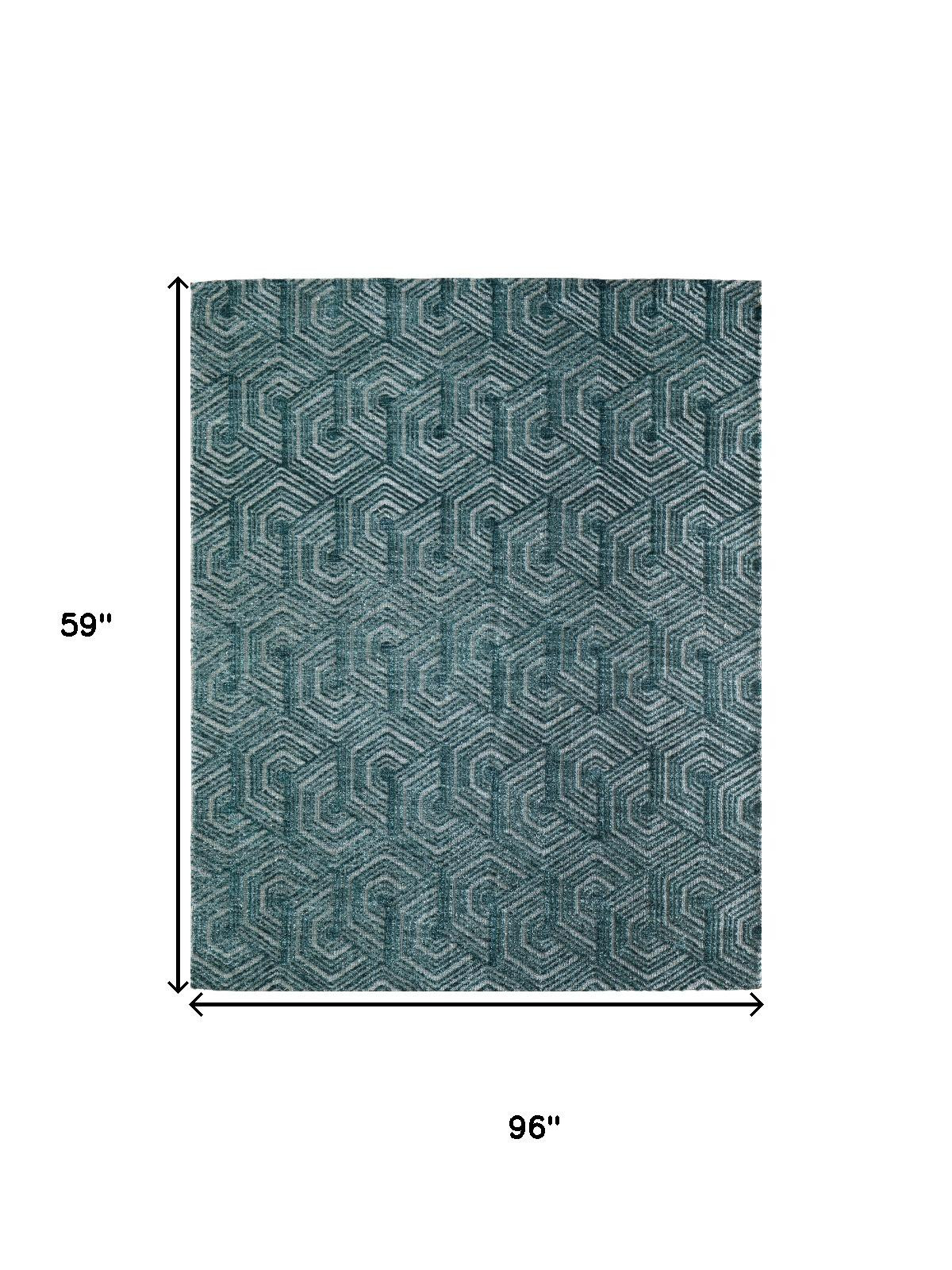 This 5-foot x 8-foot blue and ivory geometric area rug, is a great way to add warmth to a room. Ideal for spaces with kids and pets, this rug is stain resistant to help repel dirt and spilled liquids. Built to last, this rug crafted from polyester fibers is known for its durability and long lasting appeal. This larger sized, industrial styled rug is ready to create a focal point or statement piece in your room. 59.00-inch h x 96.00-inch w x 0.40-inch d.