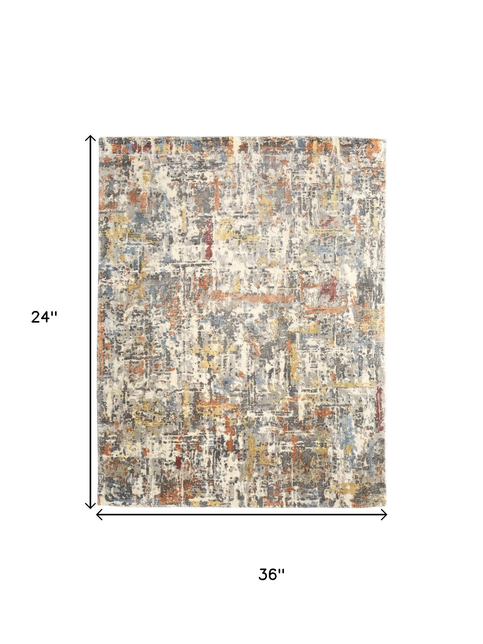 Set an inviting tone in your space with this 2-foot x 3-foot blue and ivory abstract hand woven area rug. Ideal for spaces with kids and pets, this rug is stain resistant to help repel dirt and spilled liquids. Crafted by skilled artisans, this hand woven rug is genuine and unique. No two will be exactly alike. Crafted from wool blend fibers that give this piece premium texture, refinement, and appeal. This smaller sized, industrial styled rug is just what you need for your walkway, bedside, in front of door, cabinet, refrigerator, or chair. 24.00-inch h x 36.00-inch w x 0.39-inch d.