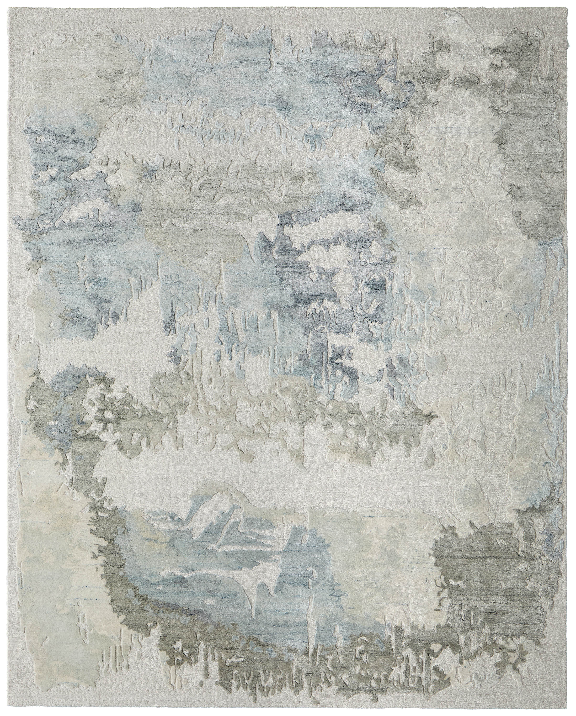 Set an inviting tone in your space with this 10-foot x 14-foot blue and ivory abstract hand tufted area rug. Crafted by skilled artisans, this hand tufted rug is genuine and unique. No two will be exactly alike. Crafted from wool blend fibers that give this piece premium texture, refinement, and appeal. This larger sized, bohemian styled rug is ready to create a focal point or statement piece in your room. 120.00-inch h x 168.00-inch w x 0.39-inch d.
