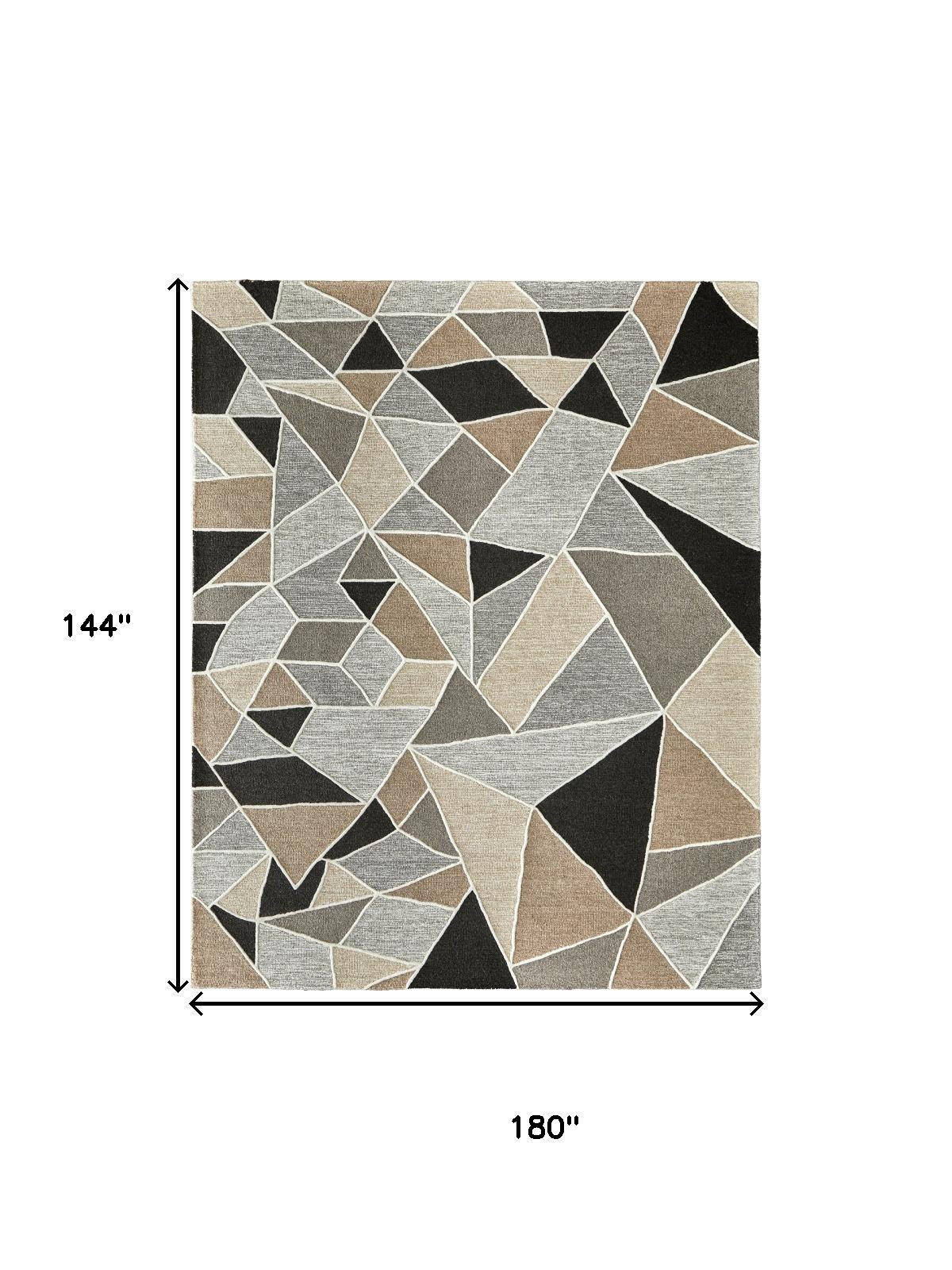 Add some artistry to your room with this 12-foot x 15-foot blue and ivory wool abstract hand tufted area rug. Ideal for spaces with kids and pets, this rug is stain resistant to help repel dirt and spilled liquids. Crafted by skilled artisans, this hand tufted rug is genuine and unique. No two will be exactly alike. This larger sized, bohemian styled rug is ready to create a focal point or statement piece in your room. 144.00-inch h x 180.00-inch w x 0.67-inch d.