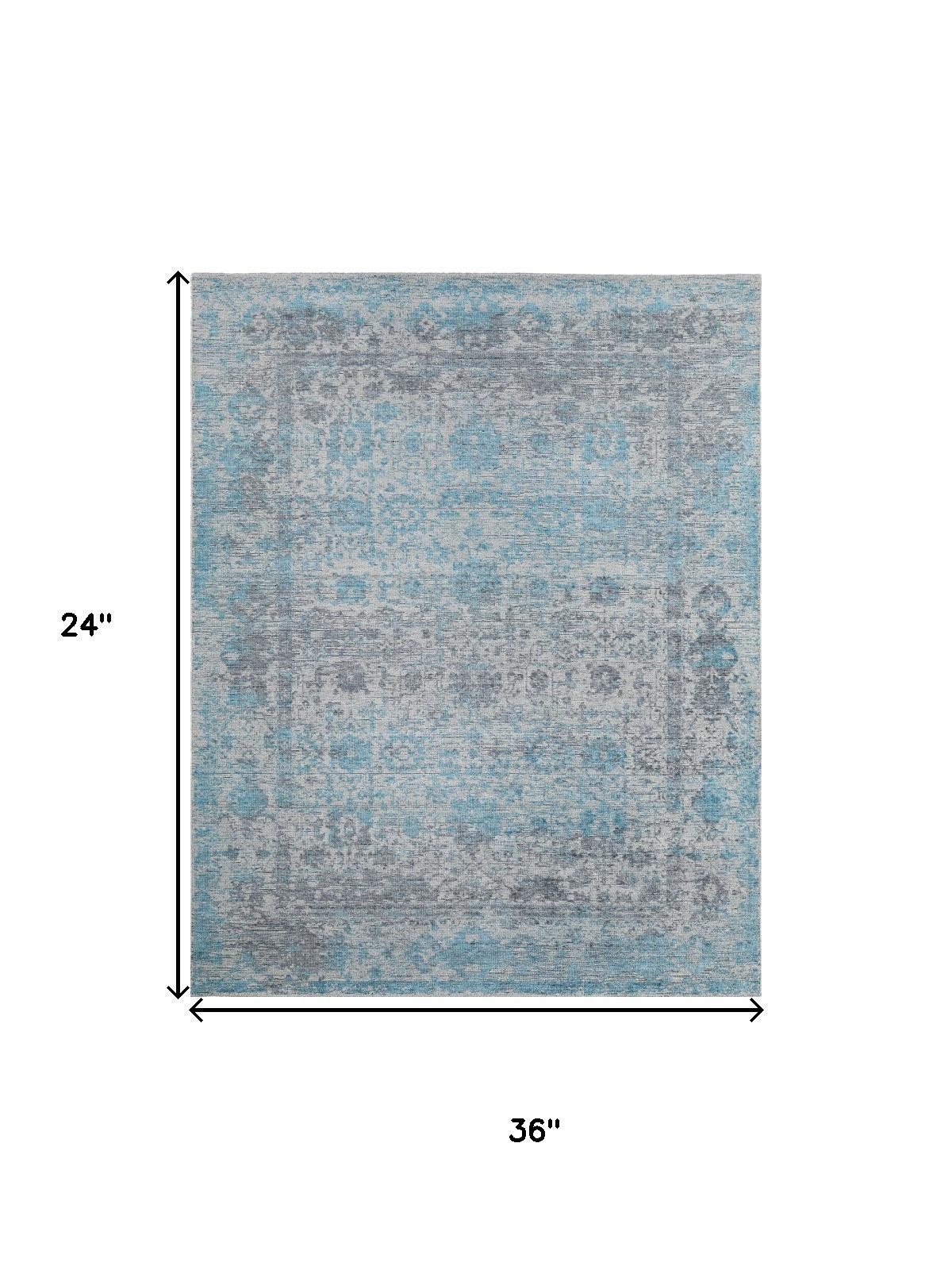 Add great coloration and comfortable texture to your space with this 2-foot x 3-foot blue and ivory oriental hand woven area rug. Crafted by skilled artisans, this hand woven rug is genuine and unique. No two will be exactly alike. This smaller sized, traditional styled rug is just what you need for your walkway, bedside, in front of door, cabinet, refrigerator, or chair. 24.00-inch h x 36.00-inch w x 0.23-inch d.