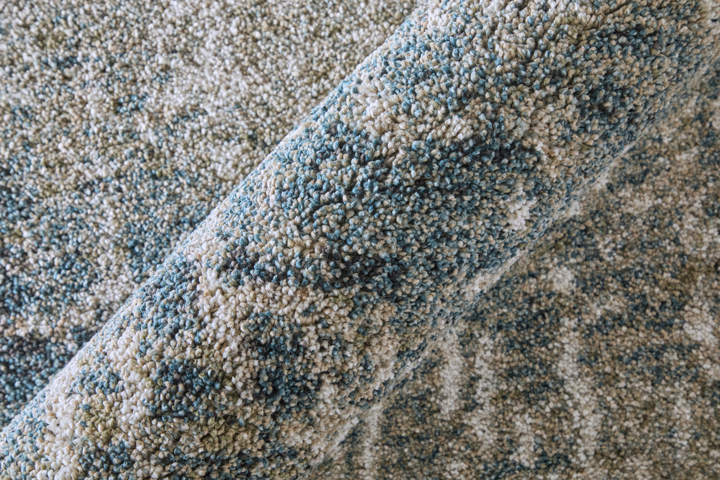 Set an inviting tone in your space with this 6-foot x 9-foot blue and ivory abstract area rug. Ideal for spaces with kids and pets, this rug is stain resistant to help repel dirt and spilled liquids. Built to last, this rug crafted from polypropylene fibers is known for its durability and long lasting appeal. This larger sized, industrial styled rug is ready to create a focal point or statement piece in your room. 79.00-inch h x 114.00-inch w x 0.94-inch d.