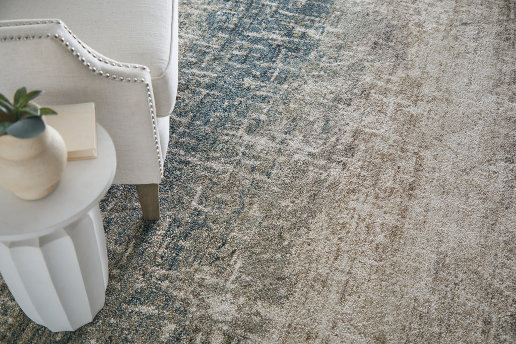 Set an inviting tone in your space with this 9-foot x 12-foot blue and ivory abstract area rug. Ideal for spaces with kids and pets, this rug is stain resistant to help repel dirt and spilled liquids. Built to last, this rug crafted from polypropylene fibers is known for its durability and long lasting appeal. This larger sized, industrial styled rug is ready to create a focal point or statement piece in your room. 108.00-inch h x 144.00-inch w x 0.94-inch d.