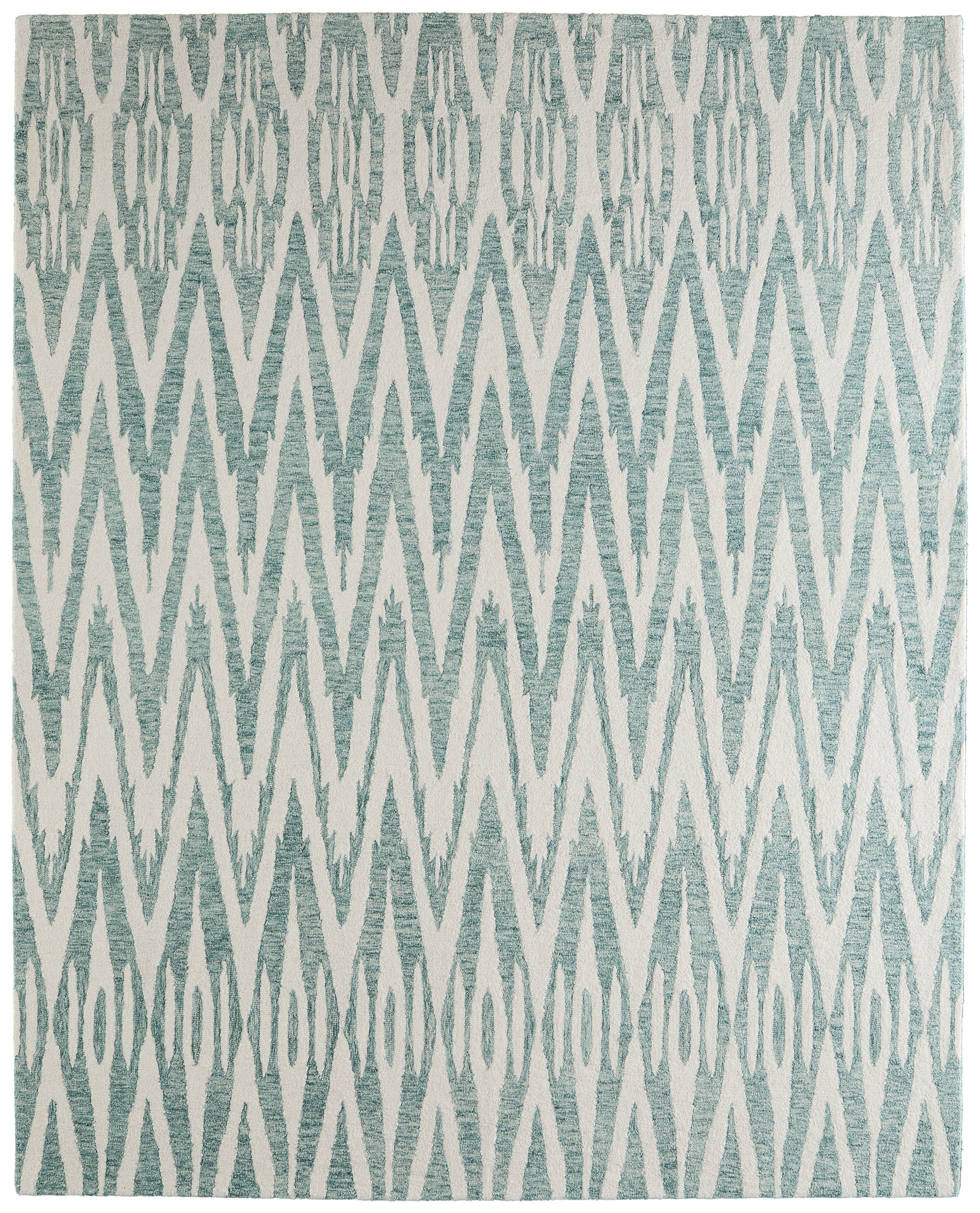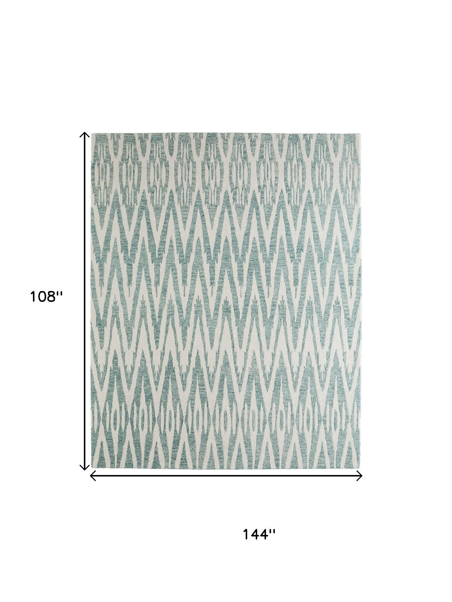 Set an inviting tone in your space with this 9-foot x 12-foot blue and white wool chevron hand tufted area rug. Ideal for spaces with kids and pets, this rug is stain resistant to help repel dirt and spilled liquids. Crafted by skilled artisans, this hand tufted rug is genuine and unique. No two will be exactly alike. This larger sized, bohemian styled rug is ready to create a focal point or statement piece in your room. 108.00-inch h x 144.00-inch w x 0.31-inch d.