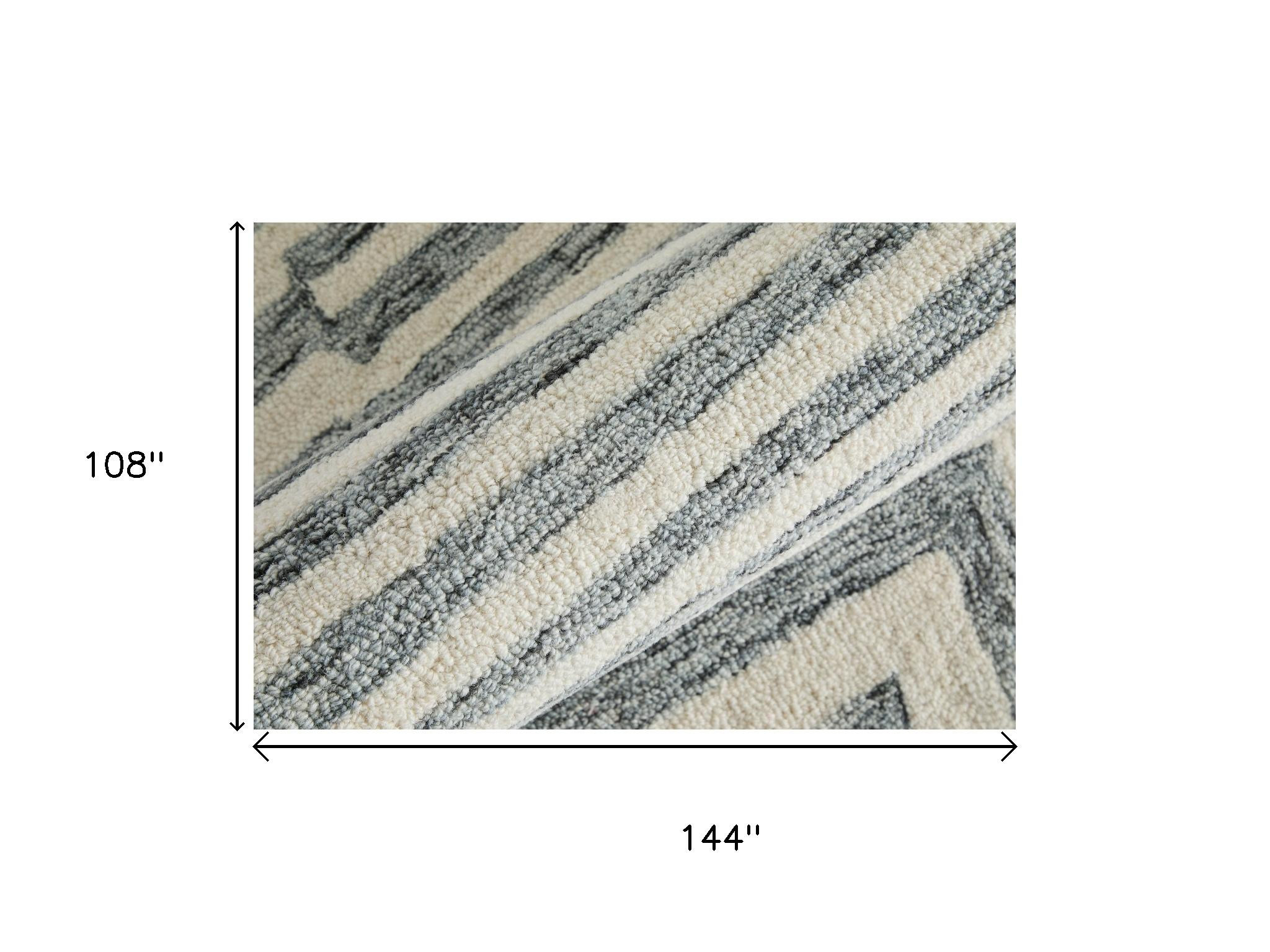 Add great coloration and comfortable texture to your space with this 9-foot x 12-foot gray and ivory wool geometric hand tufted area rug. Ideal for spaces with kids and pets, this rug is stain resistant to help repel dirt and spilled liquids. Crafted by skilled artisans, this hand tufted rug is genuine and unique. No two will be exactly alike. This larger sized, modern styled rug is ready to create a focal point or statement piece in your room. 108.00-inch h x 144.00-inch w x 0.31-inch d.