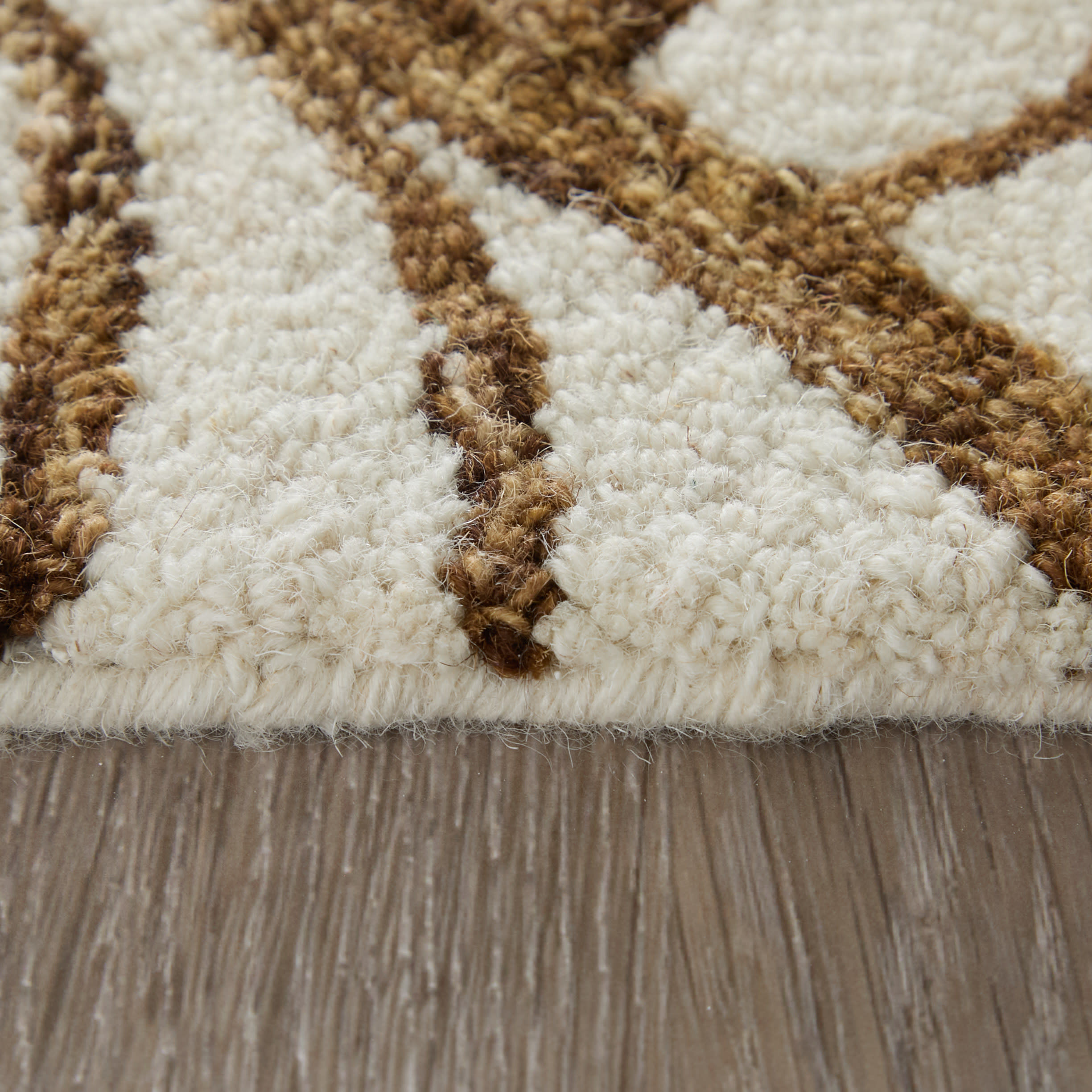 This 5-foot x 8-foot white and brown wool ikat hand tufted area rug, is a great way to add warmth to a room. Ideal for spaces with kids and pets, this rug is stain resistant to help repel dirt and spilled liquids. Crafted by skilled artisans, this hand tufted rug is genuine and unique. No two will be exactly alike. This larger sized, bohemian styled rug is ready to create a focal point or statement piece in your room. 60.00-inch h x 96.00-inch w x 0.31-inch d.