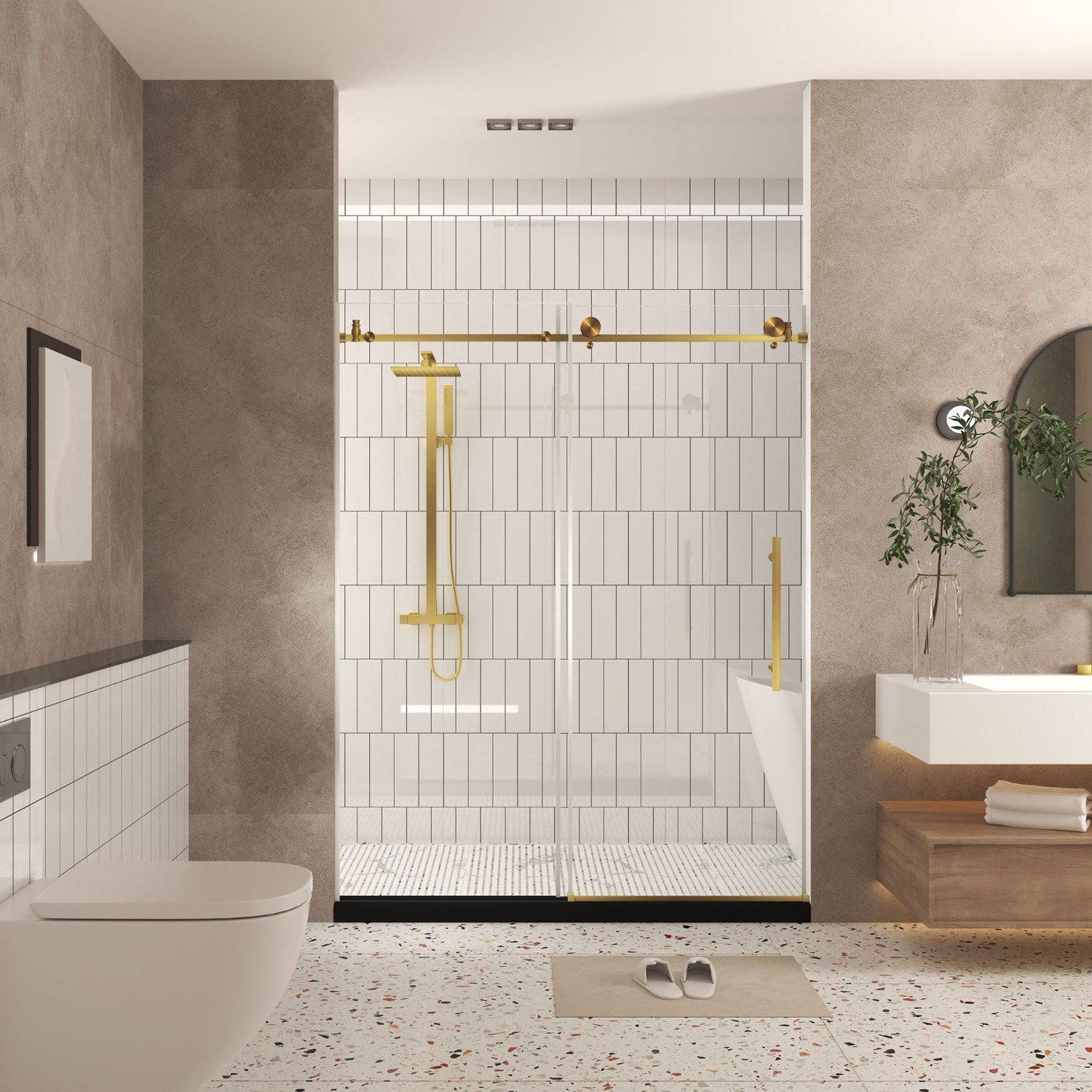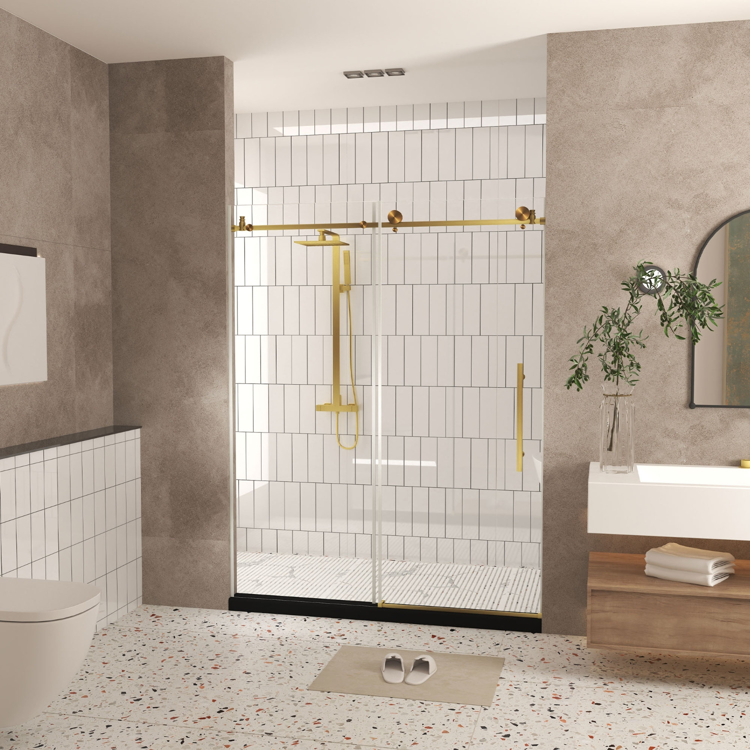 76-inch gold glass sliding closet doors bring a touch of elegance to your home. Crafted from high-quality glass, these doors offer a sleek and modern aesthetic that enhances any room. The gold finish adds a luxurious feel, making them a stunning focal point in your space. Designed for easy sliding, they provide convenience while maximizing your area. Ideal for transforming closets into stylish storage solutions, these doors combine functionality with exquisite design. Their transparent nature allows for light to flow through, creating an airy atmosphere. With these doors, you can effortlessly elevate the décor of your home, making it both practical and visually appealing. Experience the perfect blend of style and utility with these captivating sliding doors. 76.00-inch h x 48.00-inch w x 0.31-inch d.