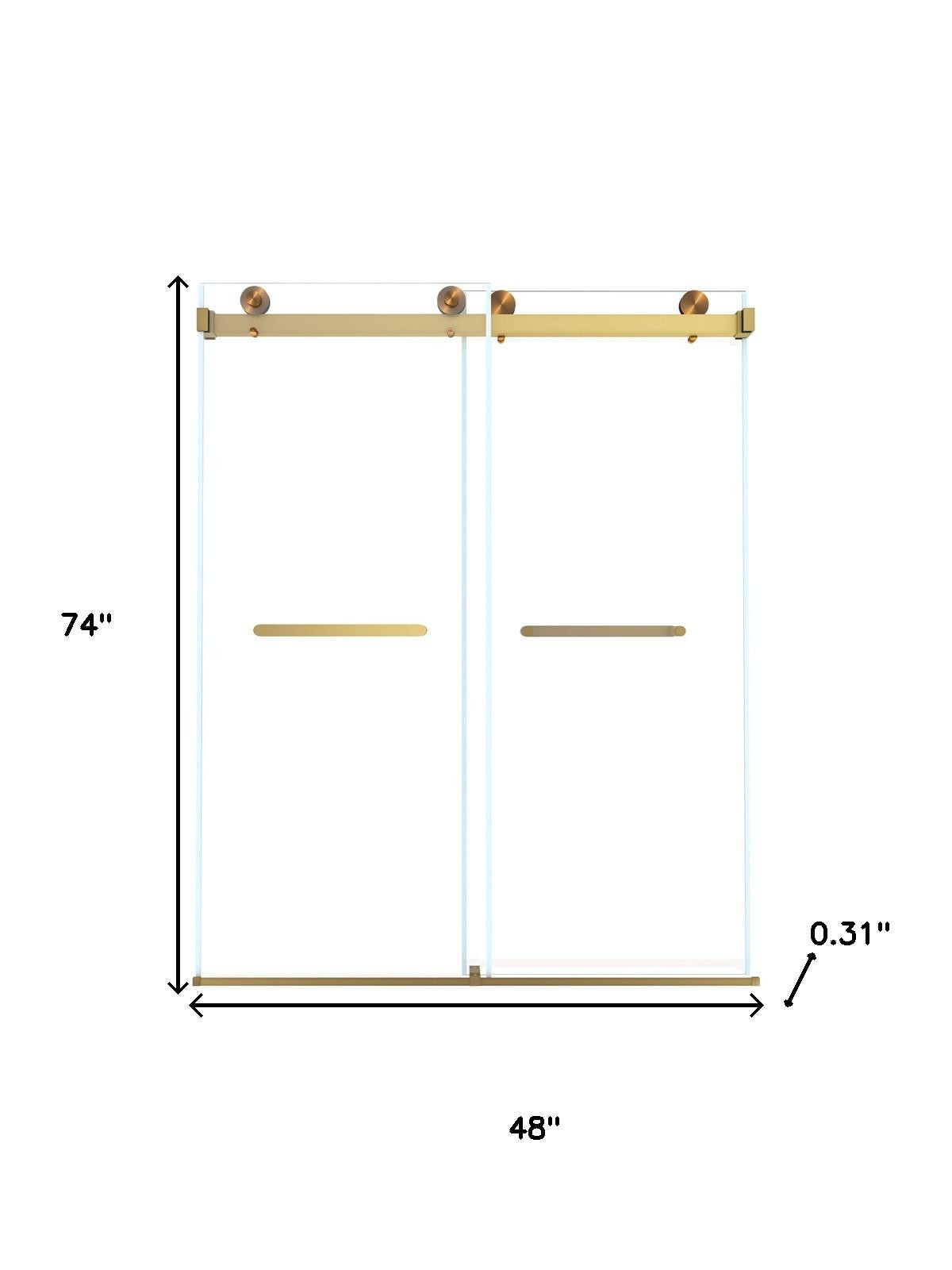 74-inch gold glass sliding closet doors are a stunning addition to any modern space. Crafted from high-quality glass, these doors provide an elegant and sleek look that enhances the overall aesthetic of your room. The gold accents beautifully contrast with the transparency of the glass, offering a touch of luxury while allowing light to flow freely. Designed for functionality, these sliding doors save space and offer easy access to your closet while keeping it stylishly concealed. Ideal for bedrooms or dressing areas, they effortlessly blend sophistication and practicality, making them a perfect choice for those looking to elevate their home decor. Enjoy the perfect fusion of beauty and utility with this captivating design in your interior. 74.00-inch h x 48.00-inch w x 0.31-inch d.