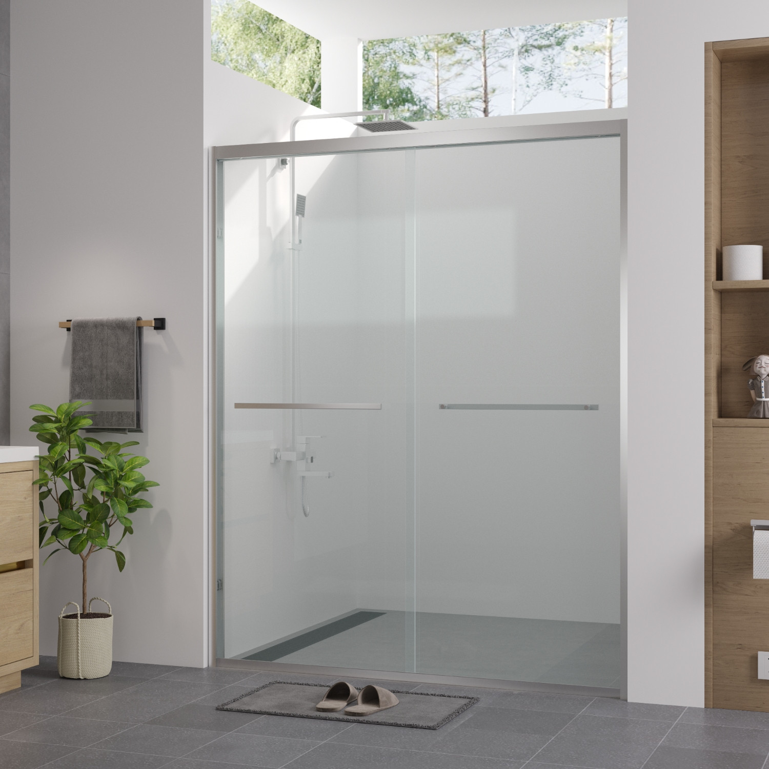 74-inch white glass sliding closet doors bring a sleek and modern touch to your space. The stunning glass material not only enhances the aesthetic appeal but also allows for ample light flow. Their sliding design maximizes space efficiency, making them an ideal choice for smaller rooms. The elegant white finish seamlessly complements a variety of decor styles, from contemporary to minimalist. Easy to install, these doors add functionality and sophistication to your closet area. Create an open and airy atmosphere in your home while maintaining organization with these stylish sliding doors. Upgrade your interiors with this perfect blend of practicality and modern design that stands the test of time. 74.00-inch h x 60.00-inch w x 0.24-inch d.