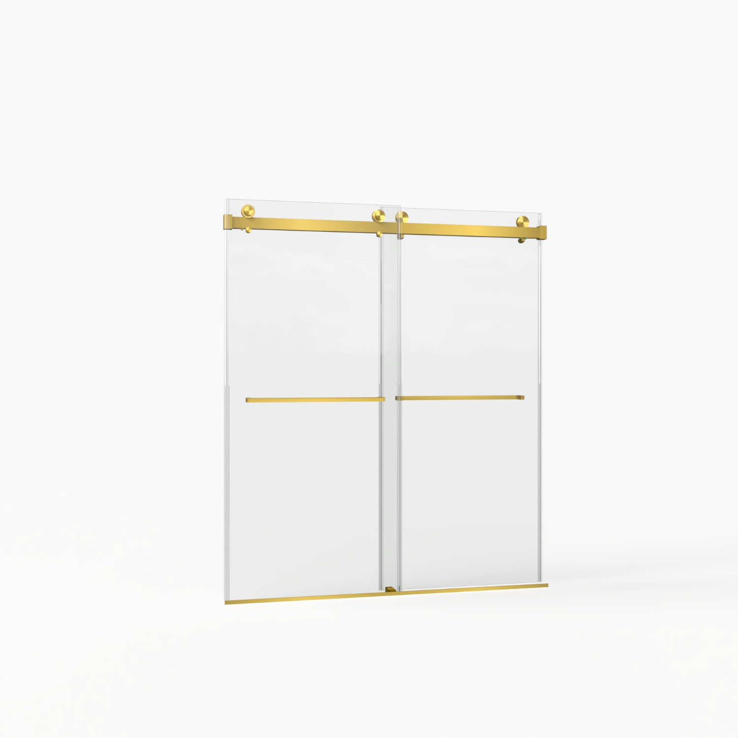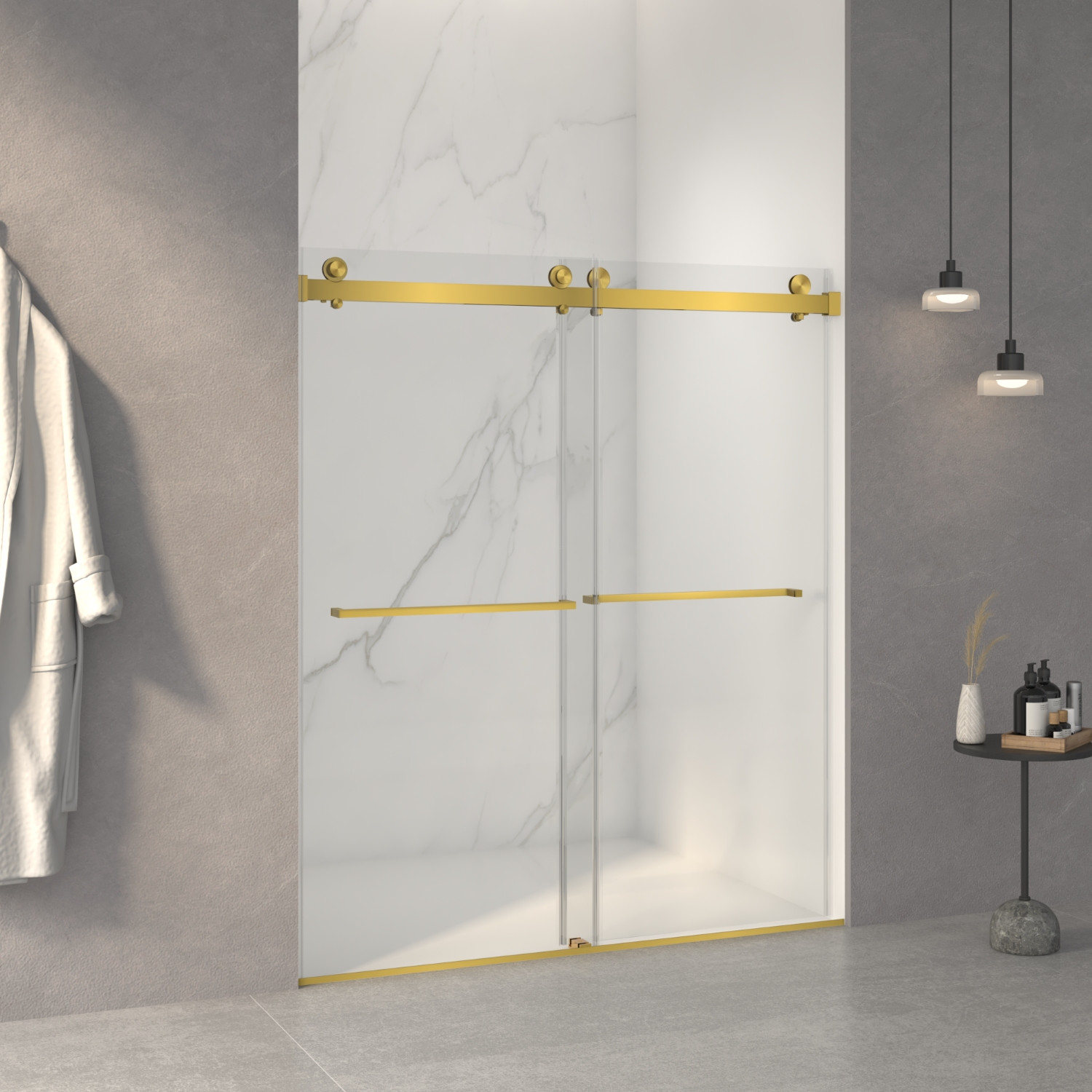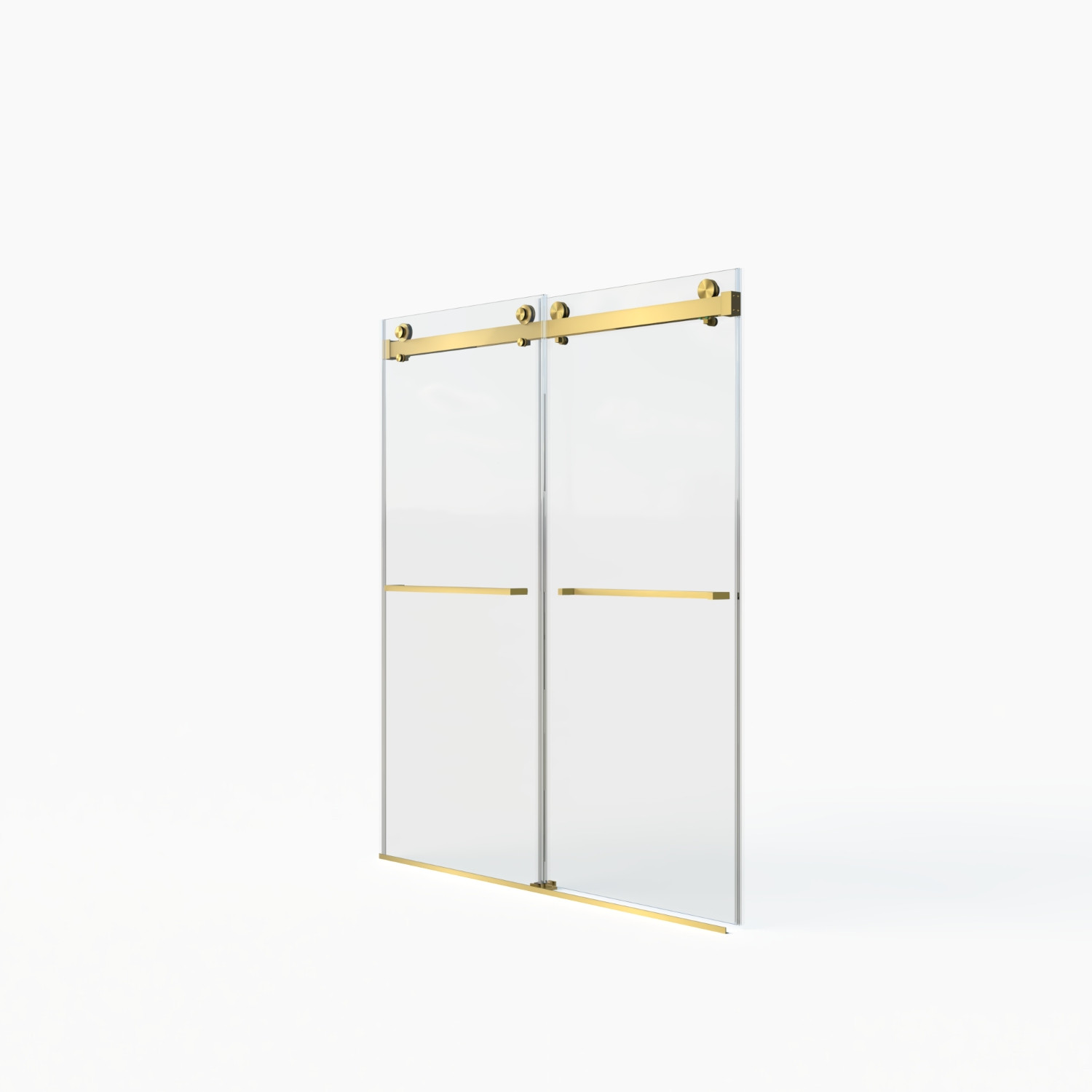 70-inch gold glass sliding closet doors bring a touch of elegance to your space. Crafted from high-quality glass, these doors offer a sleek and modern aesthetic that complements any decor. The stunning gold accents add a luxurious feel, making them a standout feature in your home. Designed for easy sliding, they provide efficient use of space while ensuring a smooth operation. Whether for a closet or as a decorative partition, these doors enhance both functionality and style. The transparent glass allows natural light to flow through, creating an airy atmosphere. Upgrade your interiors with this stylish solution that seamlessly combines beauty and practicality. Transform your living environment with these eye-catching sliding doors that elevate your home's charm. 70.00-inch h x 60.00-inch w x 3.23-inch d.