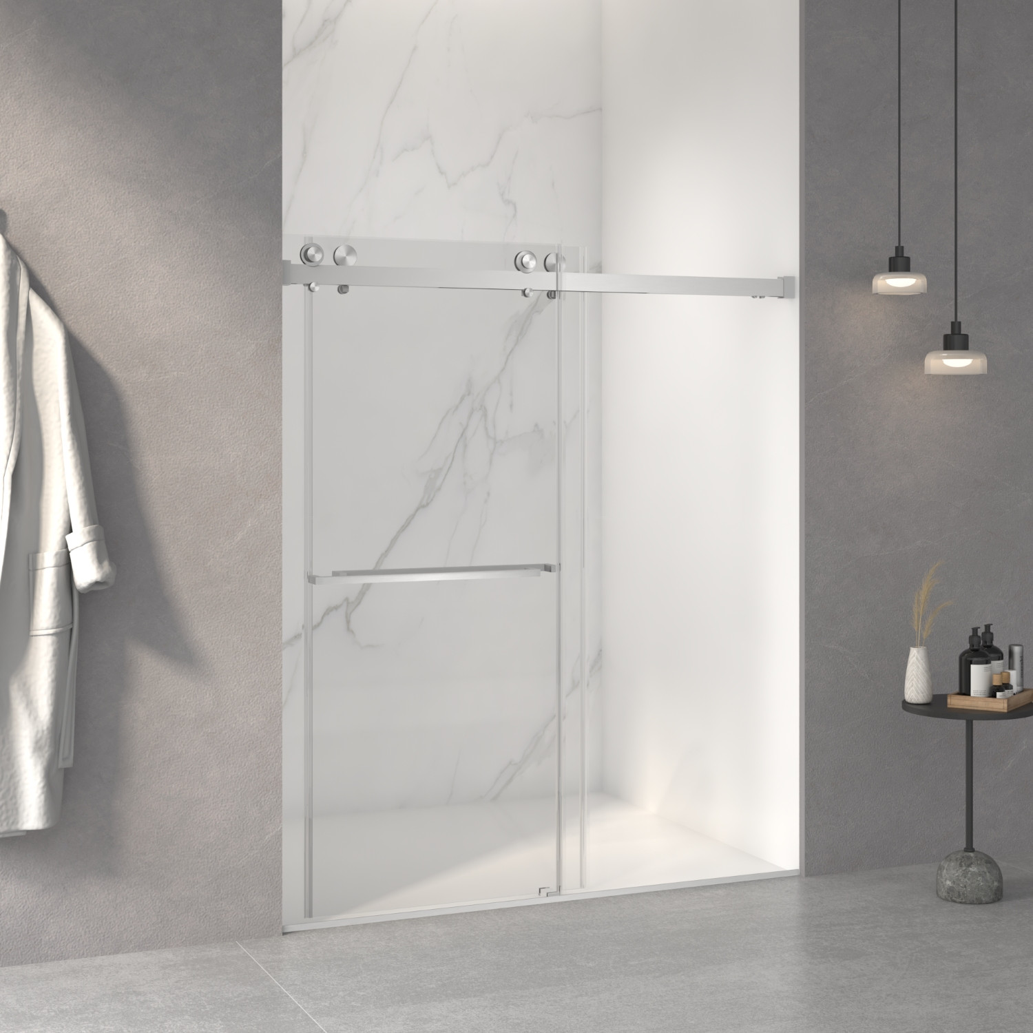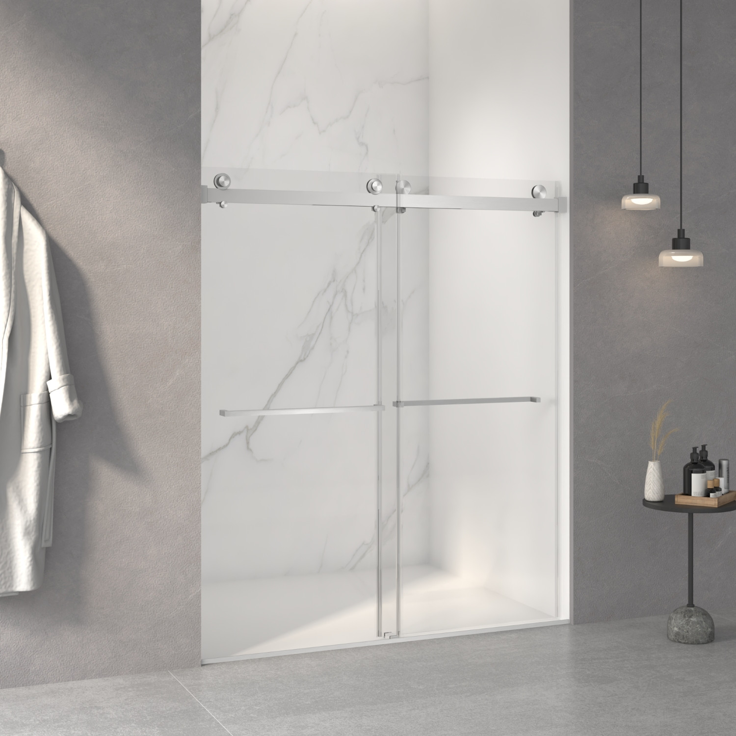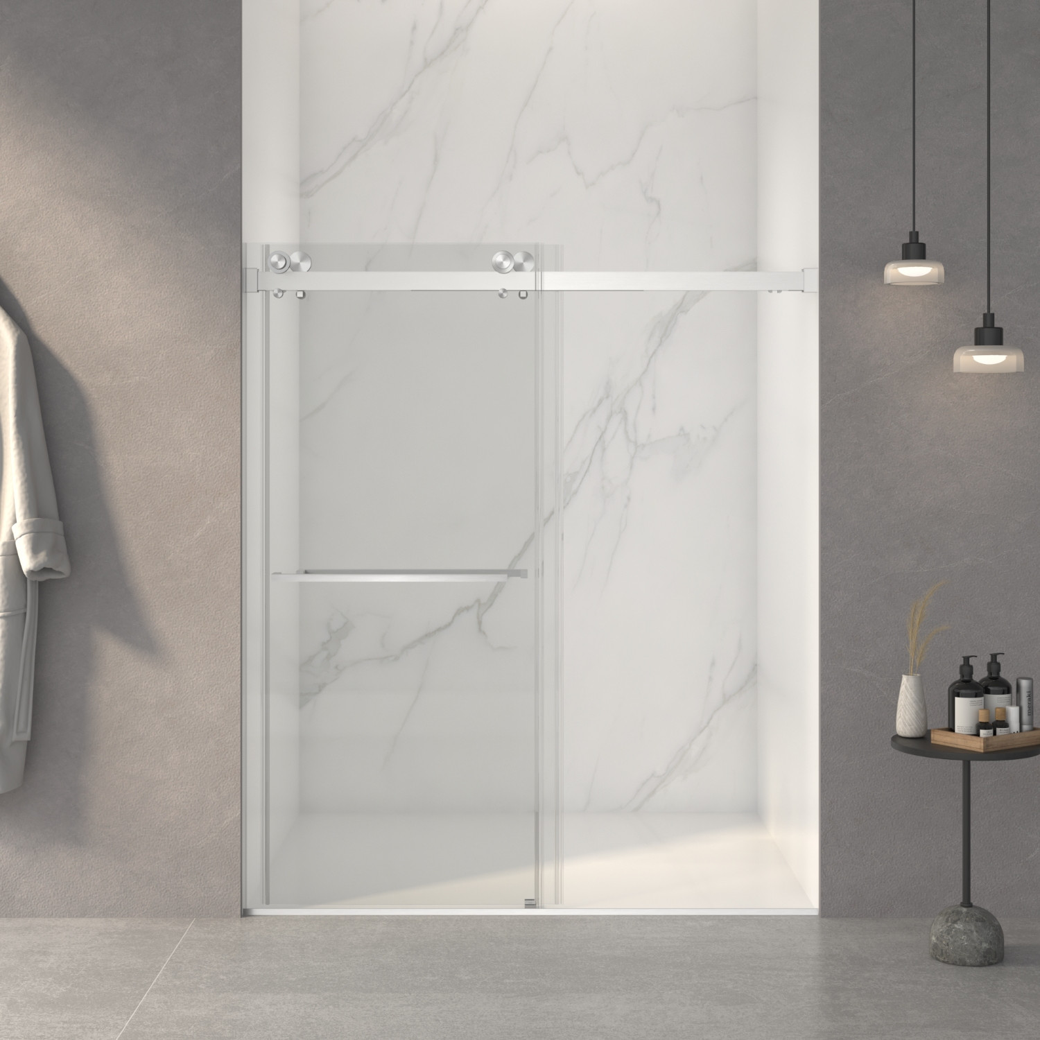 70-inch white glass sliding closet doors offer a sleek and modern solution for any closet space. Crafted from high-quality glass, these doors provide a contemporary aesthetic while maximizing light flow. The smooth sliding mechanism ensures easy access to your belongings, enhancing your daily routine. Their elegant white finish adds a touch of sophistication, making them a versatile choice for various decor styles. Ideal for smaller spaces, these doors help create the illusion of a larger area, promoting an airy feel. With their durable construction, they are designed to withstand daily use while maintaining their refined appearance. Revamp your storage area with these stylish sliding doors, combining functionality and elegance seamlessly. 70.00-inch h x 60.00-inch w x 3.23-inch d.