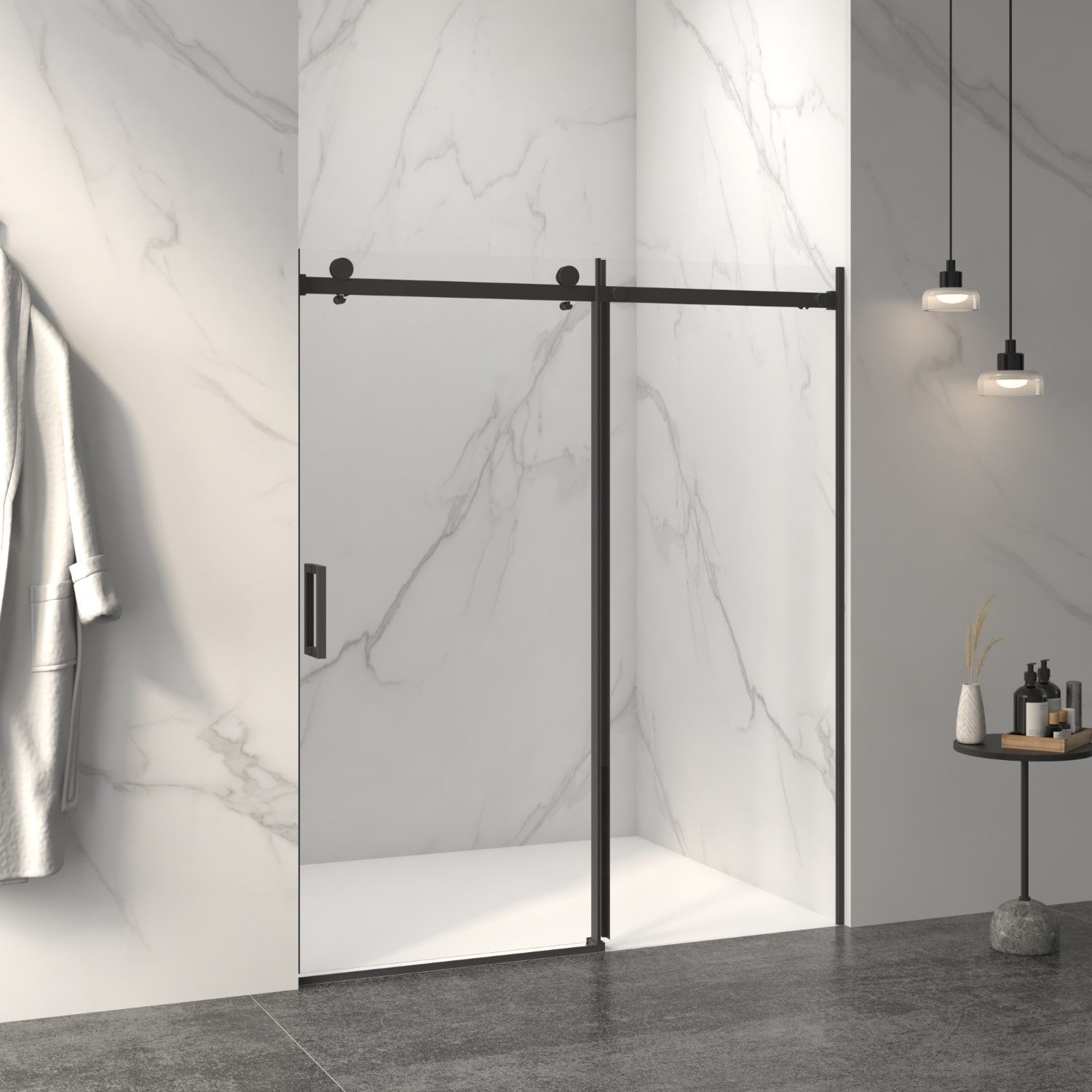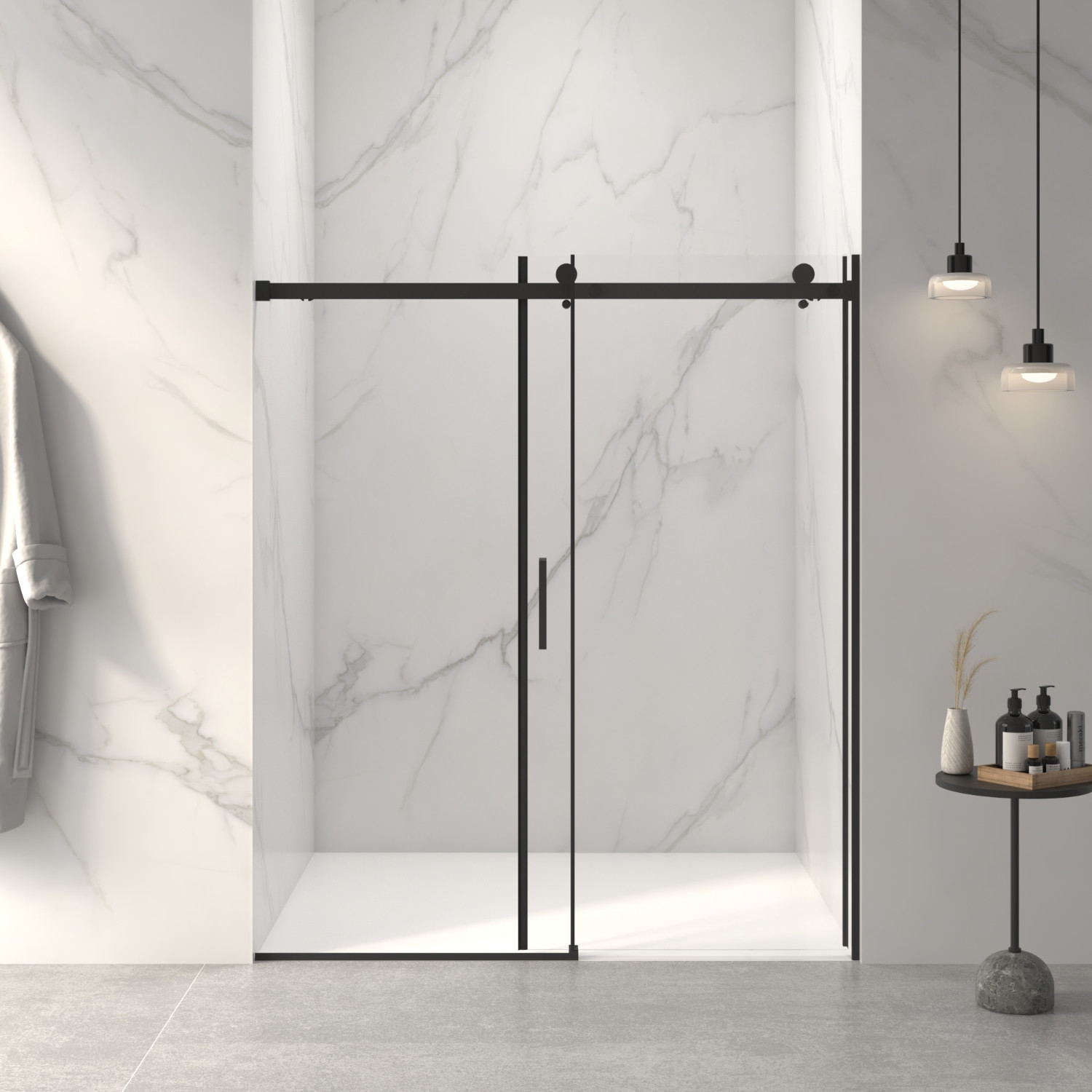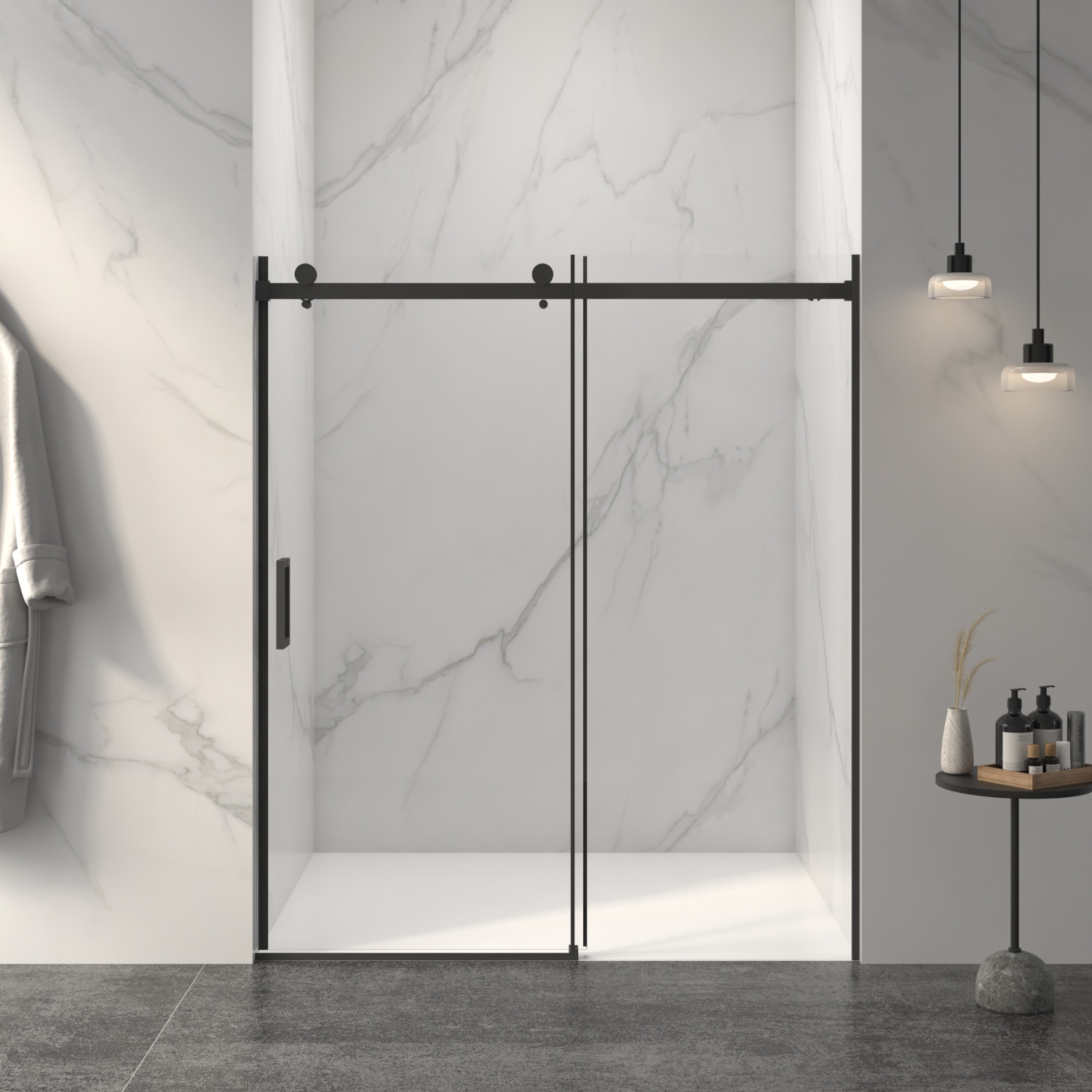 72-inch black glass sliding closet doors offer a sleek and modern design that enhances any space. Crafted from high-quality glass, these doors provide durability while allowing natural light to filter through. The elegant black finish adds a touch of sophistication, making them suitable for both contemporary and traditional interiors. With their sliding mechanism, they save valuable floor space, ideal for smaller rooms. These doors not only improve accessibility to your closet but also elevate the overall aesthetic of your home. Enjoy the perfect blend of style and functionality as you transform your closet with this chic addition. Upgrade your living space with these stunning glass sliding doors that redefine elegance and practicality. 72.00-inch h x 60.00-inch w x 3.23-inch d.