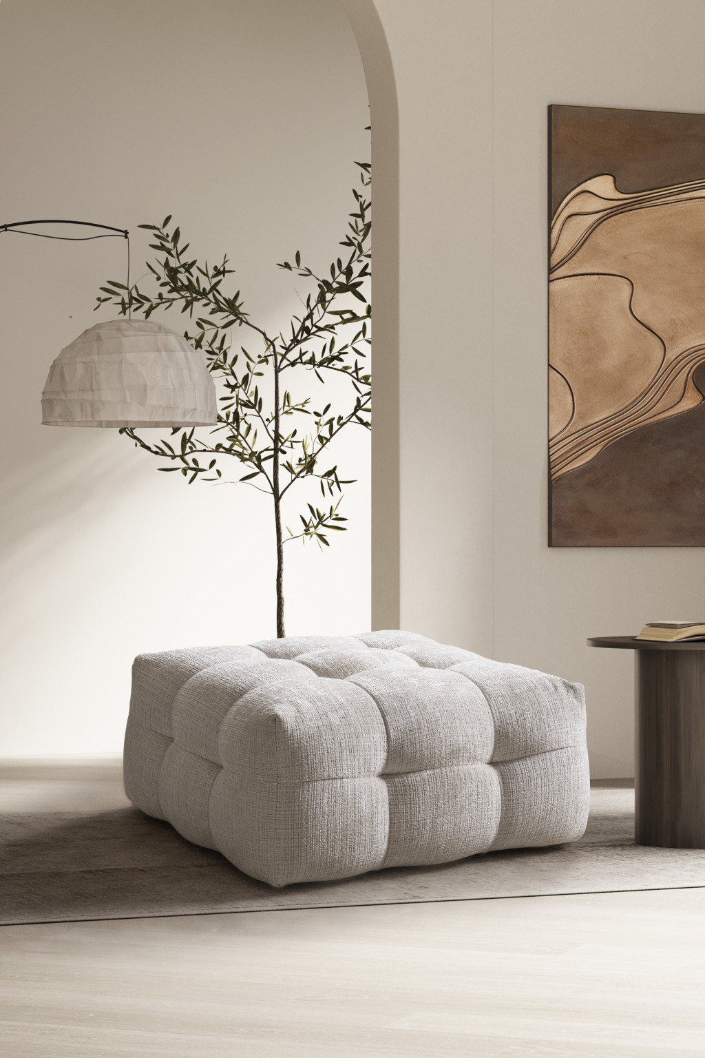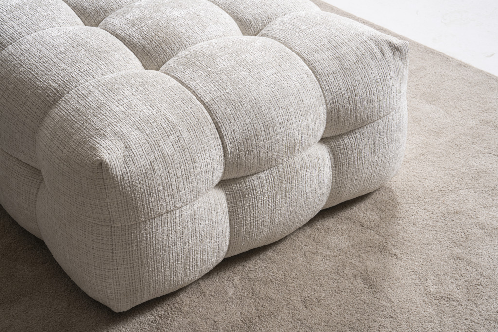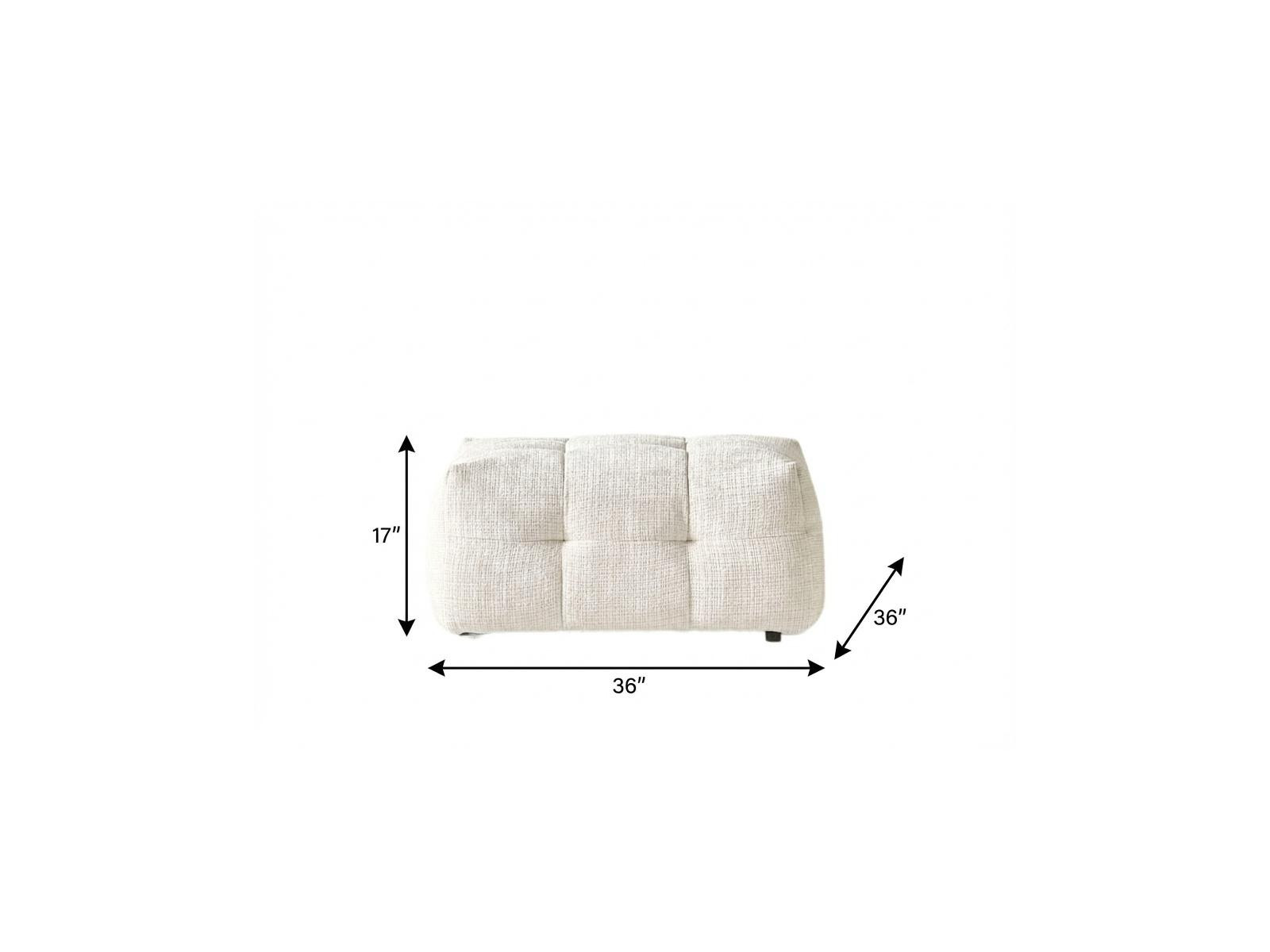 Get ready to relax with this 36-inch beige and black chenille tufted ottoman. Expertly upholstered with padding in a soft solid color chenille with tufted stitching, this square ottoman is as comfortable as it is good looking. Ottomans are multi-functional additions to your space that add fashion and practical value. 17.00-inch h x 36.00-inch w x 36.00-inch d.