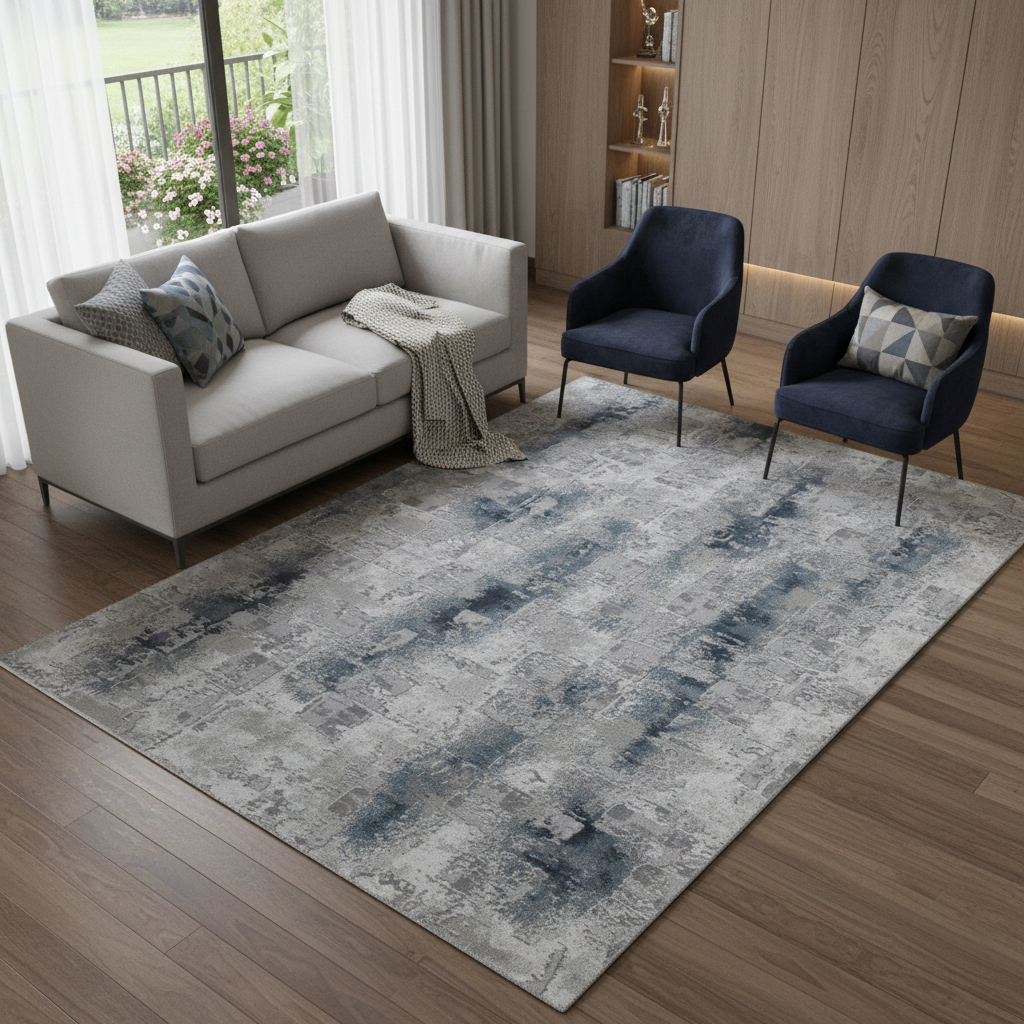 white abstract distressed area rug, abstract distressed area rug, distressed area rug, blue white abstract distressed area, 7' X 10' blue white abstract distressed |