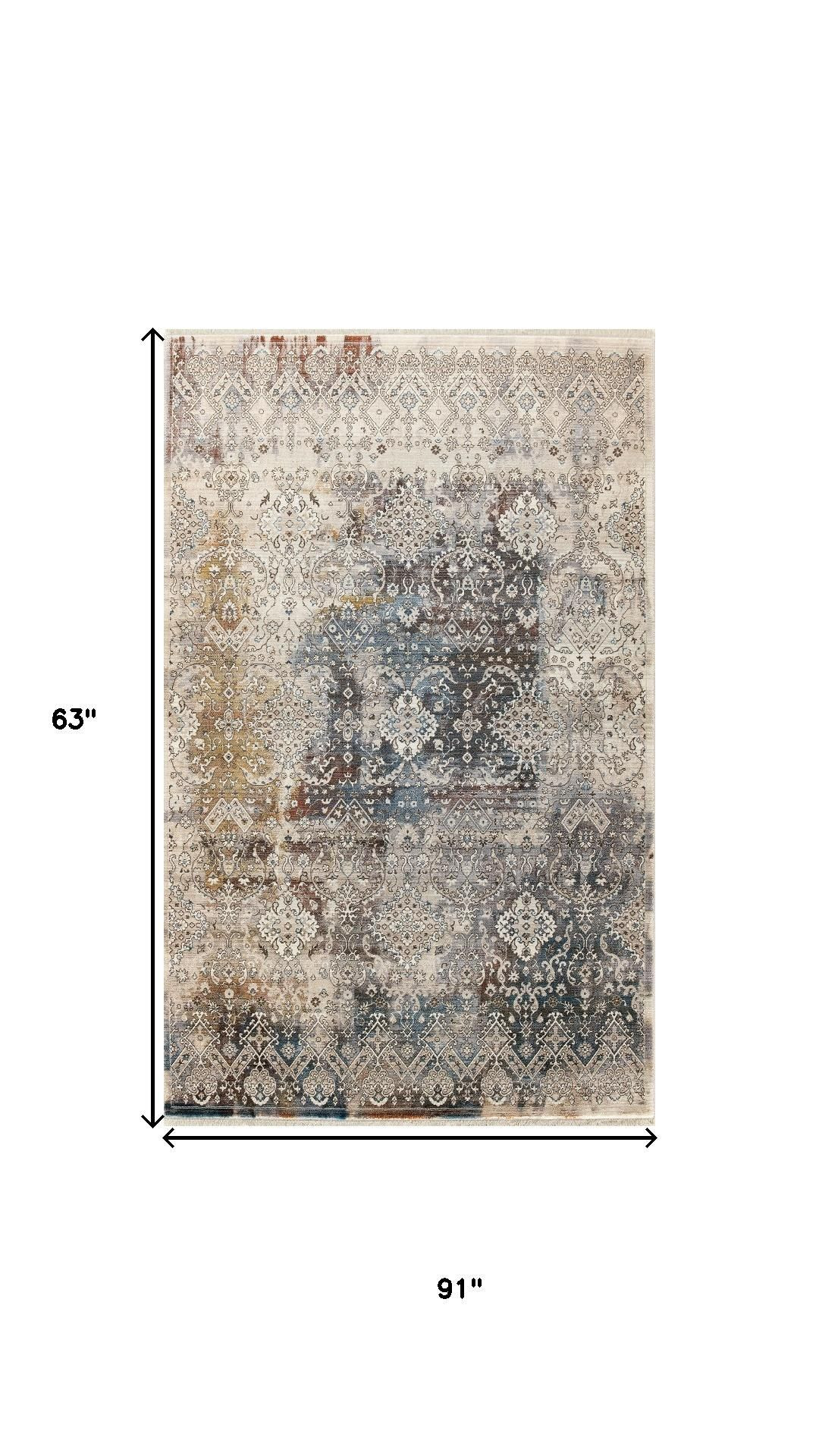 Set an inviting tone in your space with this 5-foot x 8-foot blue and orange medallion distressed area rug with fringe. Built to last, this rug crafted from polypropylene blend fibers is known for its durability and long lasting appeal. Tassel ends bring a timeless and fashionable look to your interior. This larger sized, contemporary styled rug is ready to create a focal point or statement piece in your room. 63.00-inch h x 91.00-inch w x 0.39-inch d.