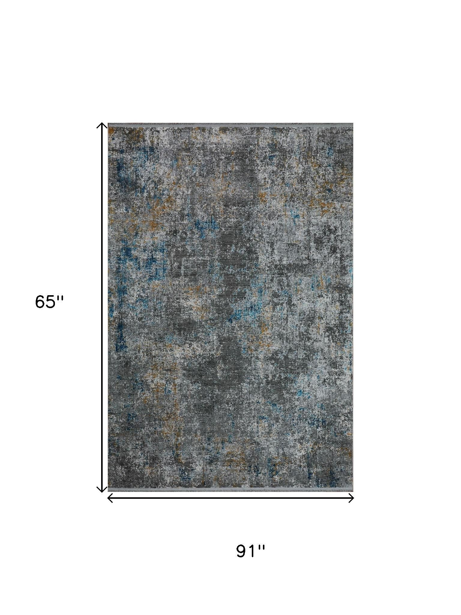 This 7-foot x 10-foot blue and gray abstract distressed area rug with fringe, is a great way to add warmth to a room. Tassel ends bring a timeless and fashionable look to your interior. This larger sized, contemporary styled rug is ready to create a focal point or statement piece in your room. 65.00-inch h x 91.00-inch w x 0.24-inch d.
