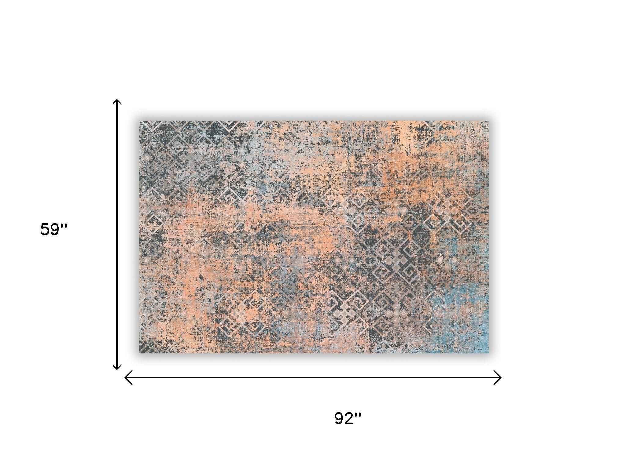 This 5-foot x 8-foot blue and orange abstract distressed area rug, is a great way to add warmth to a room. This larger sized, contemporary styled rug is ready to create a focal point or statement piece in your room. Featuring a rectangle shape, this machine woven rug combines durability with style, crafted from a soft cotton blend for comfort underfoot. The purposeful worn faded design gives it a unique character, while the non-slip backing ensures it stays securely in place. Easy maintenance is guaranteed as it can be vacuumed with a beater bar or rotating brush. 59.00-inch h x 92.00-inch w x 0.20-inch d.