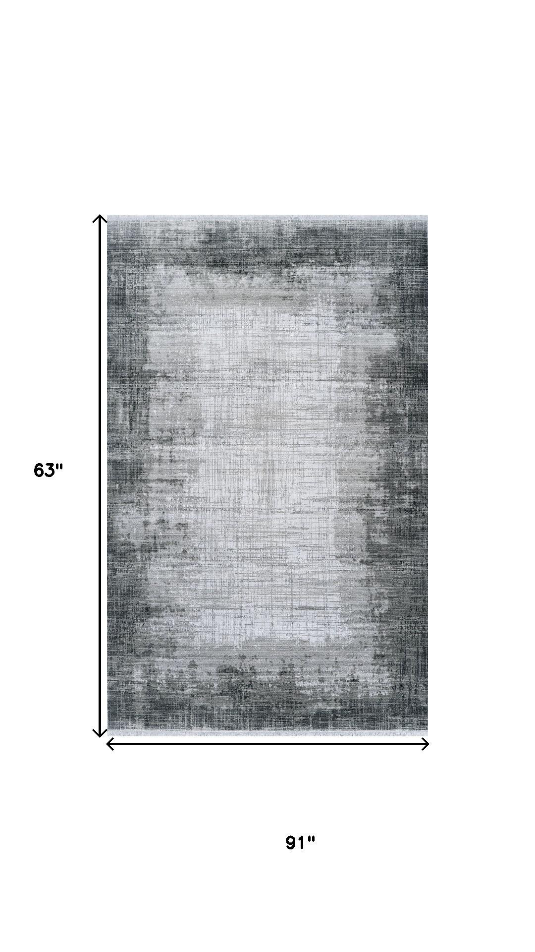 Set an inviting tone in your space with this 5-foot x 8-foot gray and white abstract distressed area rug with fringe. Built to last, this rug crafted from polyester fibers is known for its durability and long lasting appeal. Tassel ends bring a timeless and fashionable look to your interior. This larger sized, contemporary styled rug is ready to create a focal point or statement piece in your room. 63.00-inch h x 91.00-inch w x 0.24-inch d.
