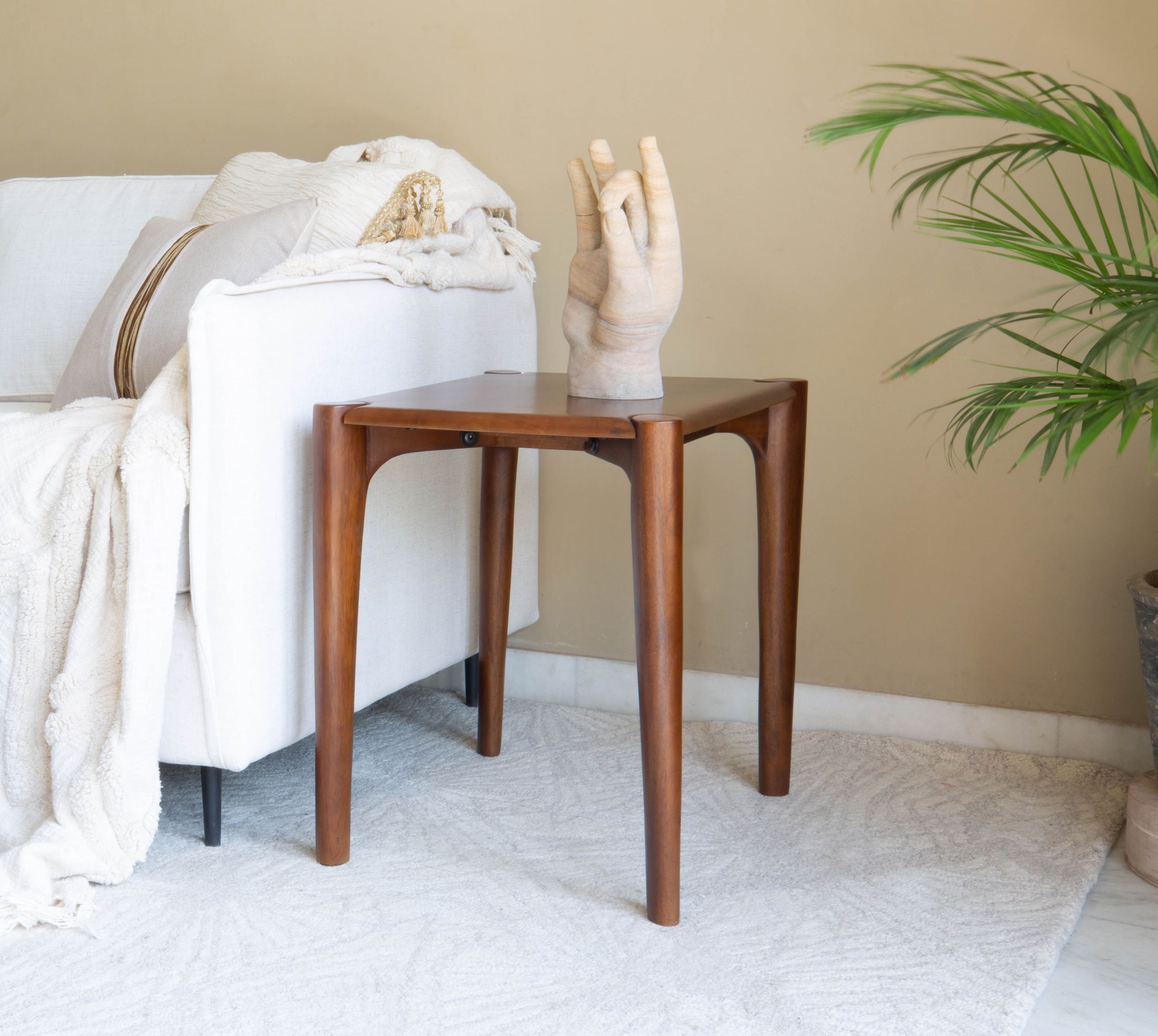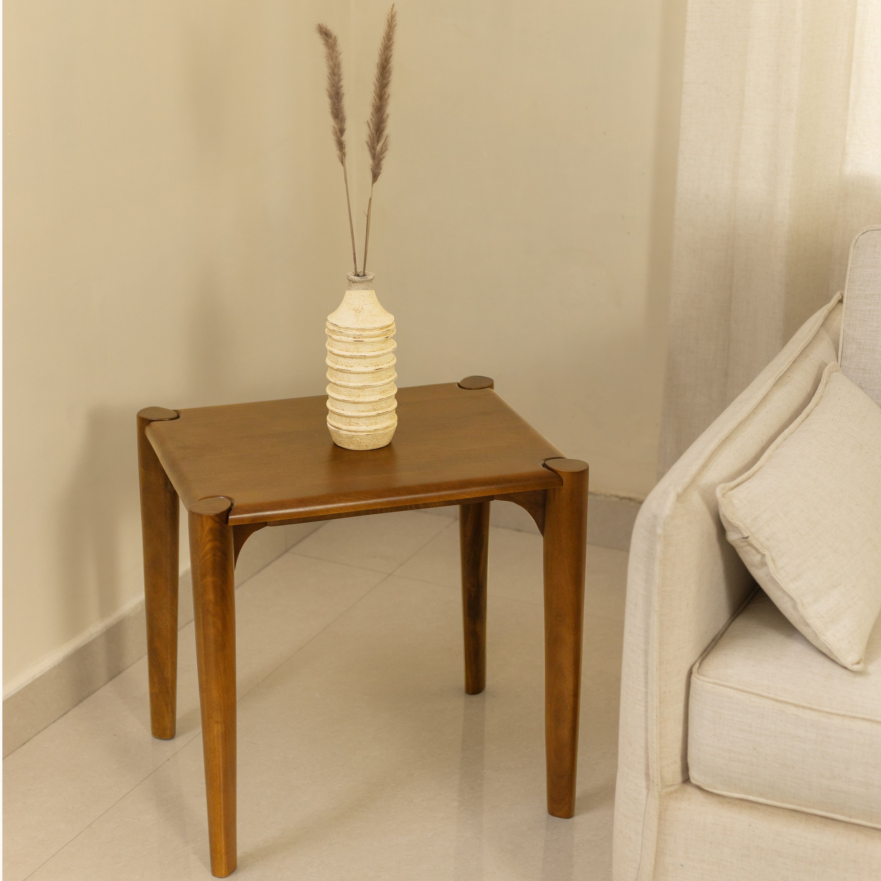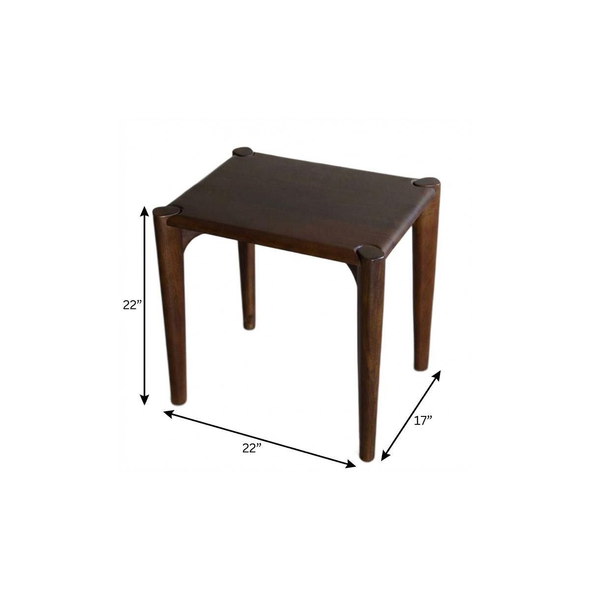 Show off your exquisite taste with this 22-inch brown solid wood square end table. This table is made from solid wood in a brown color throughout the base and top. A great accent on either side of the sofa or bed, this adorable end or side table is just what you need. This versatile table is a great accent for most any room. 22.00-inch h x 22.00-inch w x 17.00-inch d.