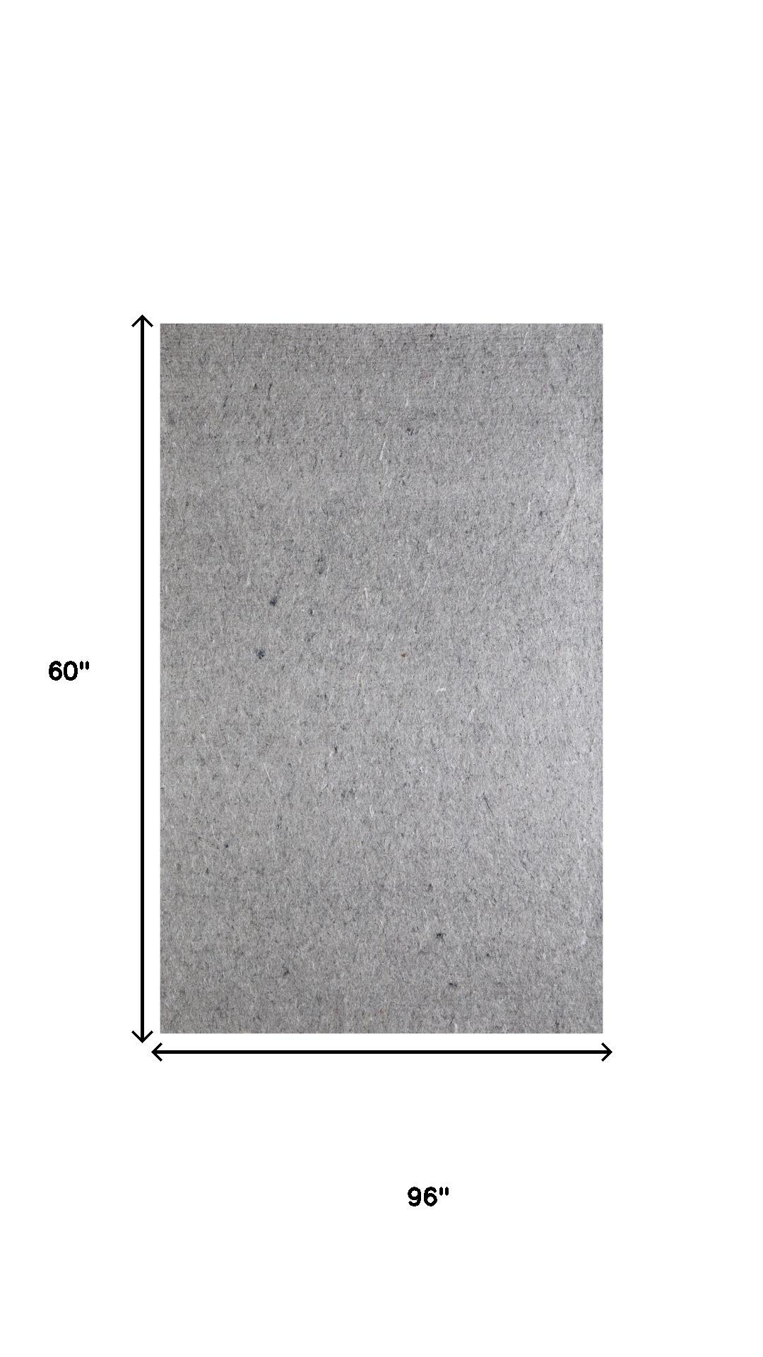 The 5-foot x 8-foot gray non slip rug pad enhances your flooring with its reliable grip and cushioning. Designed in a rectangular shape, this versatile pad is compatible with various floor types, including hardwood, carpet, linoleum, laminate, concrete, stone, and tile. Crafted from durable felt material, it ensures long-lasting performance while protecting your floors from scratches and wear. With a thickness of 0.33 inches, it adds just the right amount of support to keep your rugs in place. Upgrade your home decor by providing a stable foundation for your rugs with this essential accessory. Enjoy both comfort and safety in any room, transforming your living space into a cozy haven. 60.00-inch h x 96.00-inch w x 0.33-inch d.