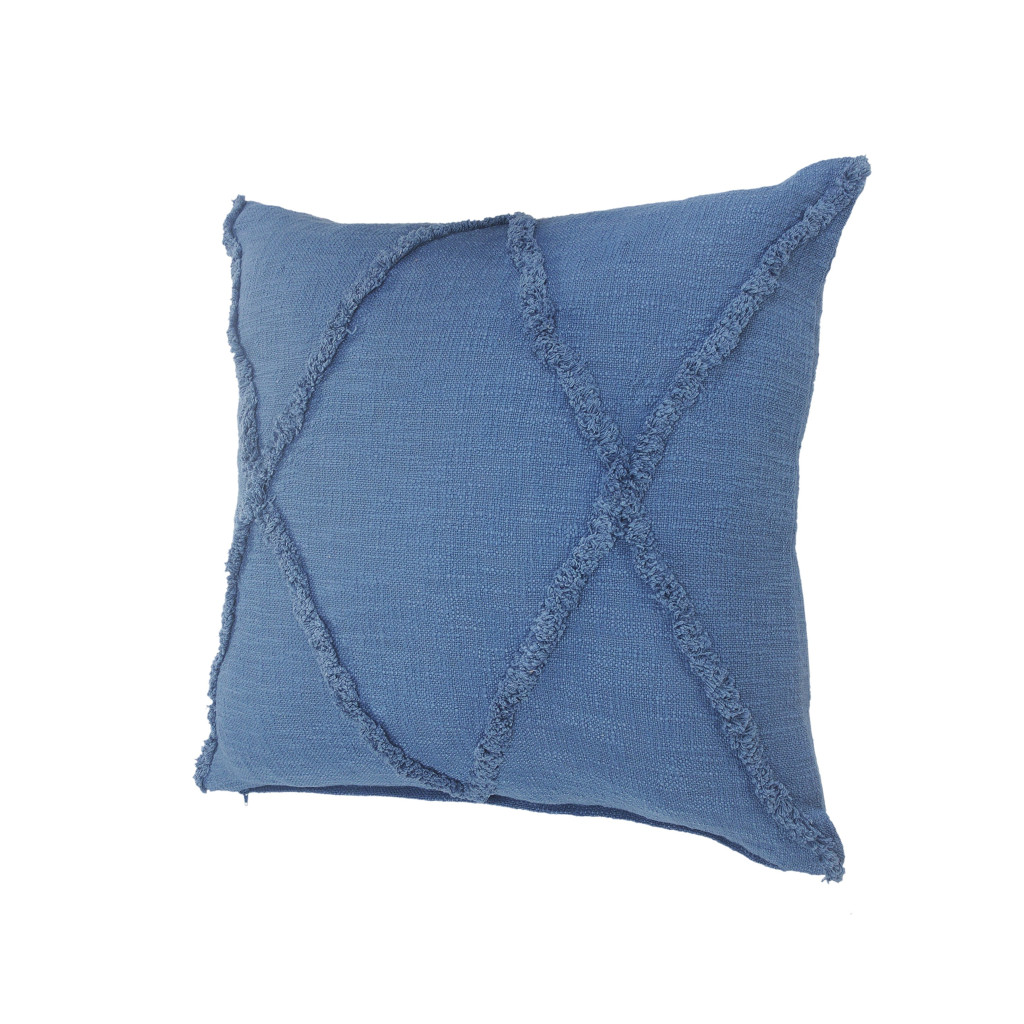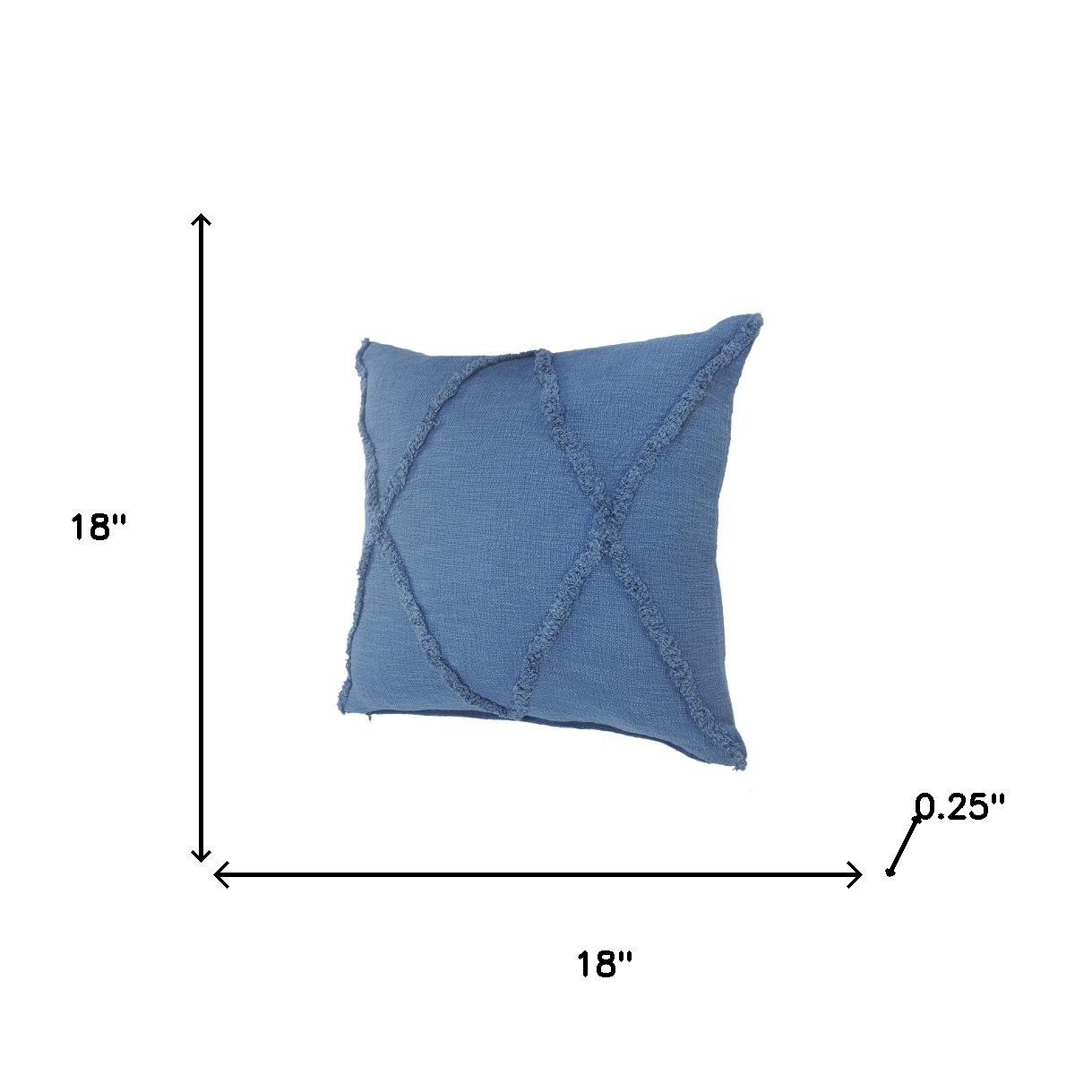 Add an air of fashion to your room and rejuvenate the space with this cute and fashionable 18-inch blue and indigo diamond cotton throw pillow cover with texture. Durable blue and indigo cotton has been used to give this pillow cover a beautiful look that will stand the test of time. Pillow covers are a good idea for anyone that loves to decorate or accent their space with color and texture. Combine with your own fill or insert to add decoration and dimension to your favorite chair, accent your sofa, or to use as part of your bed ensemble. 18.00-inch h x 18.00-inch w x 0.25-inch d.