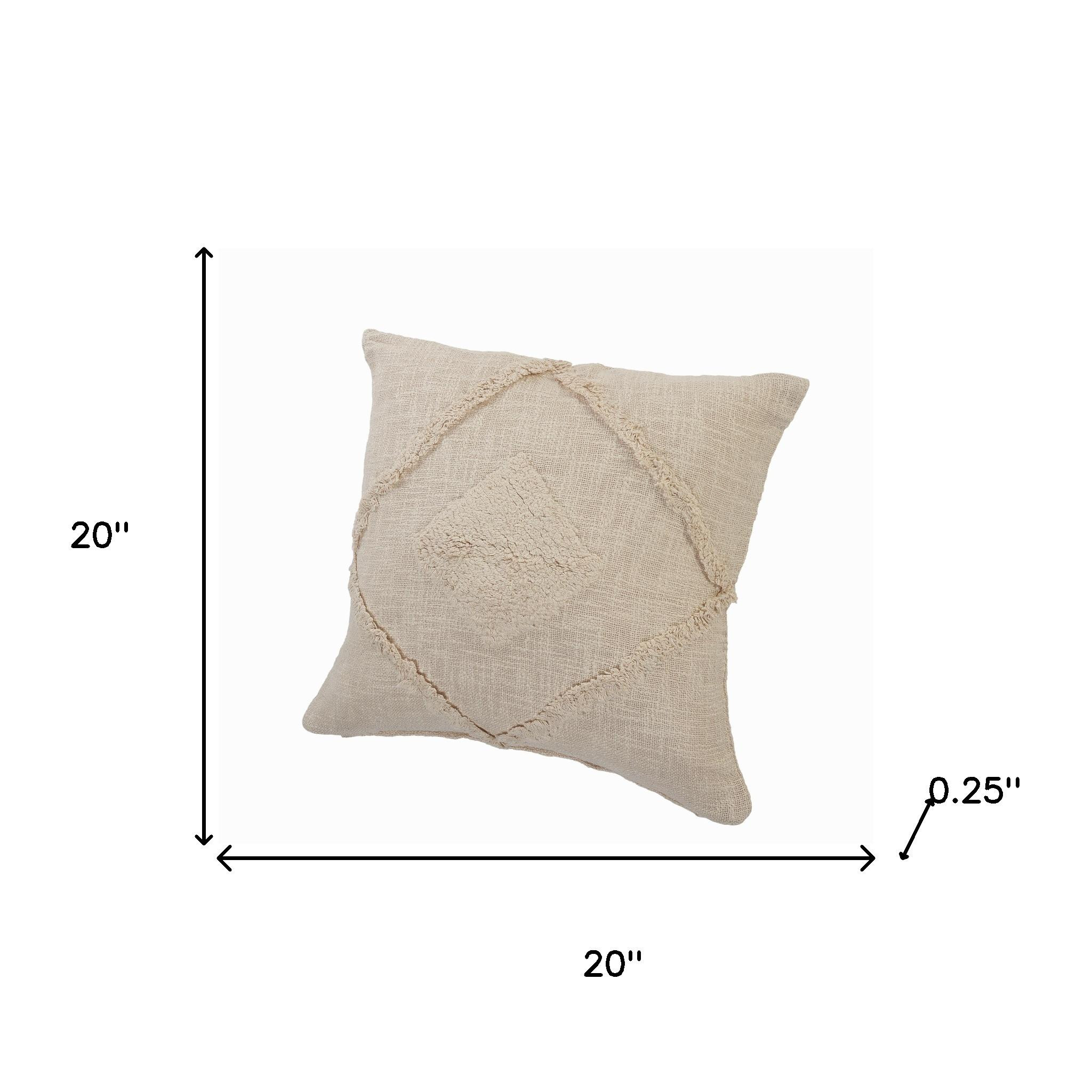 This 20-inch beige and brown diamond cotton throw pillow cover with texture will add a beautiful decorative accent to your decor. This beige and brown hued, accent pillow cover, represents quality construction, expertly made from durable cotton that is not only long lasting but soft to the touch as well. Pillow covers are a good idea for anyone that loves to decorate or accent their space with color and texture. Combine with your own fill or insert to add decoration and dimension to your favorite chair, accent your sofa, or to use as part of your bed ensemble. 20.00-inch h x 20.00-inch w x 0.25-inch d.