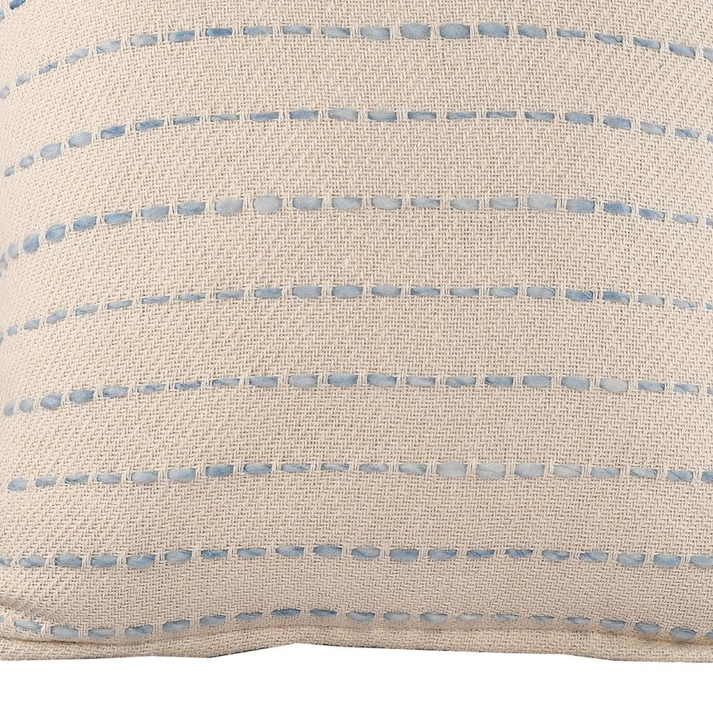 The perfect complement to your sofa, favorite chair, or bed, this 20-inch blue and ivory striped cotton blend throw pillow cover with fringe is a great decorative accent. Durable blue and ivory cotton blend has been used to give this pillow cover a beautiful look that will stand the test of time. Pillow covers are a good idea for anyone that loves to decorate or accent their space with color and texture. Combine with your own fill or insert to add decoration and dimension to your favorite chair, accent your sofa, or to use as part of your bed ensemble. 20.00-inch h x 20.00-inch w x 0.25-inch d.