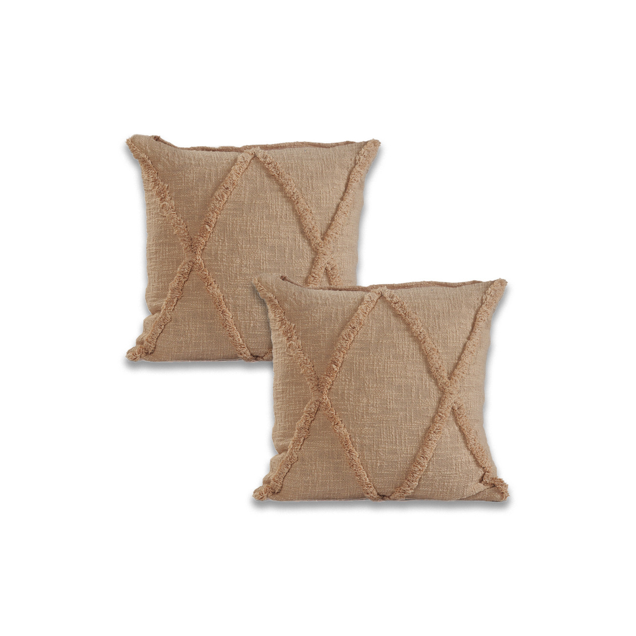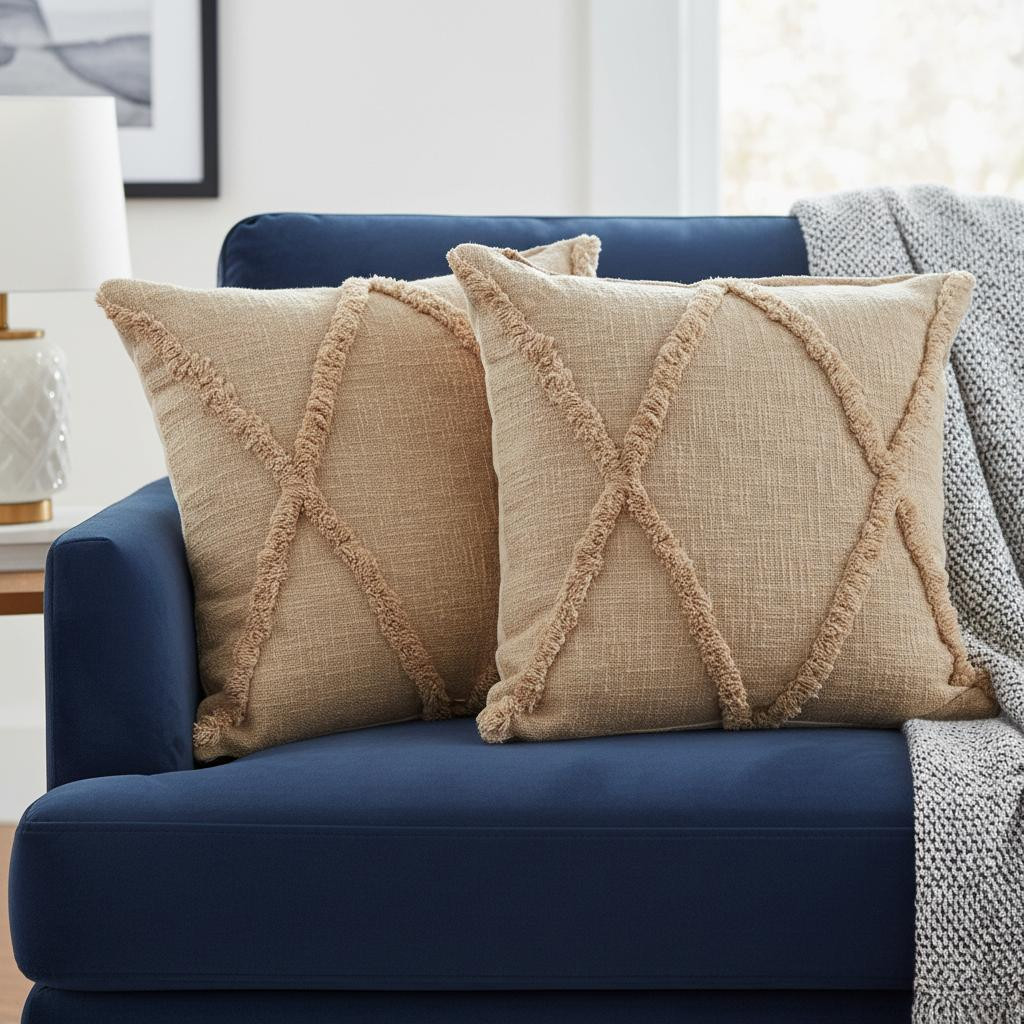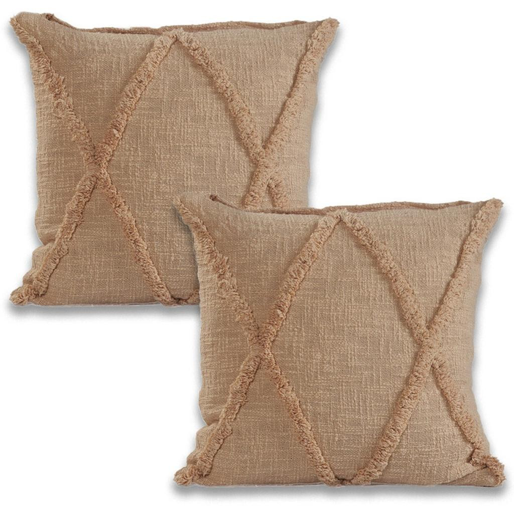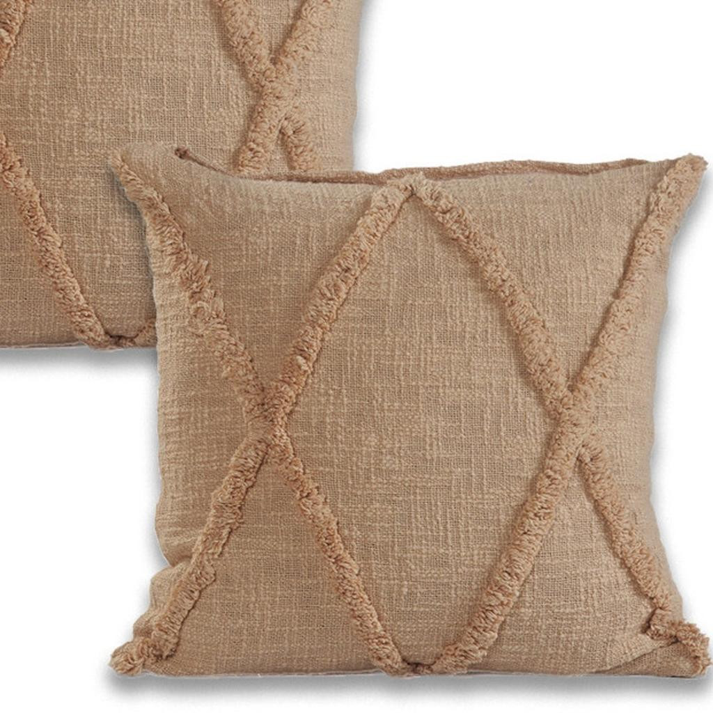 The set of two beige and brown diamond cotton throw pillows with texture is the perfect decorative accessory for your home. The beige and brown coloring of the extremely durable and long lasting cotton pillows will add dimension and texture to your space. Decorative pillows are a great way to change up the look and feel of your space easily and quickly. A great decorative accessory to add color and dimension to your favorite chair, accent your sofa, or to use as part of your bed ensemble. 18.00-inch h x 18.00-inch w x 7.00-inch d.