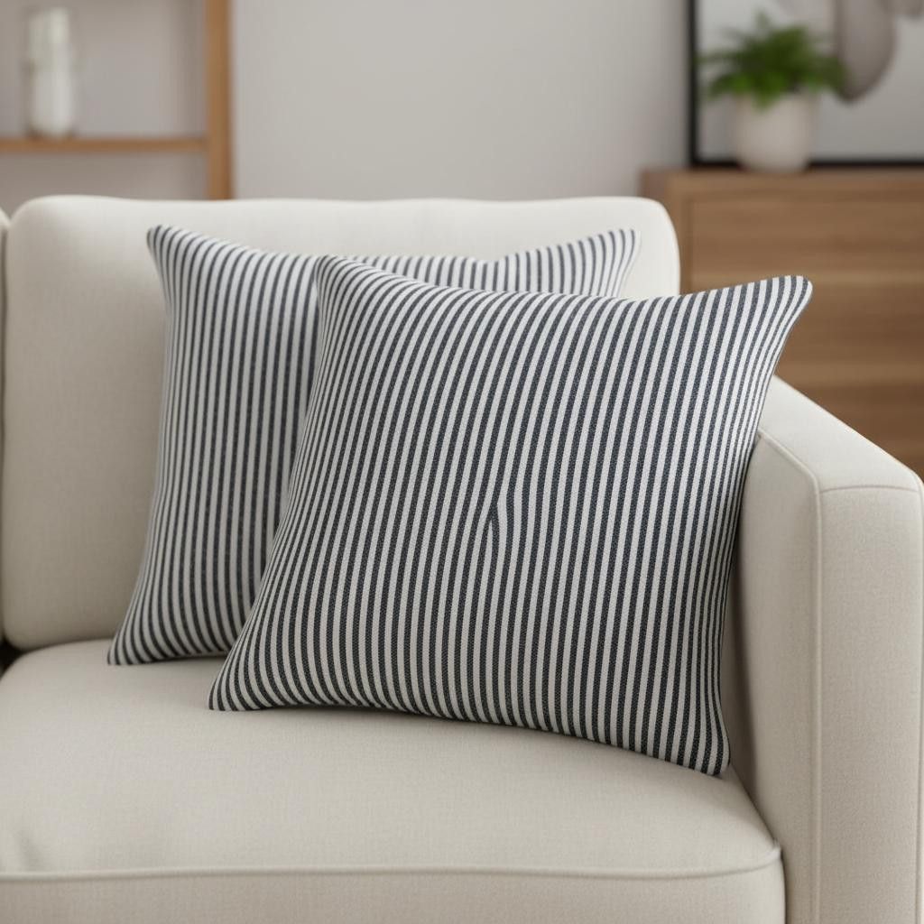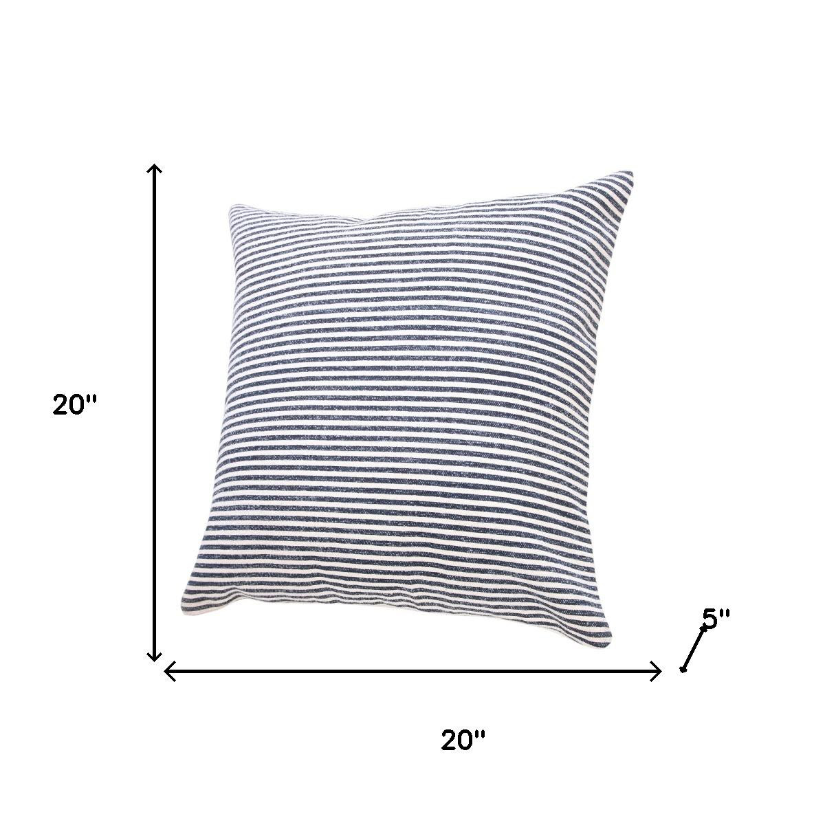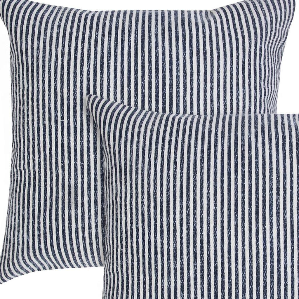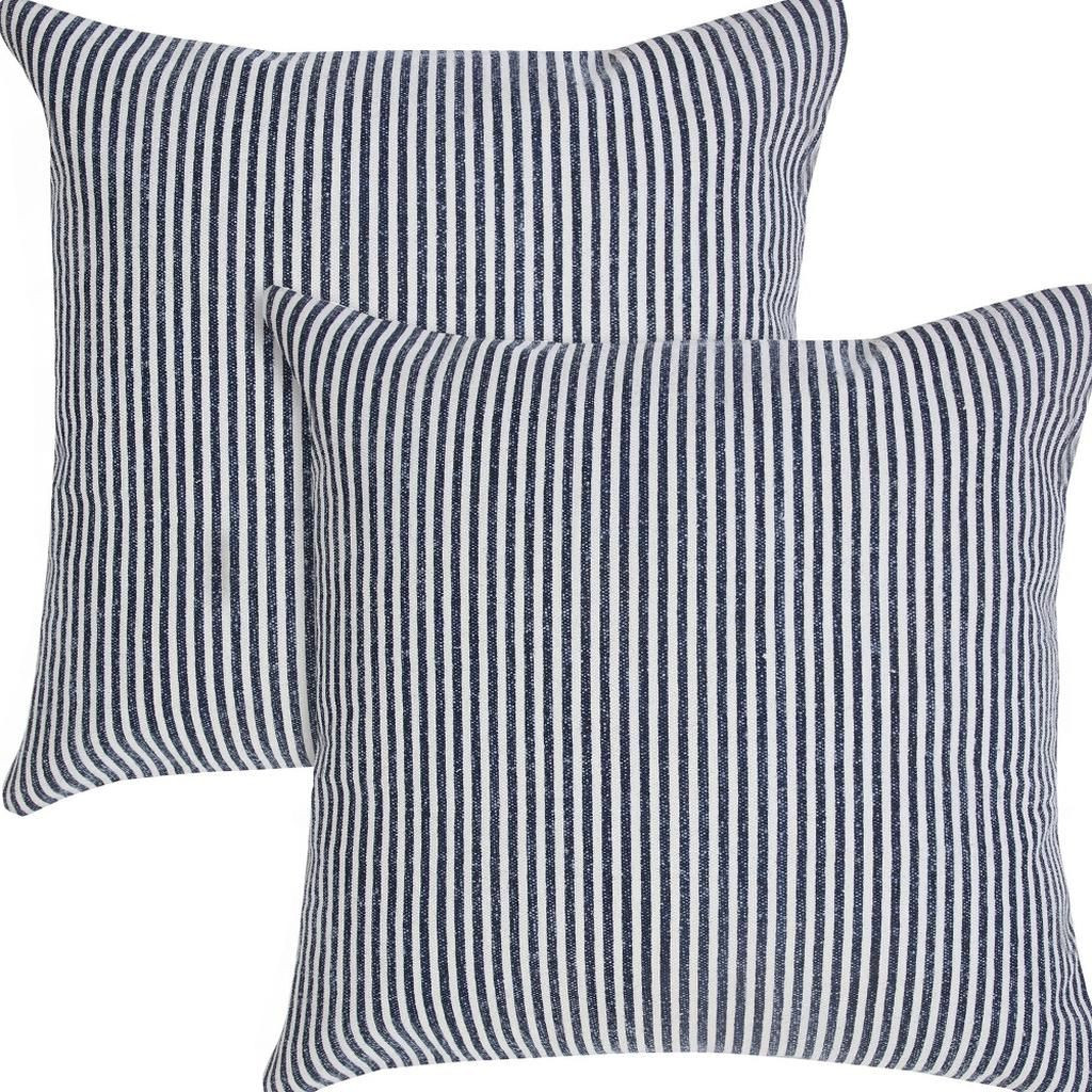 The perfect complement to your sofa, favorite chair, or bed, this set of two blue and white striped cotton throw pillows with texture is a great decorative accent. Ultra durable blue and white cotton has been used to make this decorative pillow set a beautiful look that will stand the test of time. For anyone that loves to decorate or accent their space with color and texture. Decorative throw pillows not only add color and dimension to your space but can be comfy and supportive when you are lounging and cuddling as well. 20.00-inch h x 20.00-inch w x 5.00-inch d.