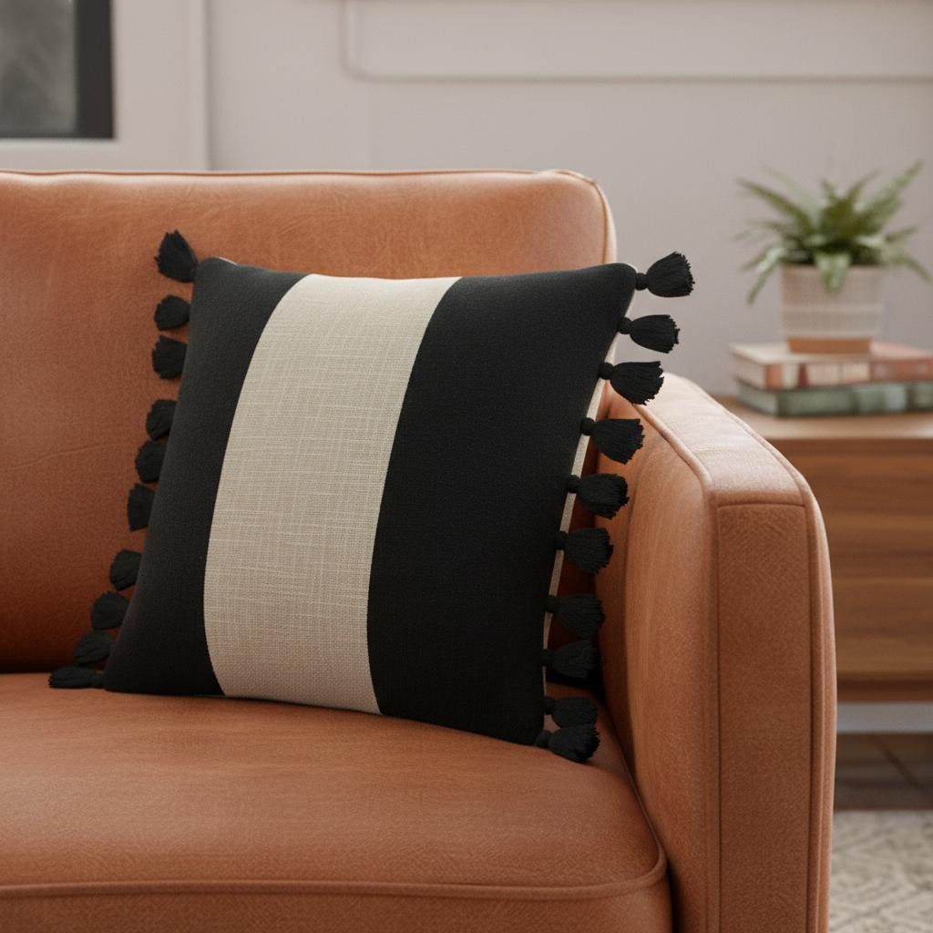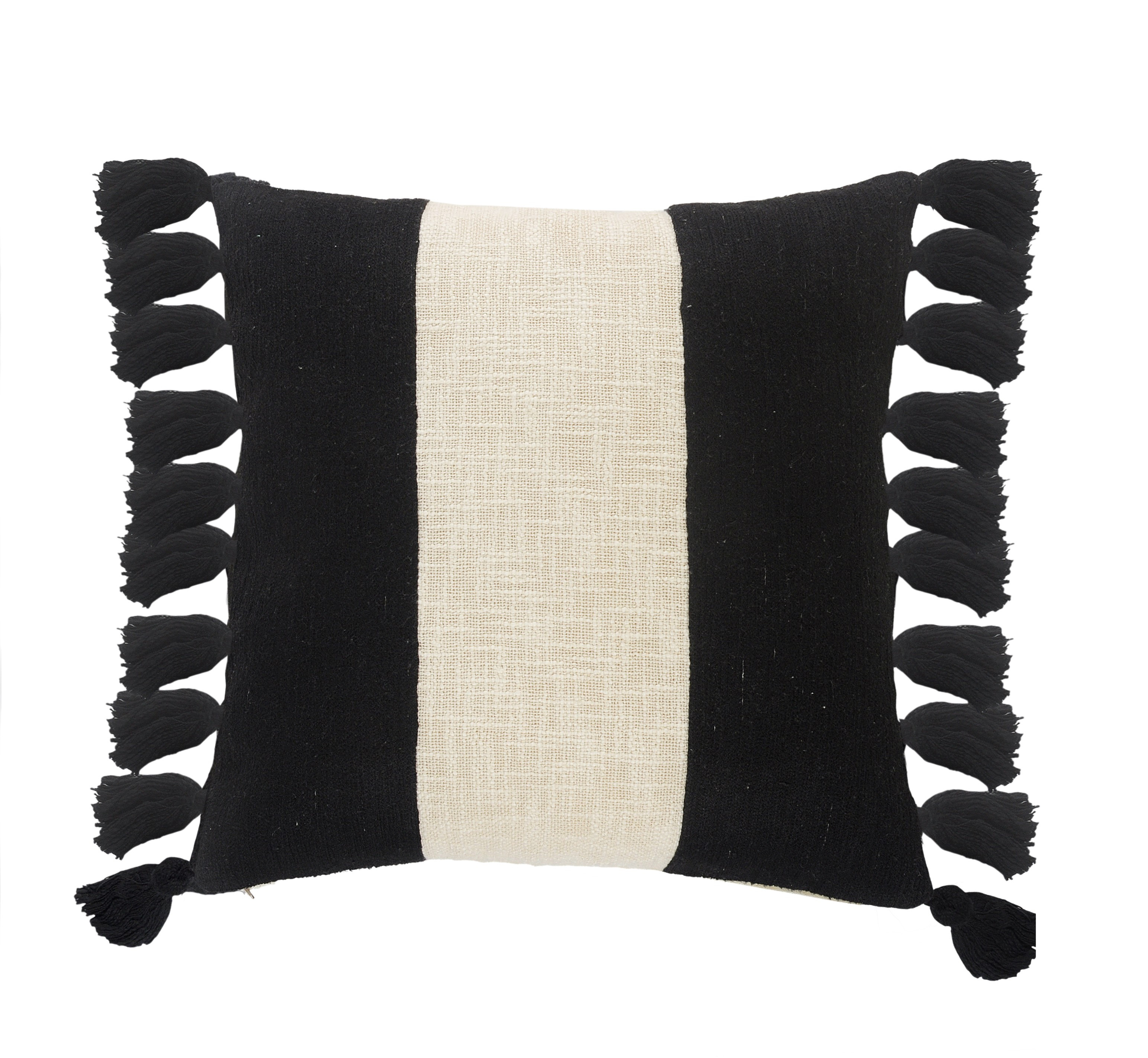 striped cotton throw pillow tassels, cotton throw pillow tassels, striped cotton throw pillow, black striped cotton throw pillow, throw pillow tassels |