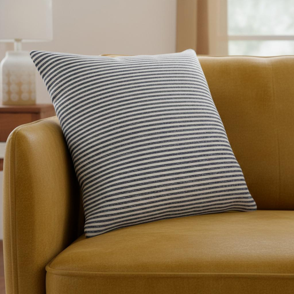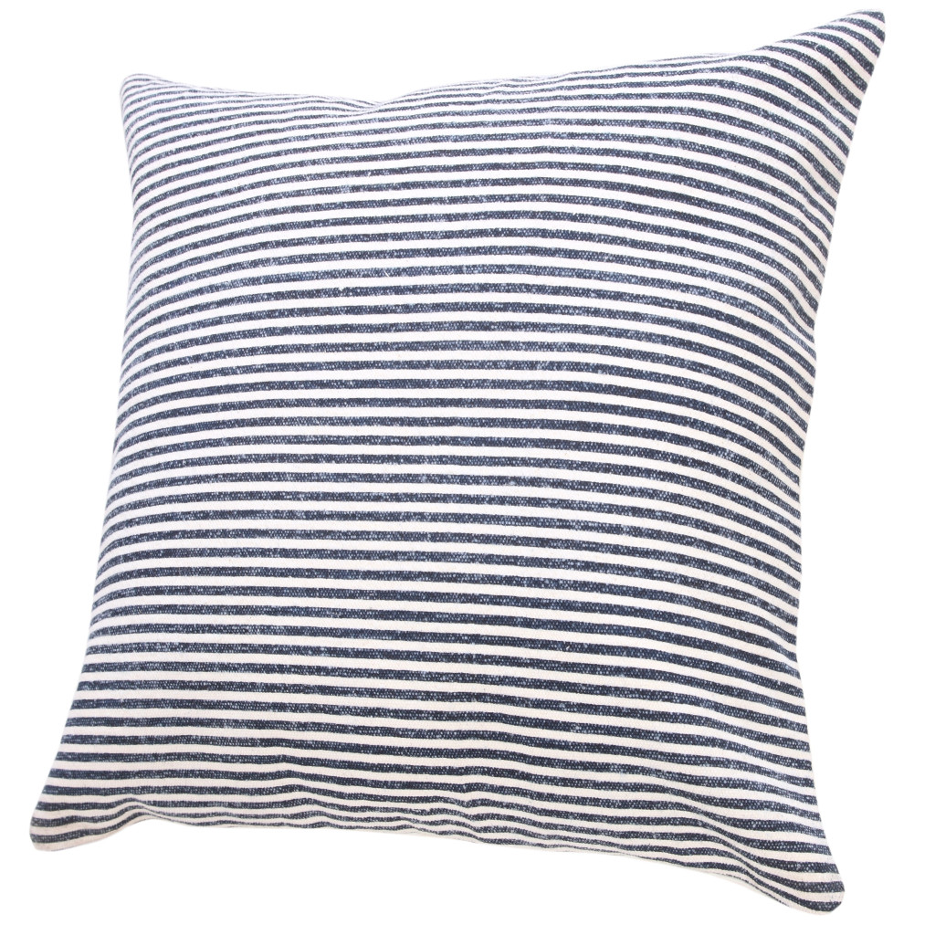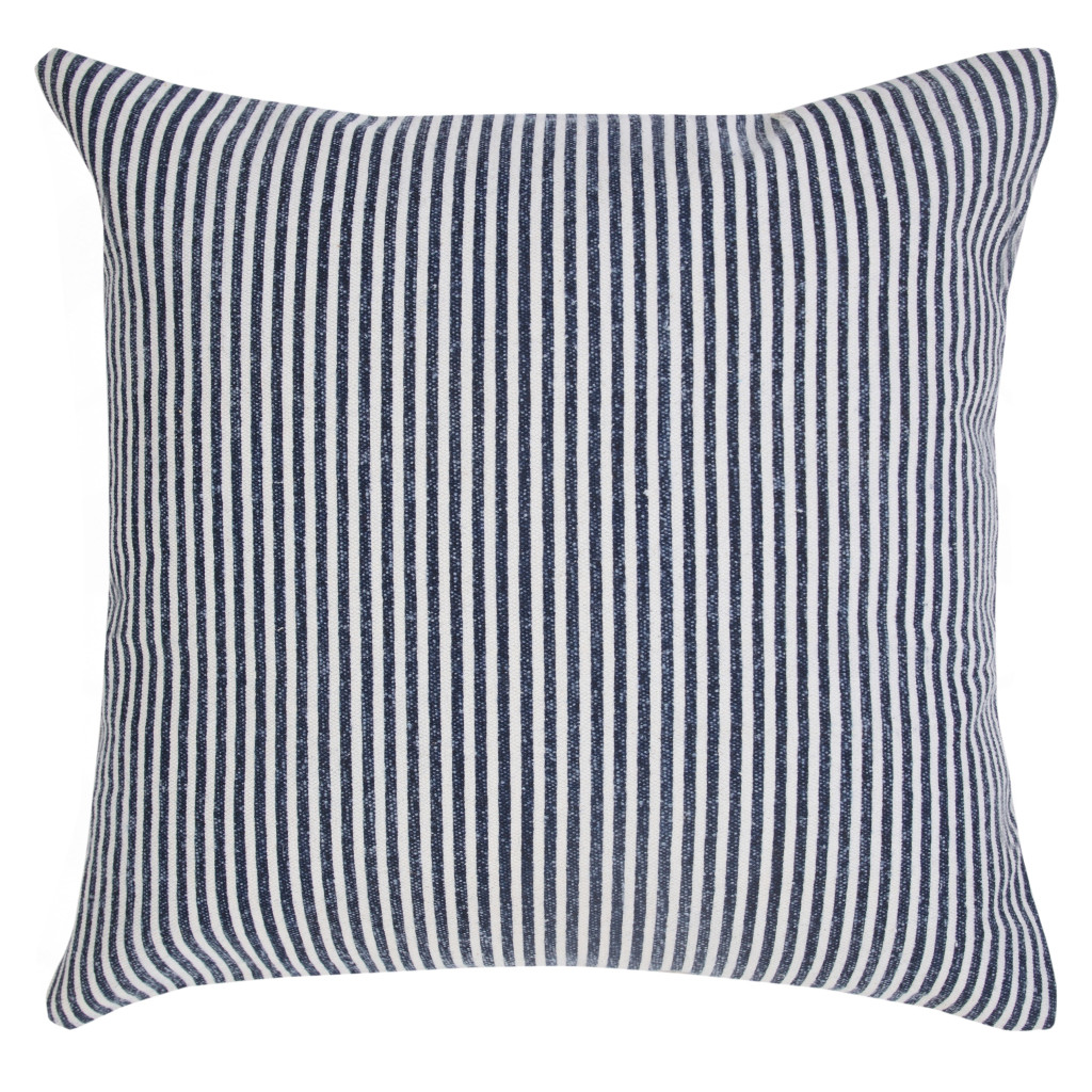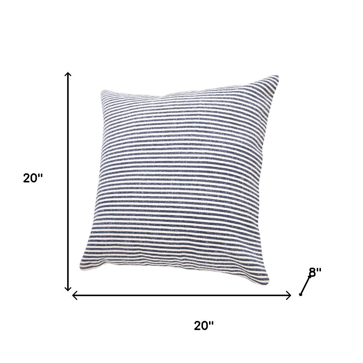 Bring a bit of fashion and zip to your space with this eye-catching and comfy 20-inch blue and white striped cotton throw pillow with texture. The blue and white coloring of the extremely durable and long lasting cotton will add dimension and texture to your space. Great to use on its own or mix with other decorations for the perfect look. A great decorative accessory to add color and dimension to your favorite chair, accent your sofa, or to use as part of your bed ensemble. 20.00-inch h x 20.00-inch w x 8.00-inch d.