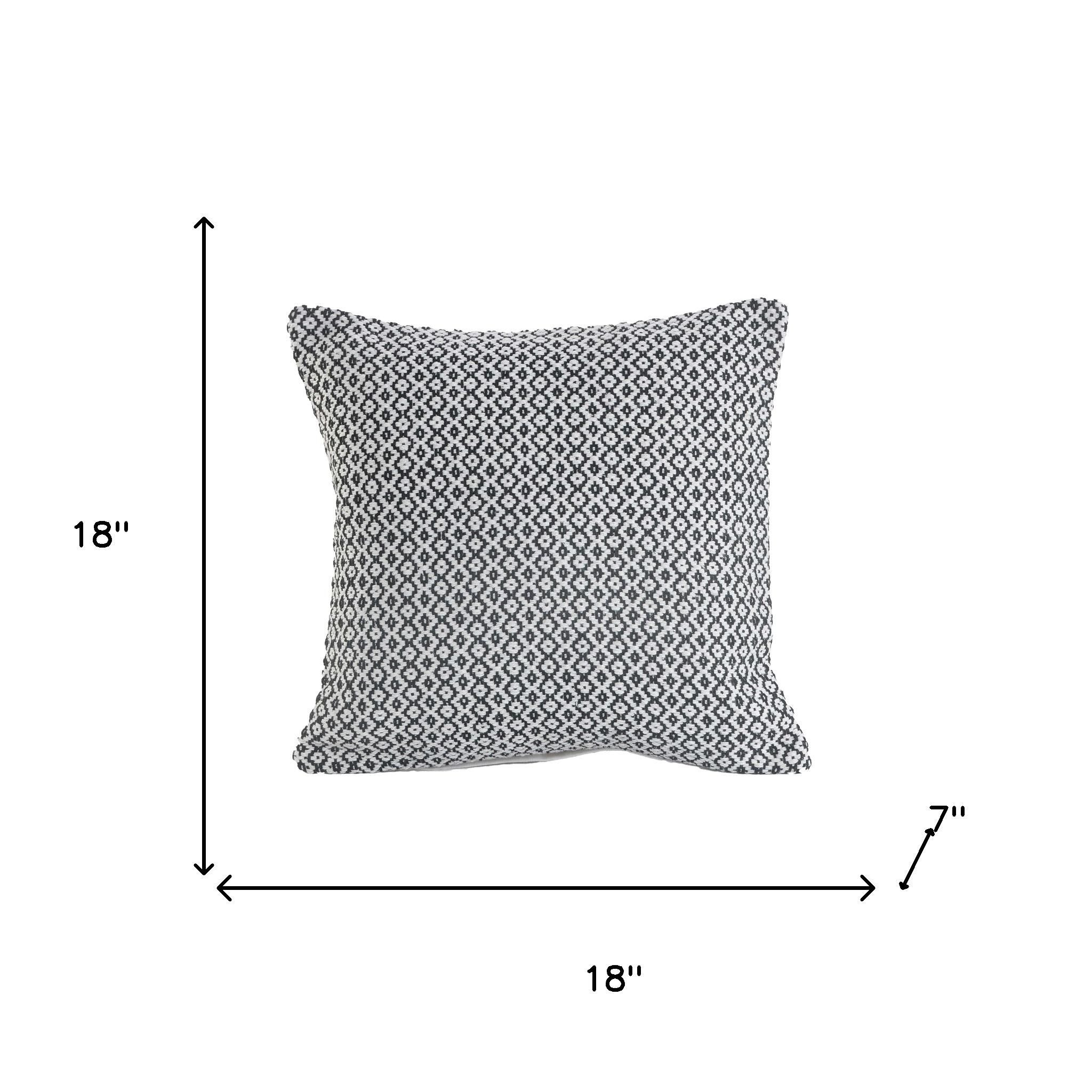 Unique and decorative, this comfortable 18-inch black and white geometric cotton throw pillow with texture will leave a lasting impression. Durable black and white cotton has been used to give this pillow a beautiful look that will stand the test of time. Decorative pillows are a great way to change up the look and feel of your space easily and quickly. A great decorative accessory to add color and dimension to your favorite chair, accent your sofa, or to use as part of your bed ensemble. 18.00-inch h x 18.00-inch w x 7.00-inch d.