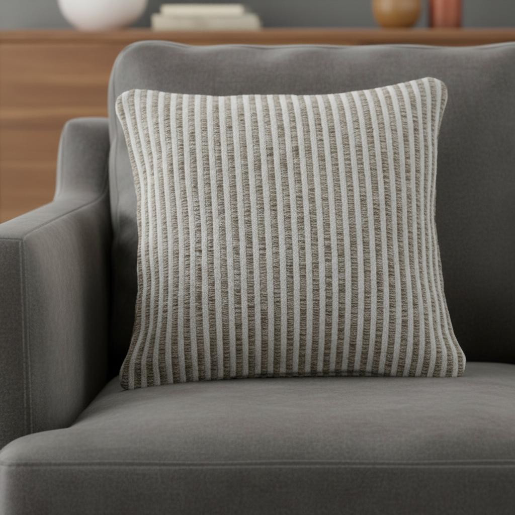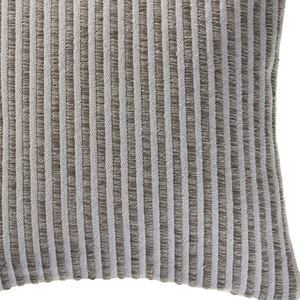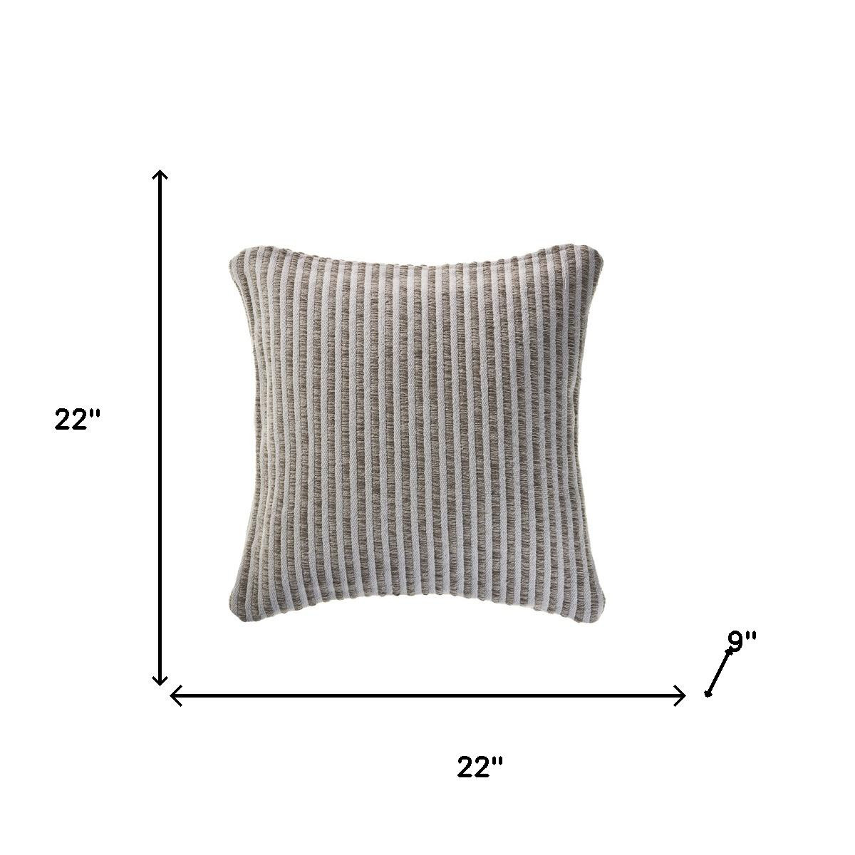 The perfect complement to your sofa, favorite chair, or bed, this 22-inch beige and cream striped cotton throw pillow with texture is a great decorative accent. Durable beige and cream cotton has been used to give this pillow a beautiful look that will stand the test of time. Decorative pillows are a great way to change up the look and feel of your space easily and quickly. Decorative throw pillows not only add color and dimension to your space but can be comfy and supportive when you are lounging and cuddling as well. 22.00-inch h x 22.00-inch w x 9.00-inch d.