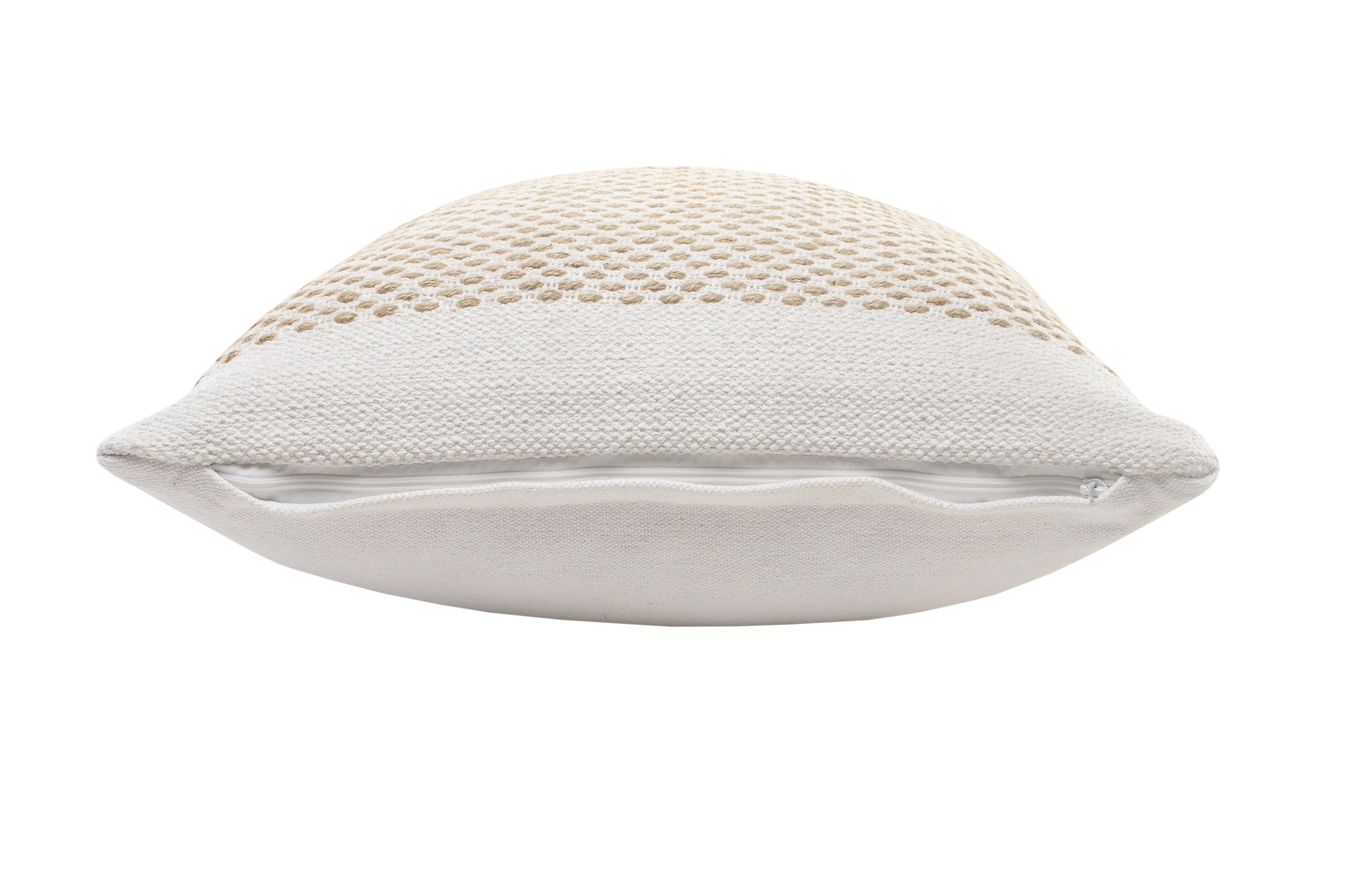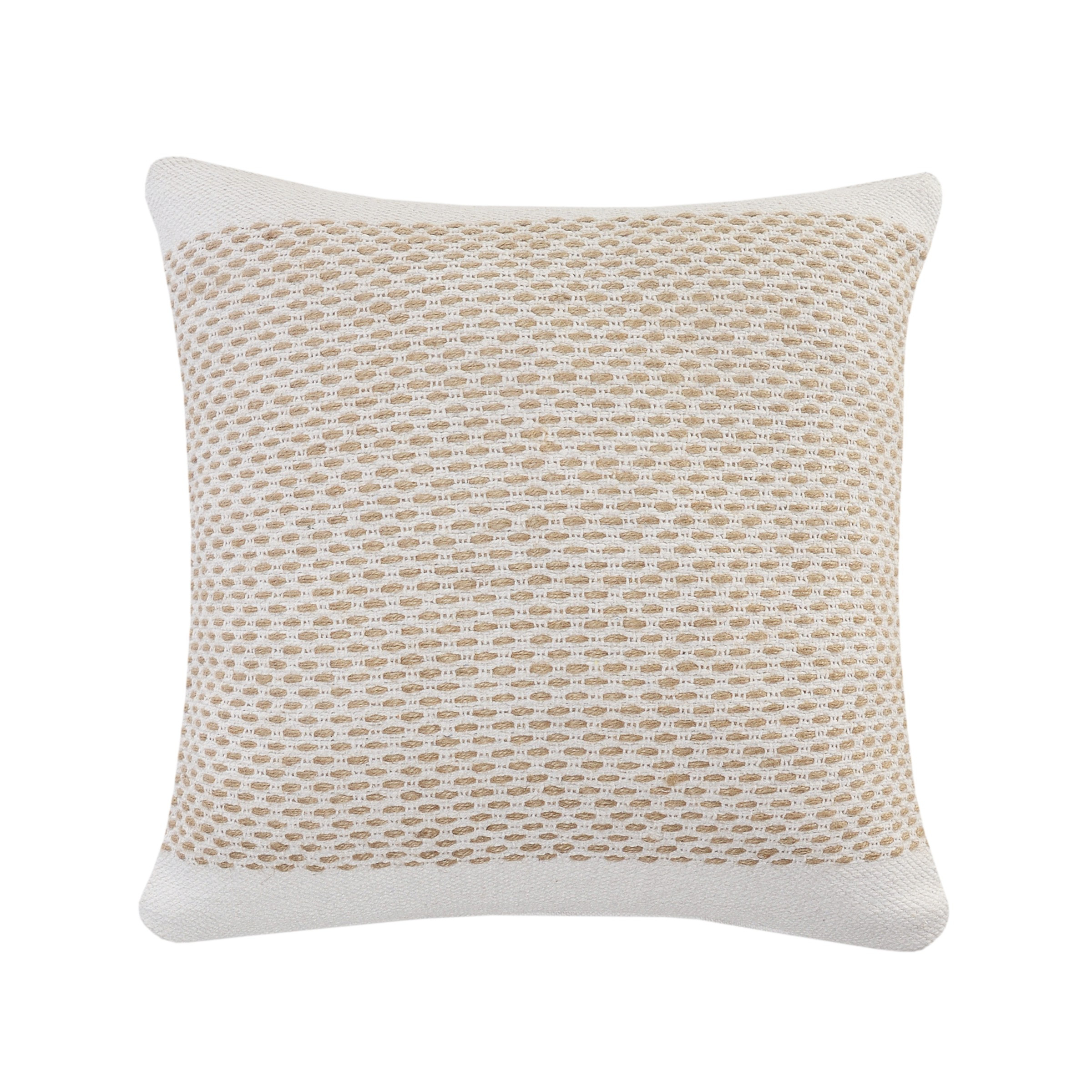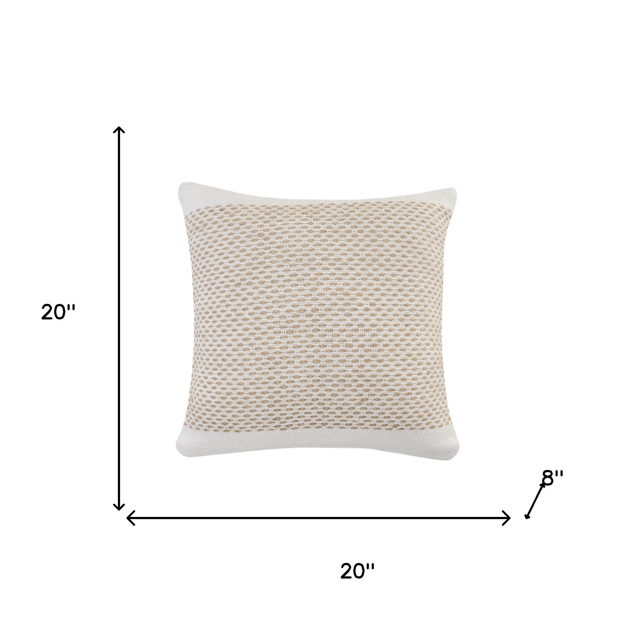 Add an air of fashion to your room and rejuvenate the space with this cute and fashionable 20-inch beige and white geometric cotton blend throw pillow with texture. This soft and durable decorative pillow is expertly made of high grade, long lasting cotton blend in a beige and white coloration. Decorative pillows are a great way to change up the look and feel of your space easily and quickly. Decorative throw pillows not only add color and dimension to your space but can be comfy and supportive when you are lounging and cuddling as well. 20.00-inch h x 20.00-inch w x 8.00-inch d.